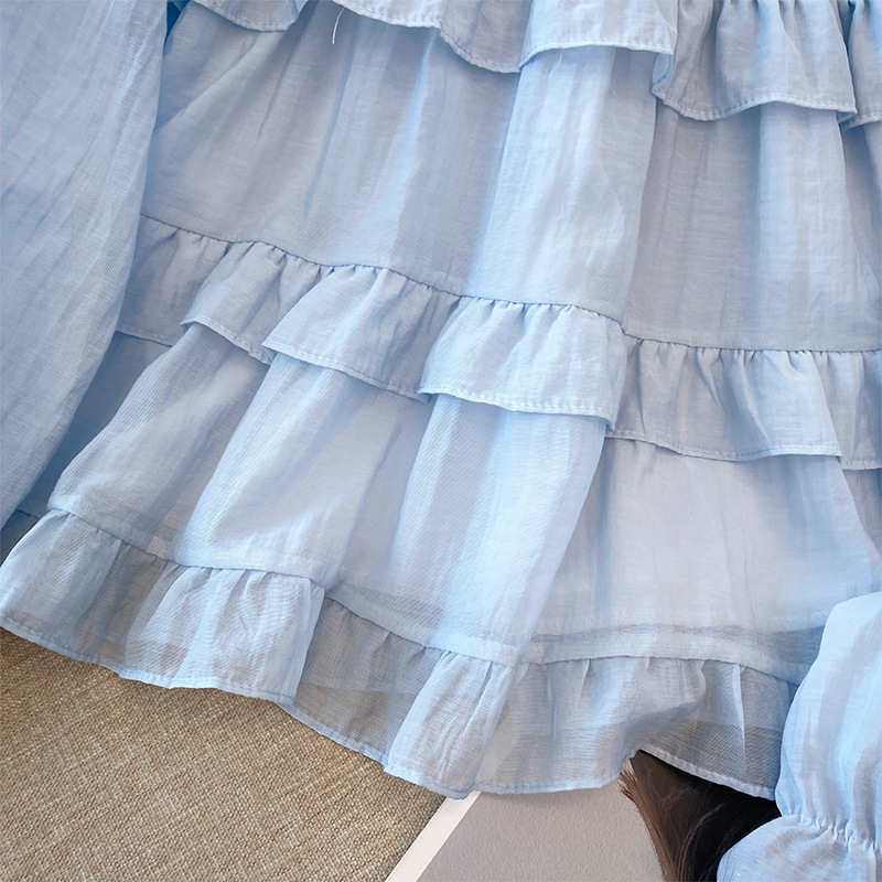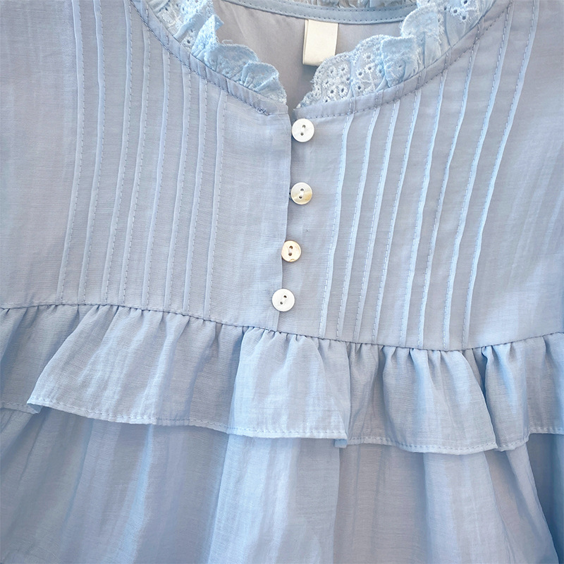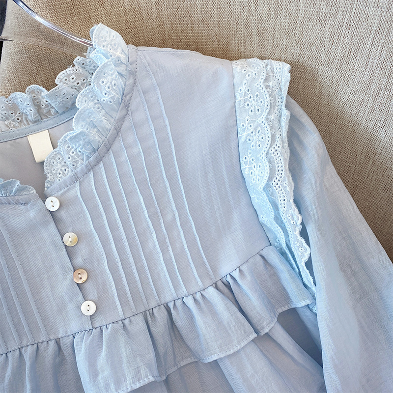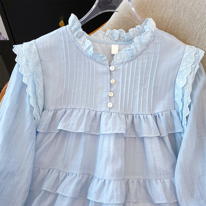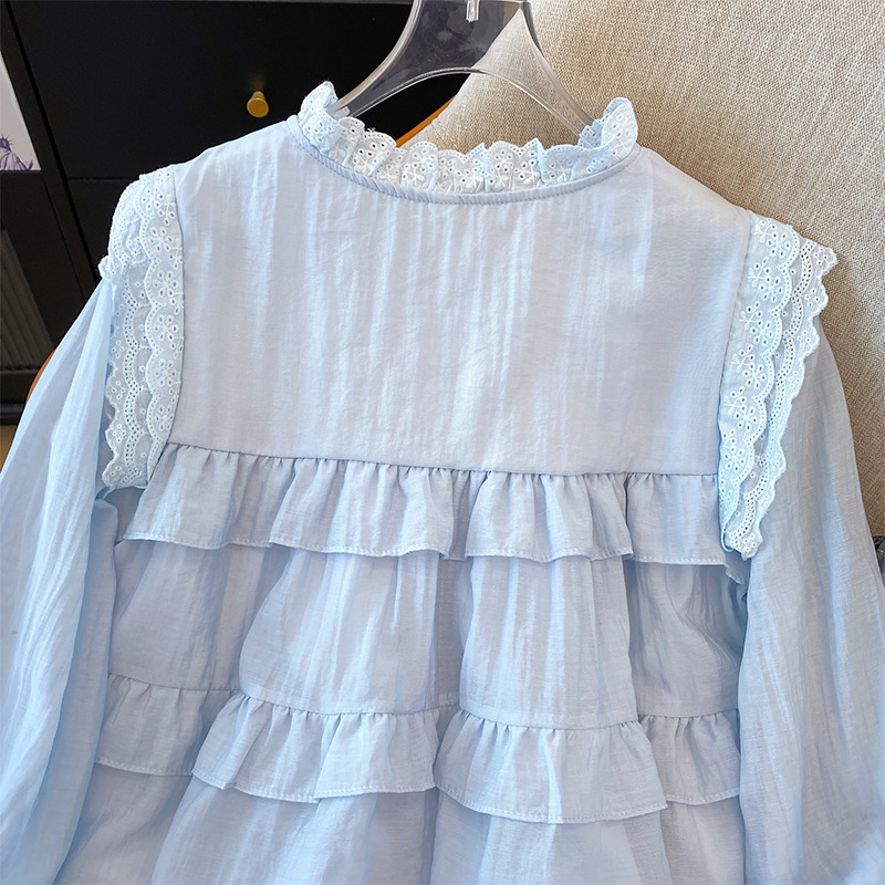 프랑스 스타일 유행 곰팡이 가장자리 쉬폰 셔츠 여성의 봄과 가을 2025 새로운 우아한 T 달콤하고 부드러운 인형 셔츠