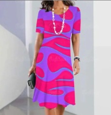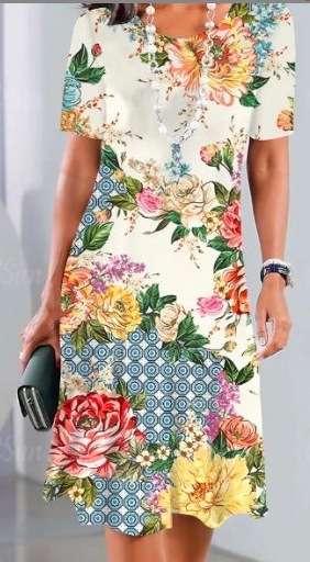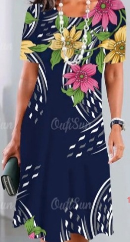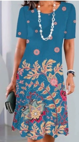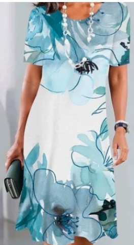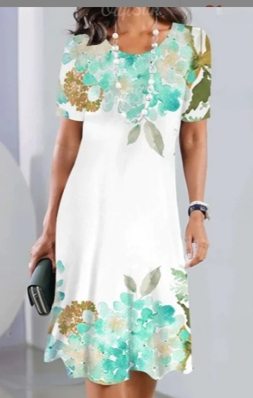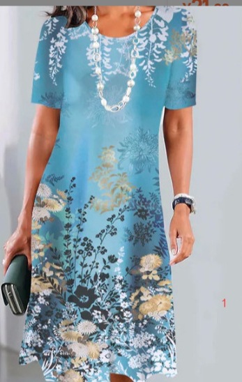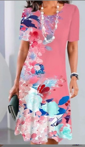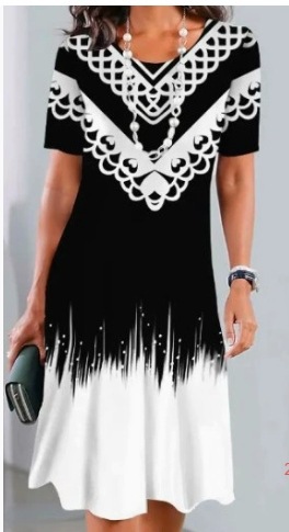 2025 새로운 여름 아마존 TK 여성 디지털 인쇄 짧은 소매 티셔츠 원피스 GC스토어 가기
