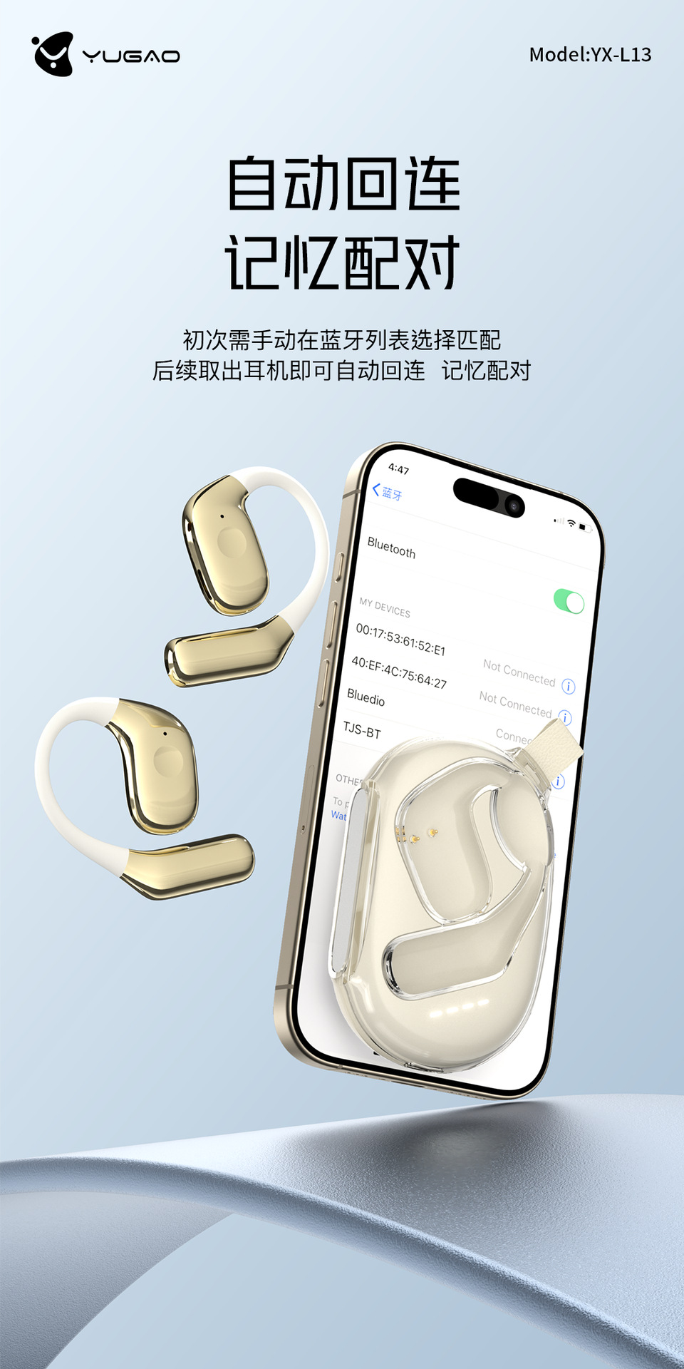 Yugao 브랜드 귀 매달린 Binaural 무선 블루투스 헤드셋 노래와 이야기를 듣기 편한 귀에 있지 않은 장기 대기스토어 가기