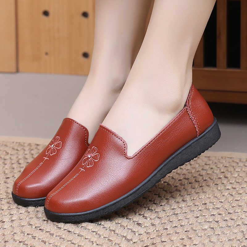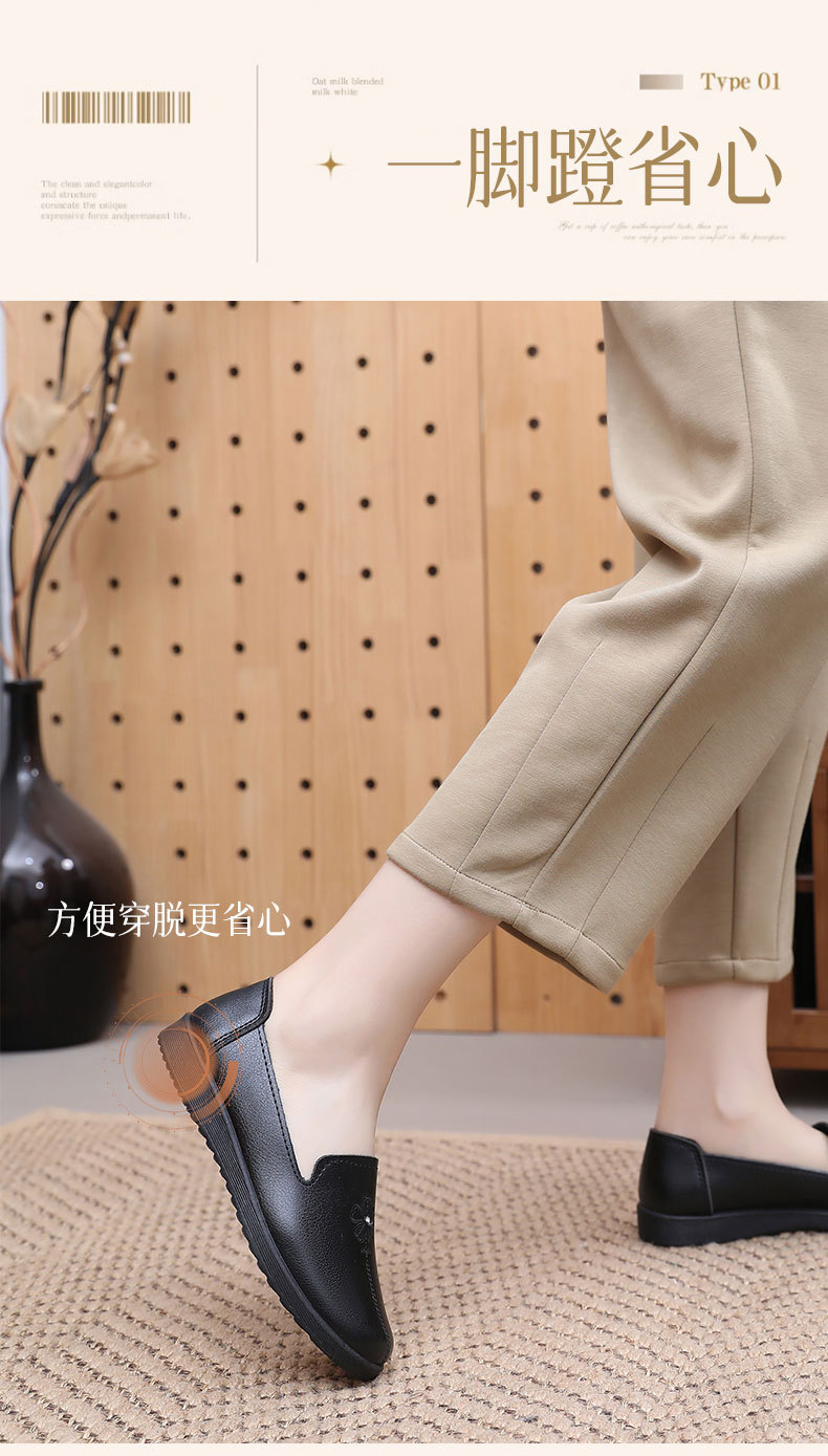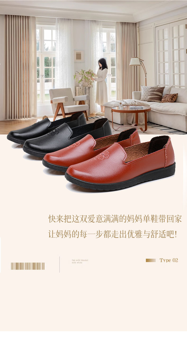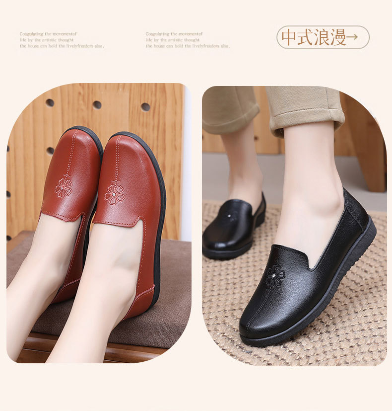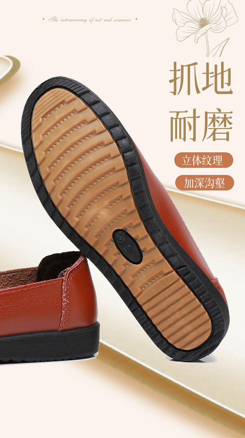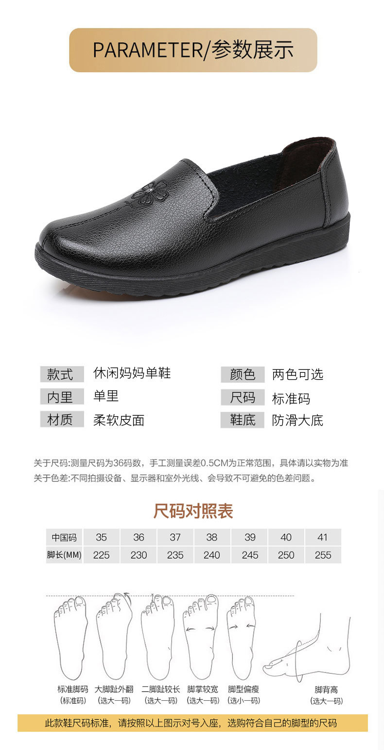 어머니의 신발 편안한 봄과 가을 부드러운 싱글 레이어 신발 플랫 가죽 신발 중년 및 노인 여성 신발 플랫 힐 미끄럼 방지 노인 밀크 신발
