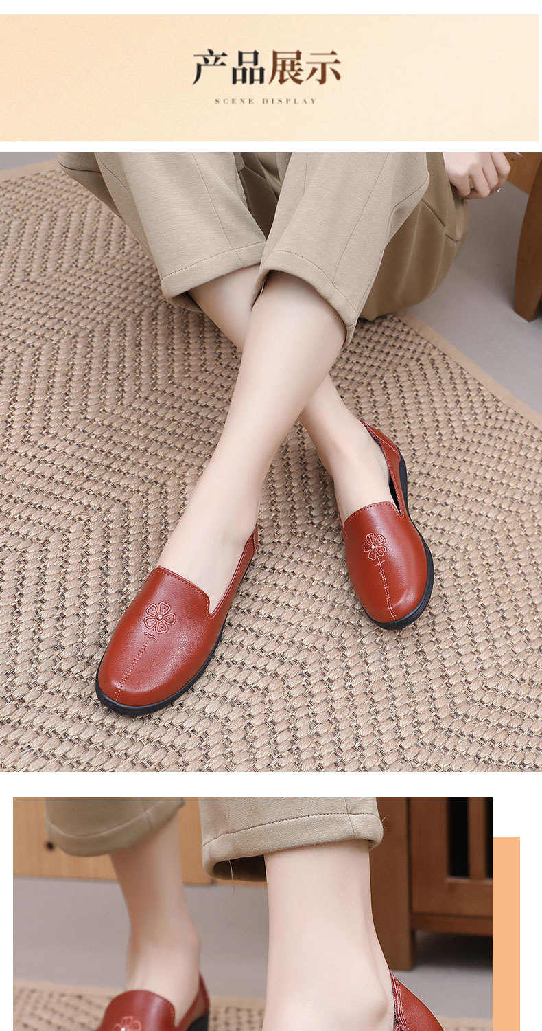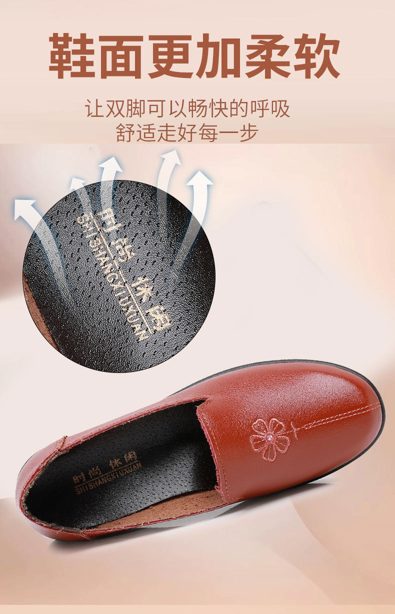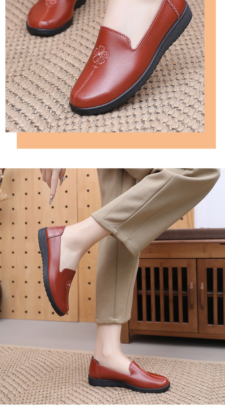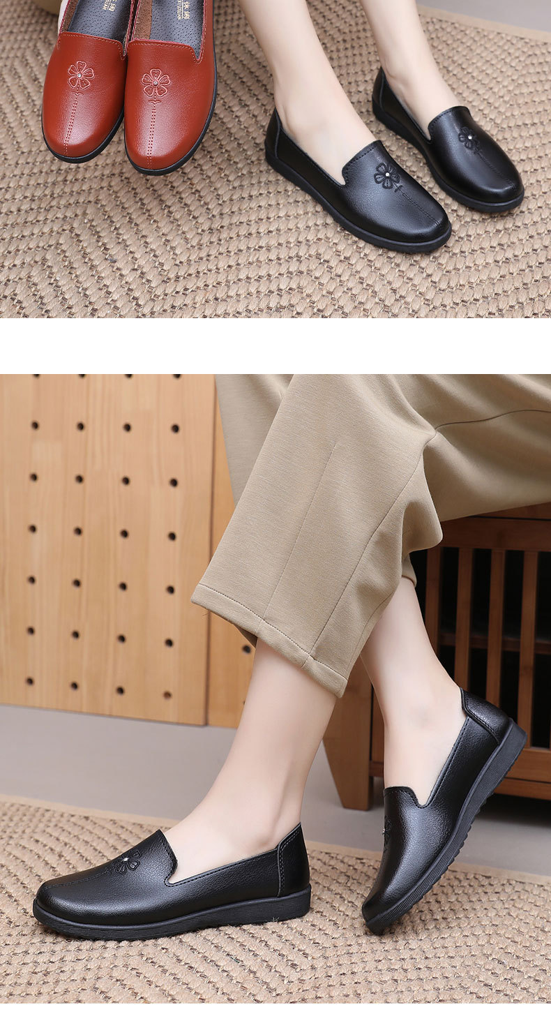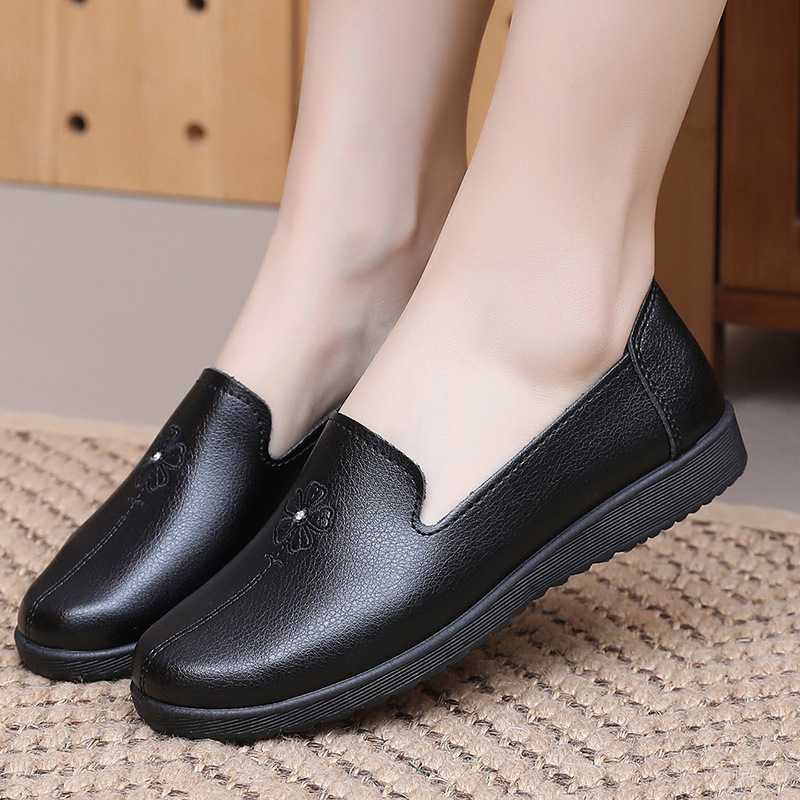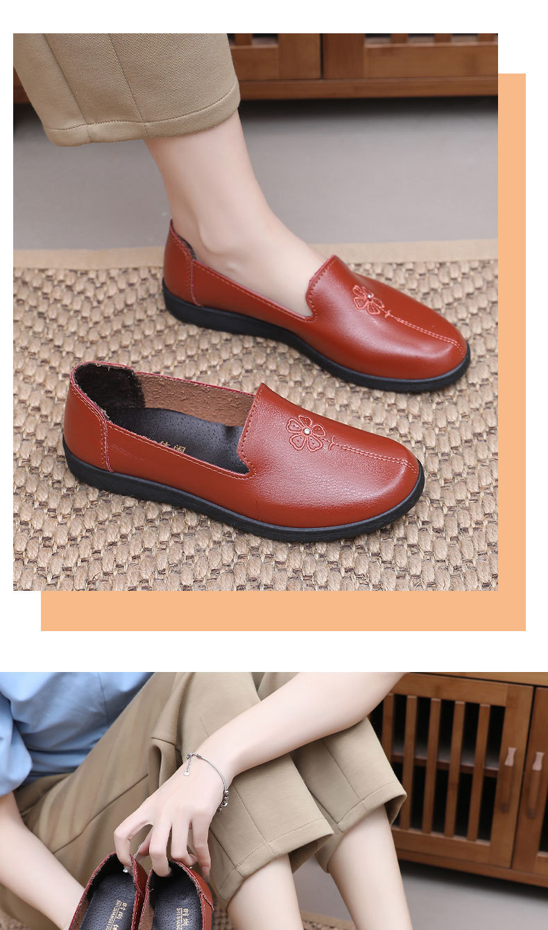 어머니의 신발 편안한 봄과 가을 부드러운 싱글 레이어 신발 플랫 가죽 신발 중년 및 노인 여성 신발 플랫 힐 미끄럼 방지 노인 밀크 신발