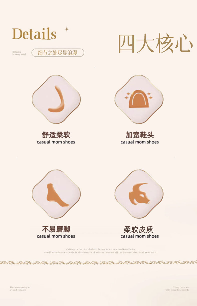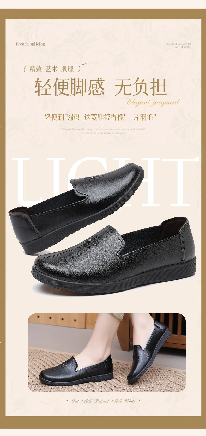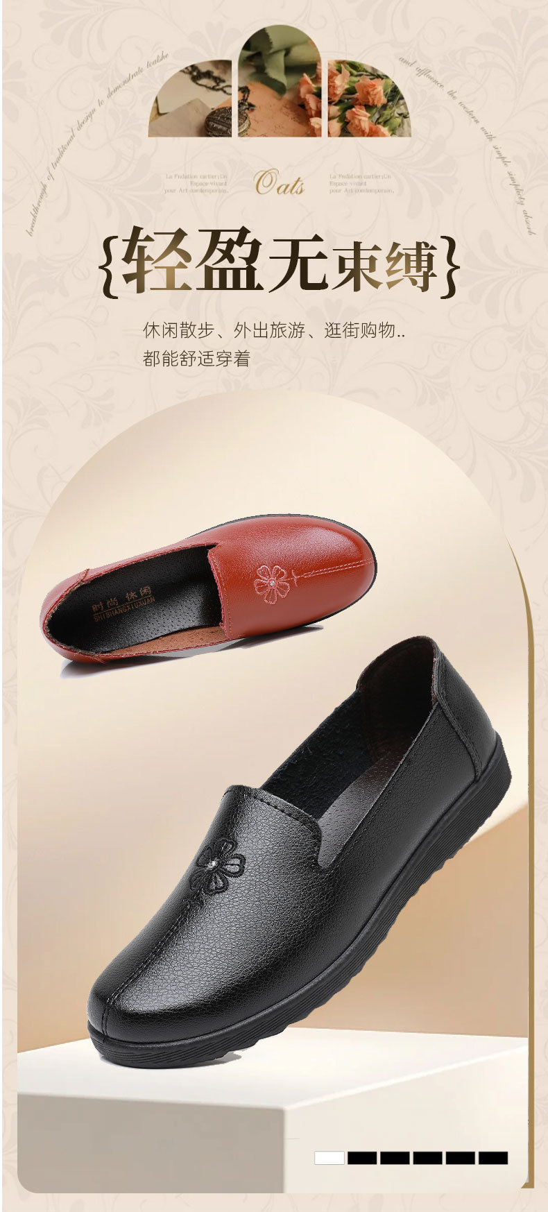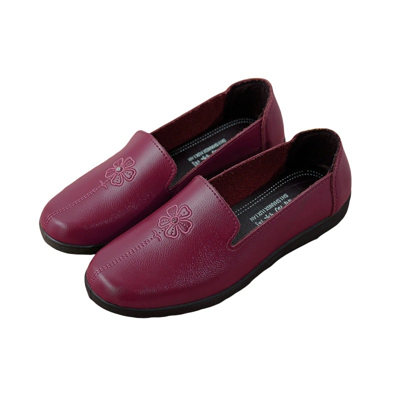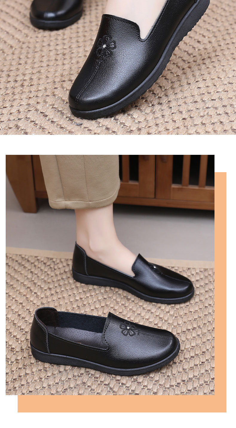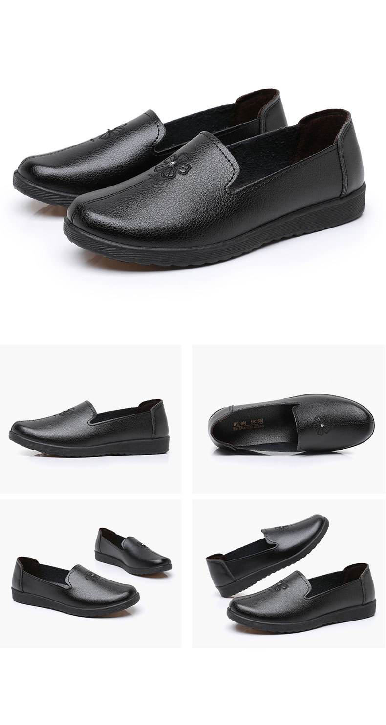 어머니의 신발 편안한 봄과 가을 부드러운 싱글 레이어 신발 플랫 가죽 신발 중년 및 노인 여성 신발 플랫 힐 미끄럼 방지 노인 밀크 신발