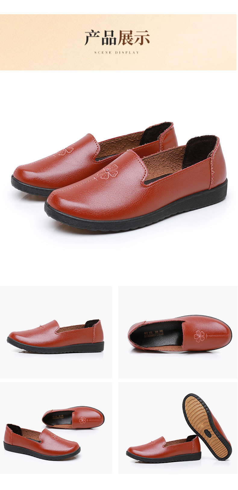 어머니의 신발 편안한 봄과 가을 부드러운 싱글 레이어 신발 플랫 가죽 신발 중년 및 노인 여성 신발 플랫 힐 미끄럼 방지 노인 밀크 신발스토어 가기
