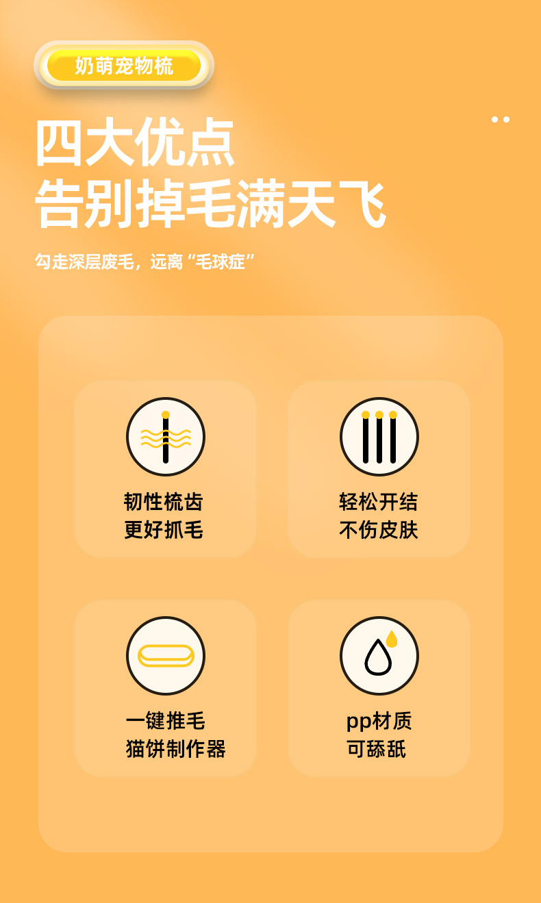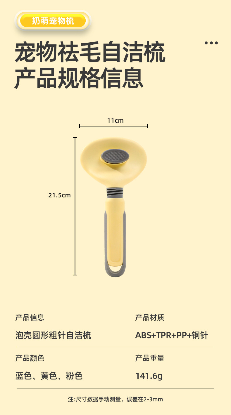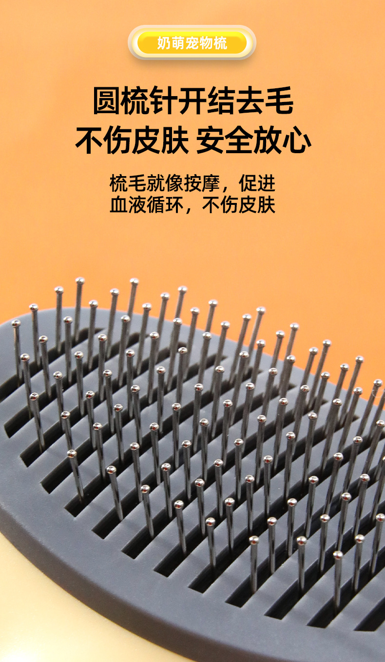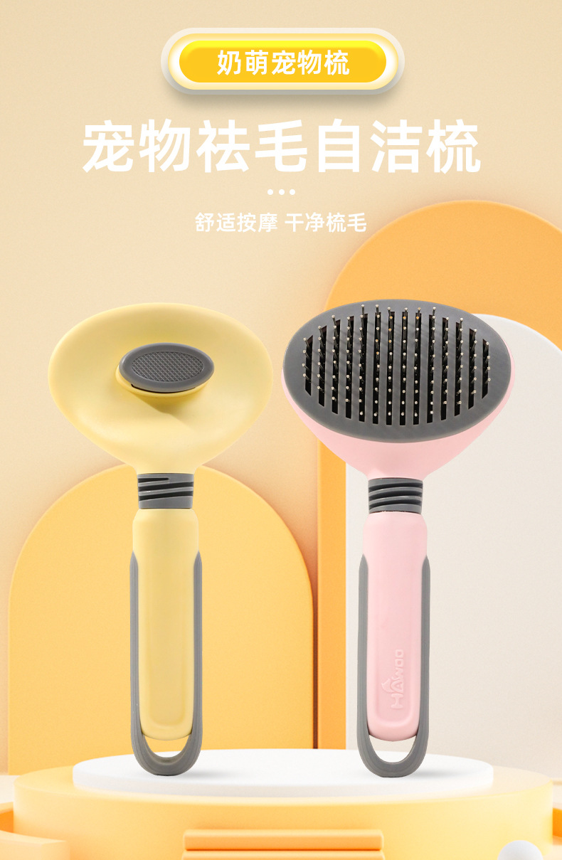 • 둥근 강철 바늘 자가 청소 빗-노란색 21.5cm