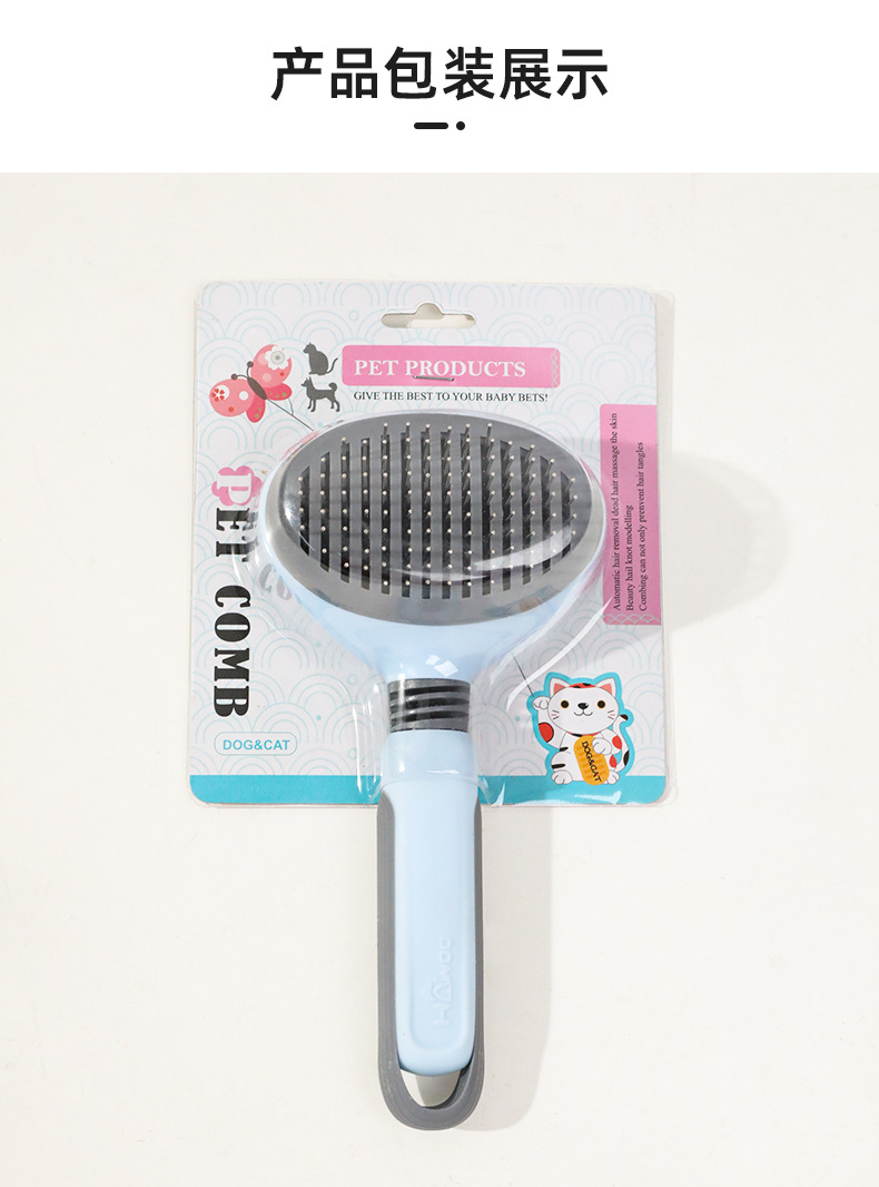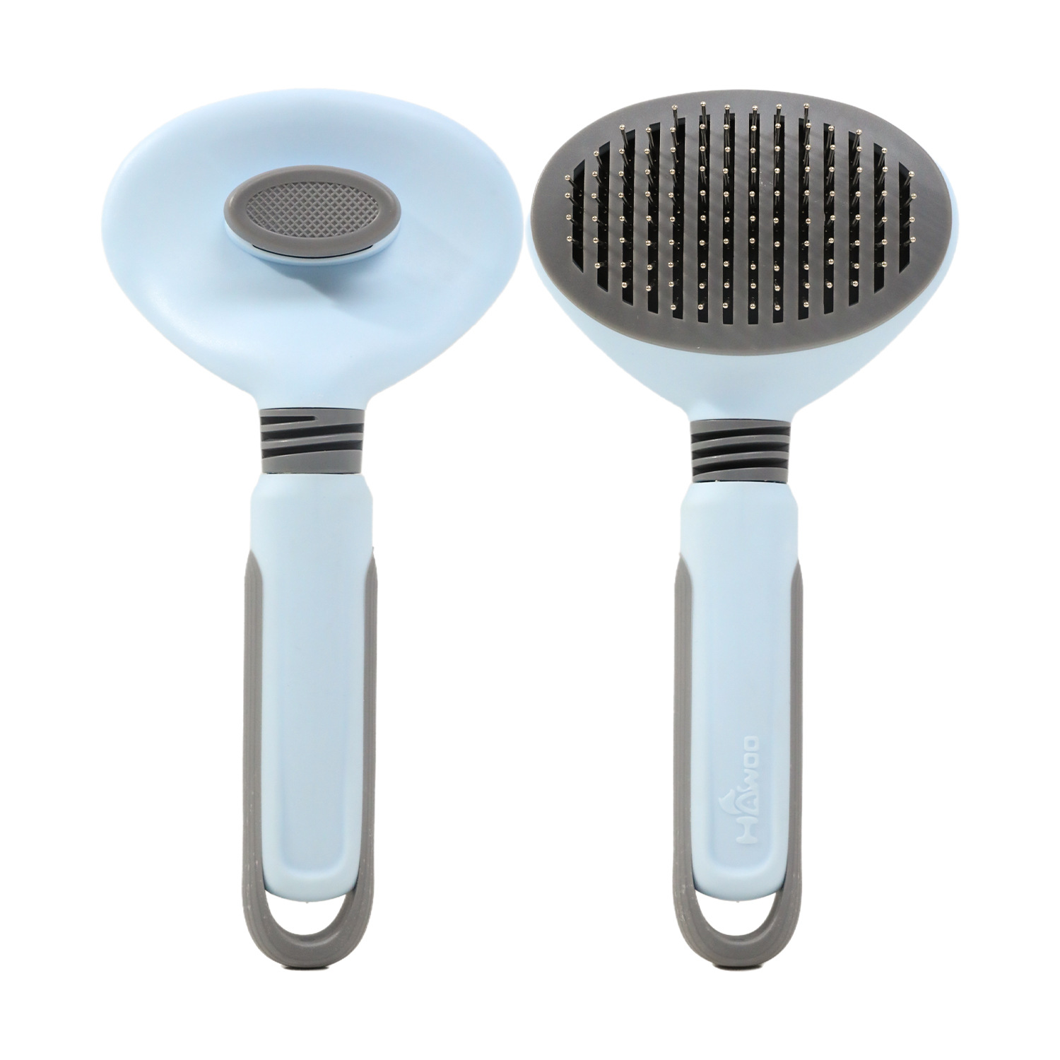 • 둥근 강철 바늘 셀프 클리닝 빗 - 블루 21.5cm