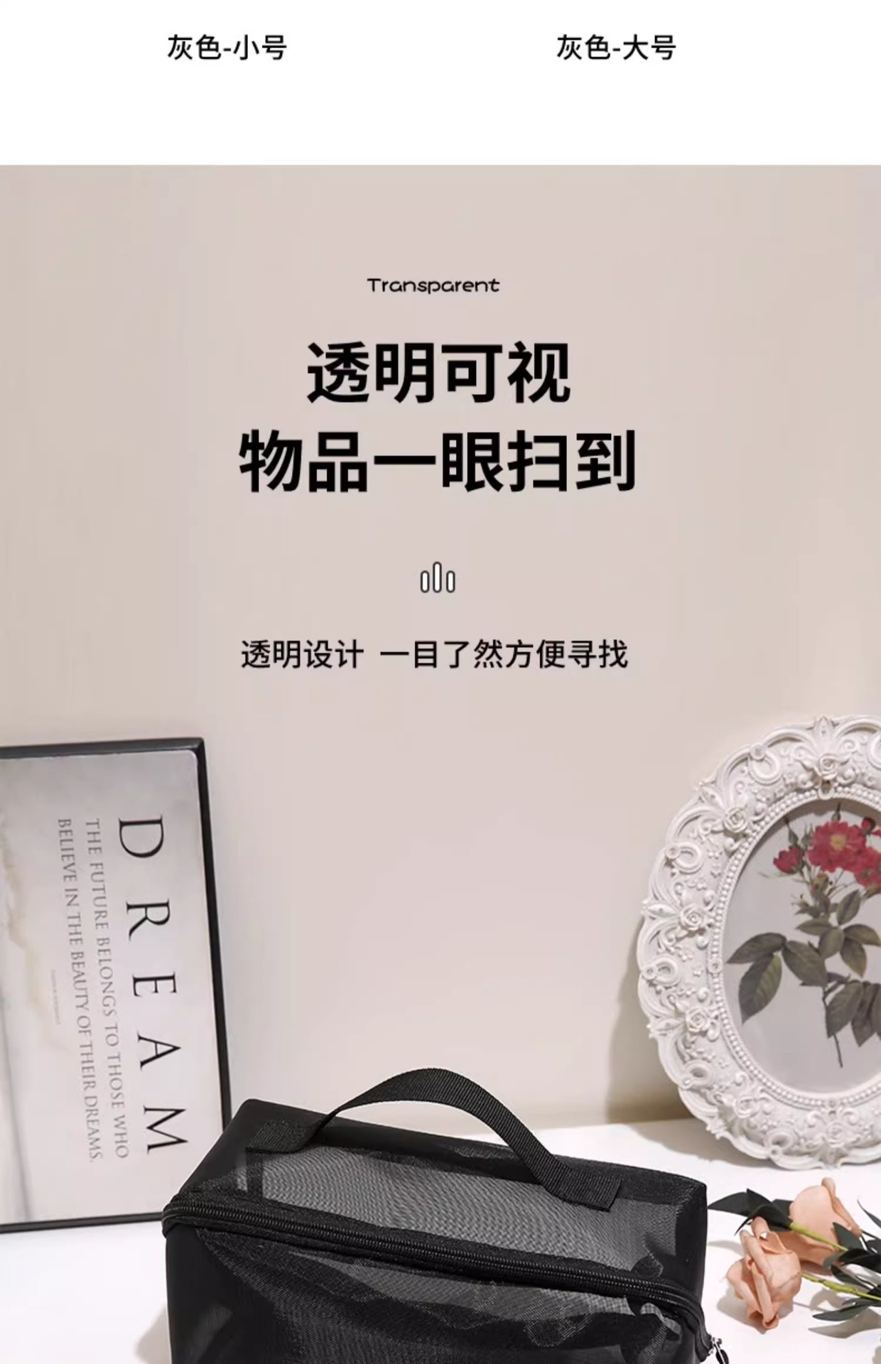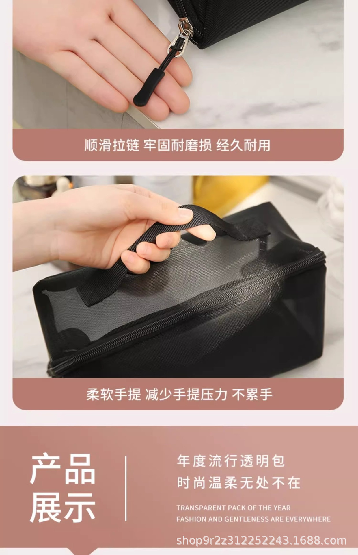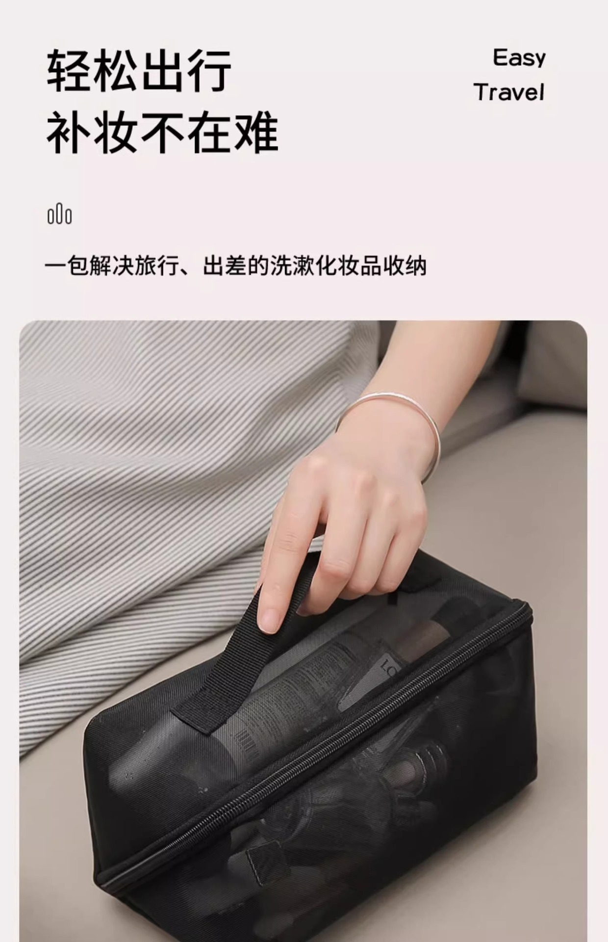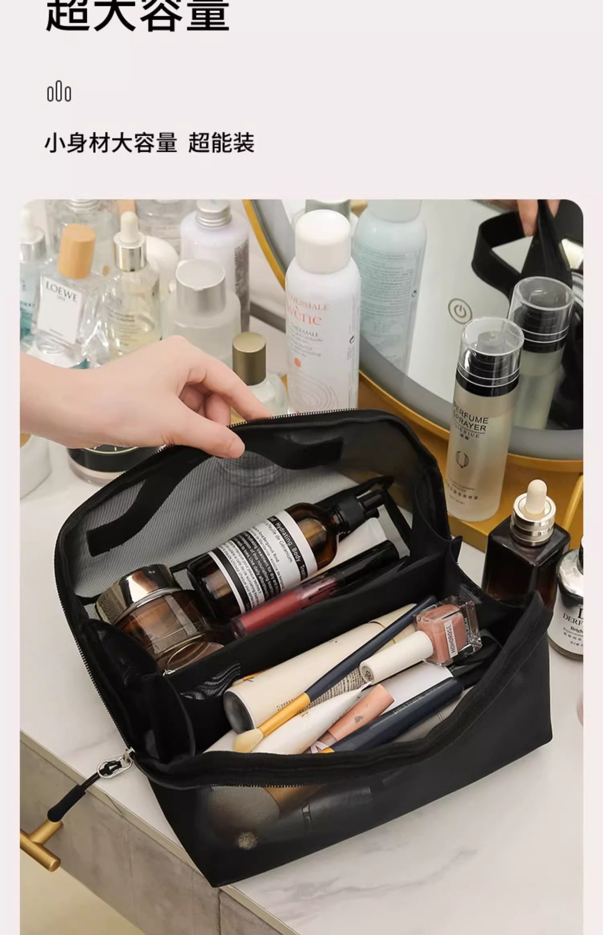• 블랙 나일론 메쉬 화장품 가방