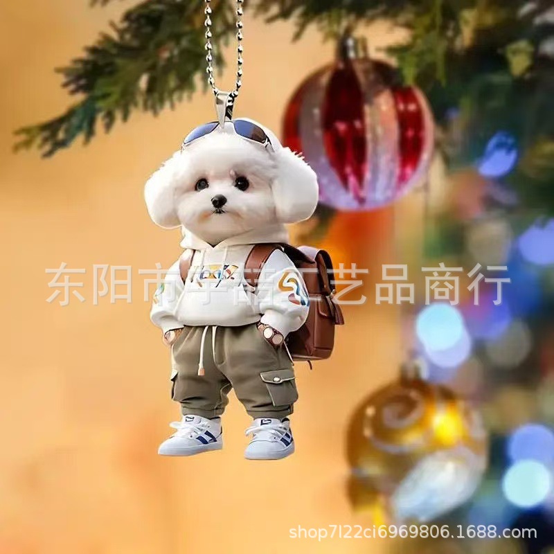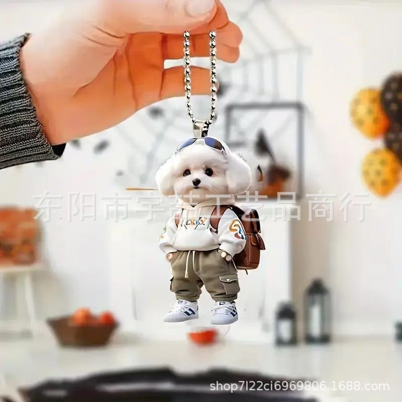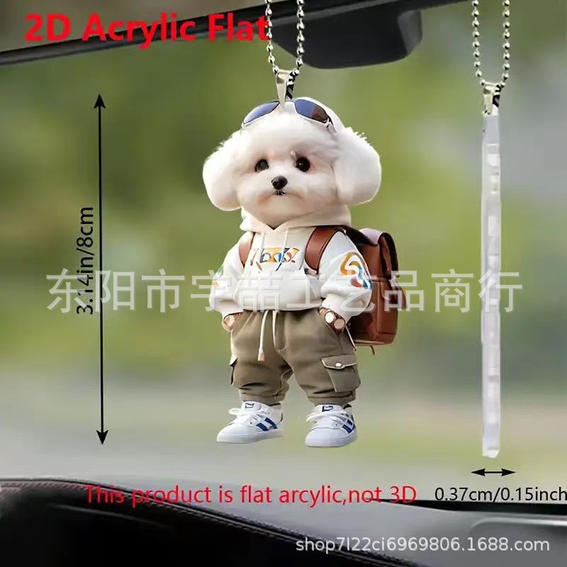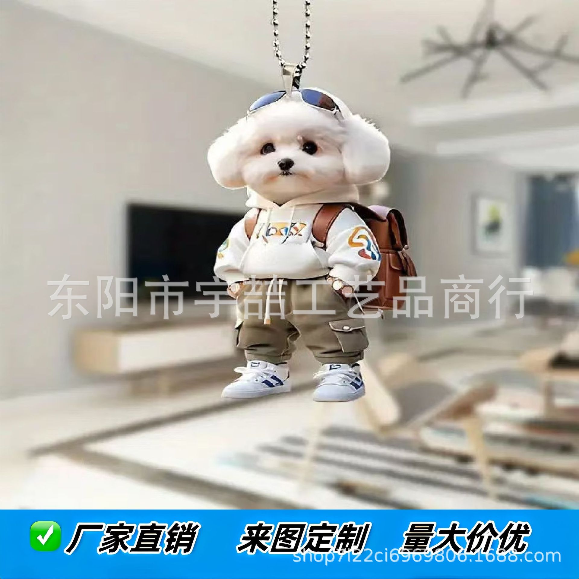 크로스 국경 쿨 개 선글라스 백팩 펜던트 플랫 아크릴 2D 펜던트 자동차 매달려 홈 쥬얼리 체인 용어