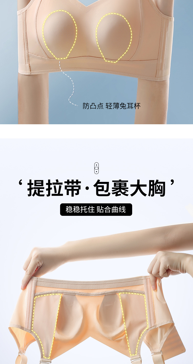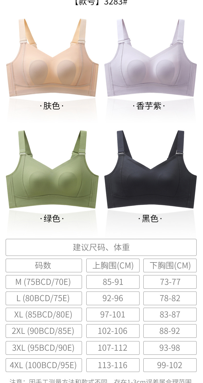Tracless 플러스 사이즈 속옷 가려운 토끼 귀 풀 컵 큰 가슴 작은 파라미 통통녀 스포츠 브라