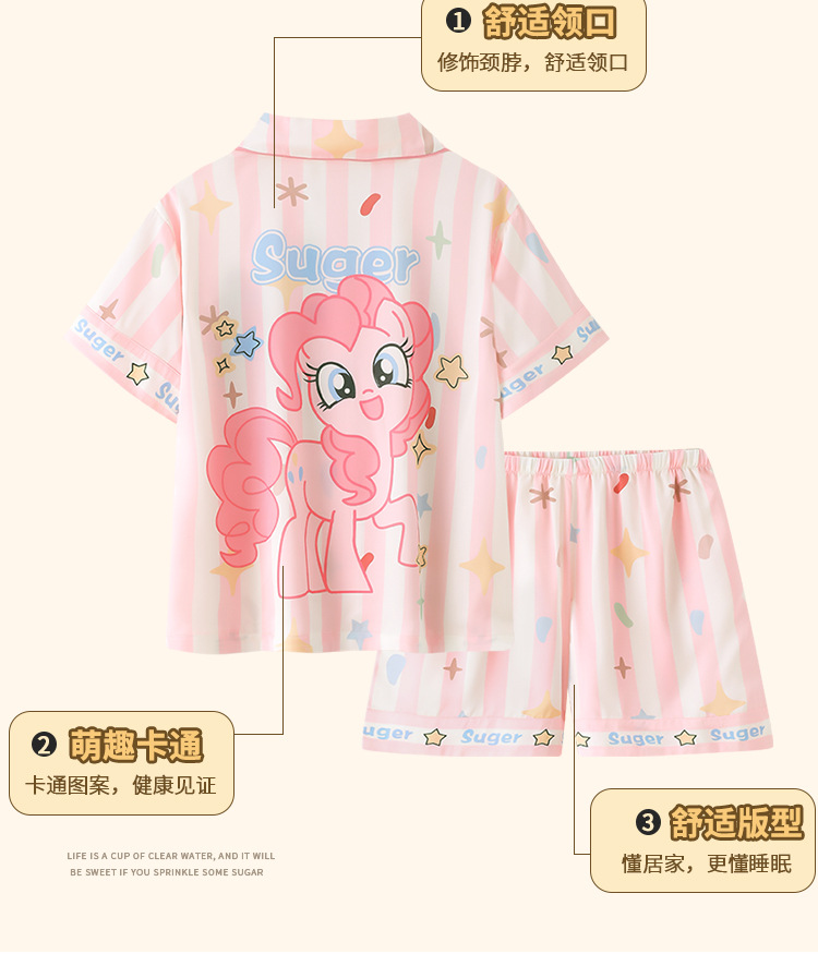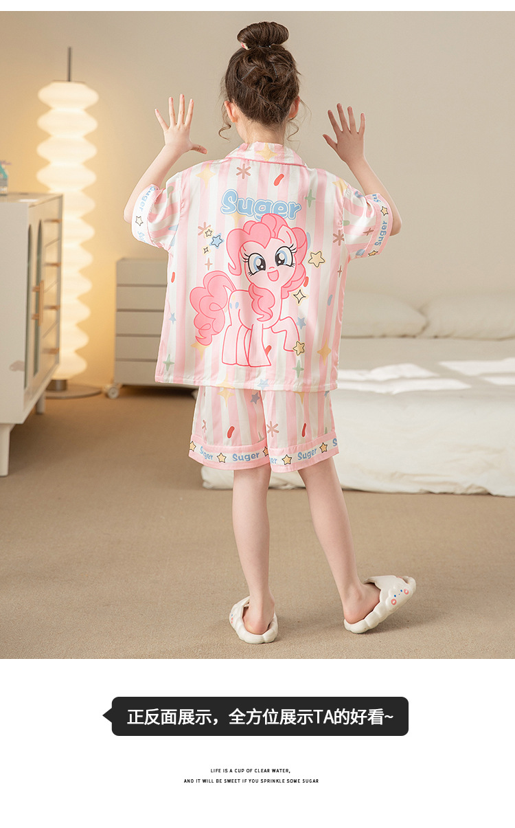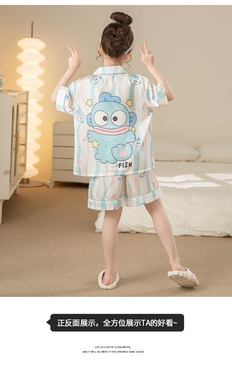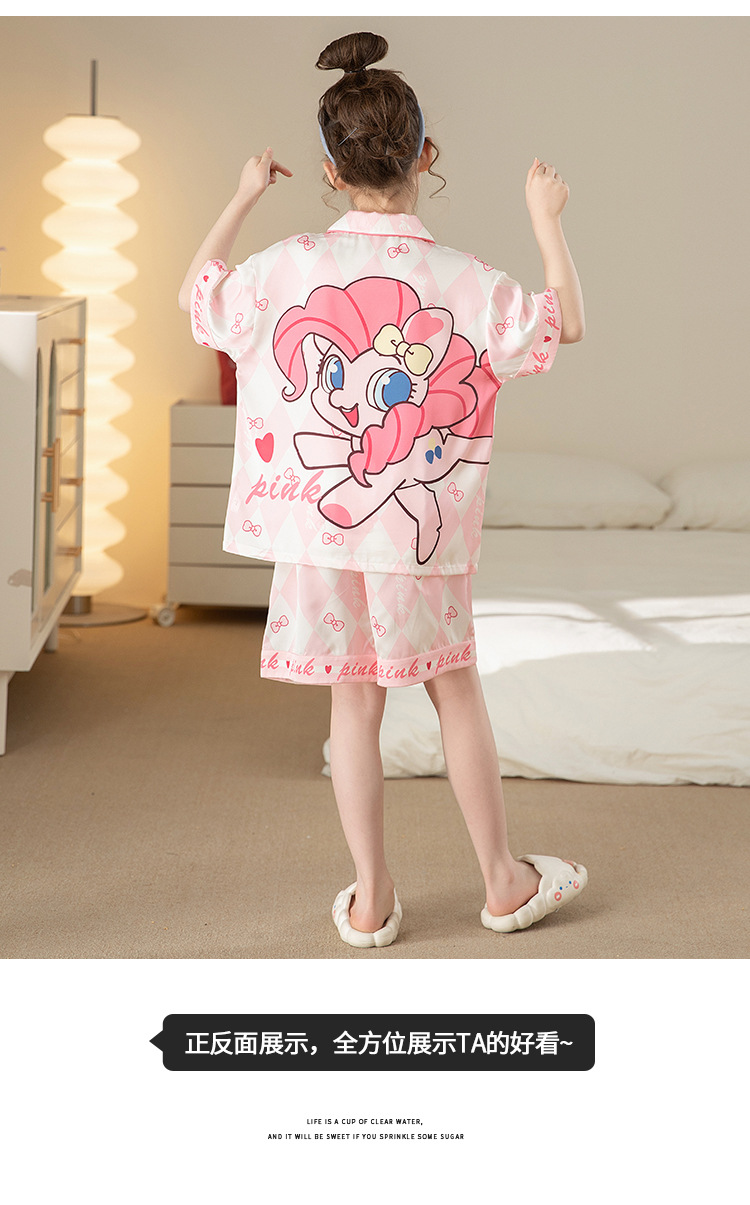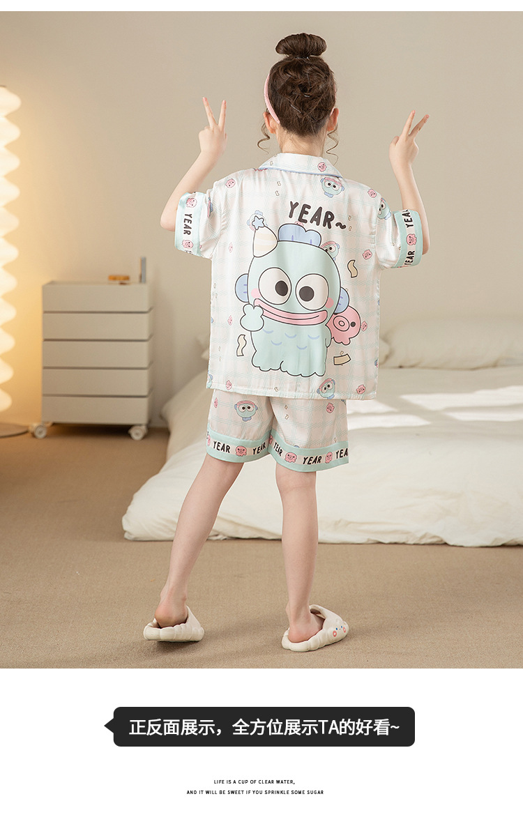 어린이 아이스 실크 잠옷 소녀 여름 반팔 얇은 귀여운 실크 홈 옷 아기 중 큰 어린이 소녀 세트