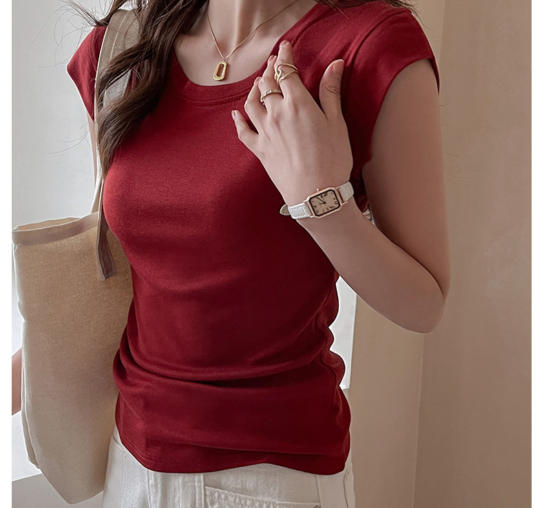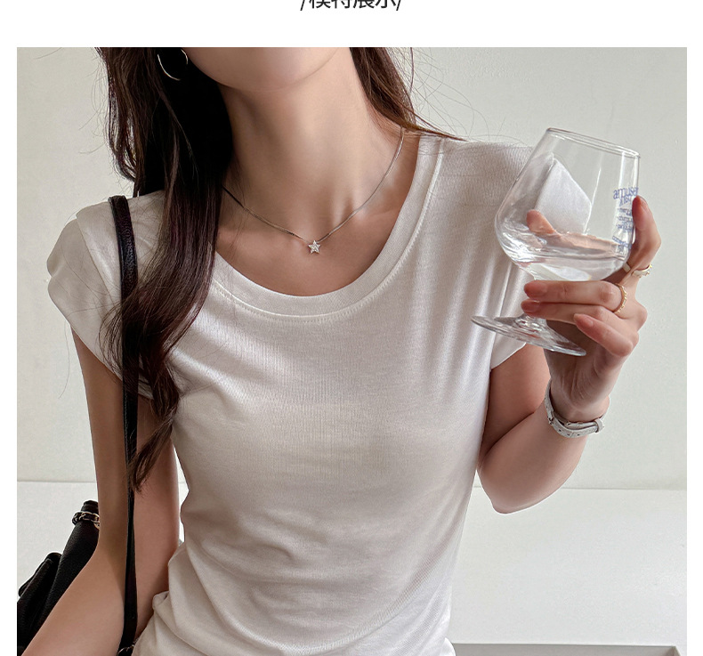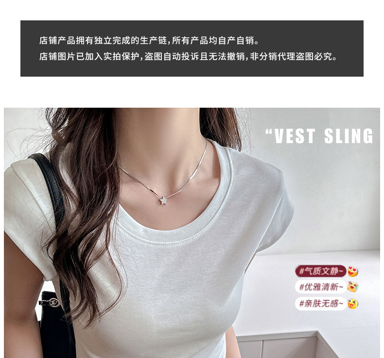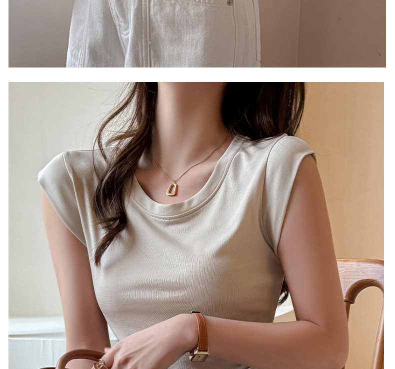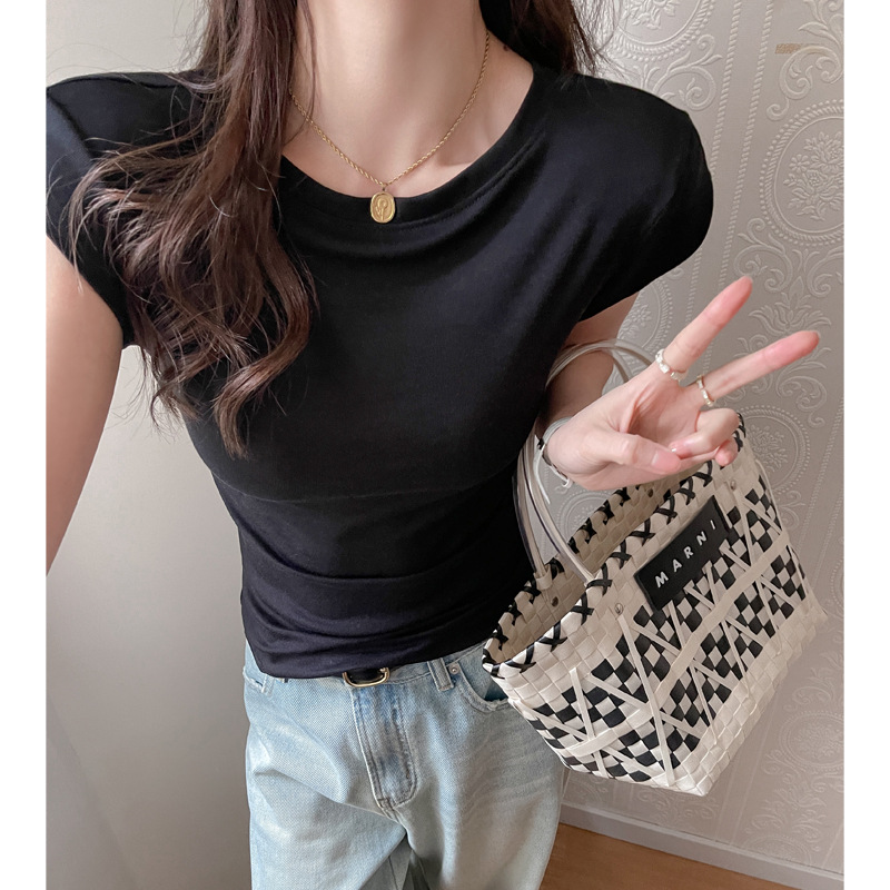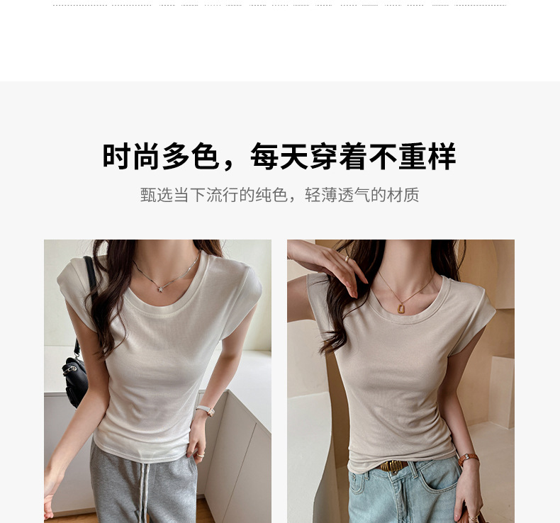 Lyocell Tencel 새로운 어깨 반팔 티셔츠 여성용 어깨 와이드 슬림 핏 하이 엔드 디자인 센스 작은 플라잉 슬리브 탑
