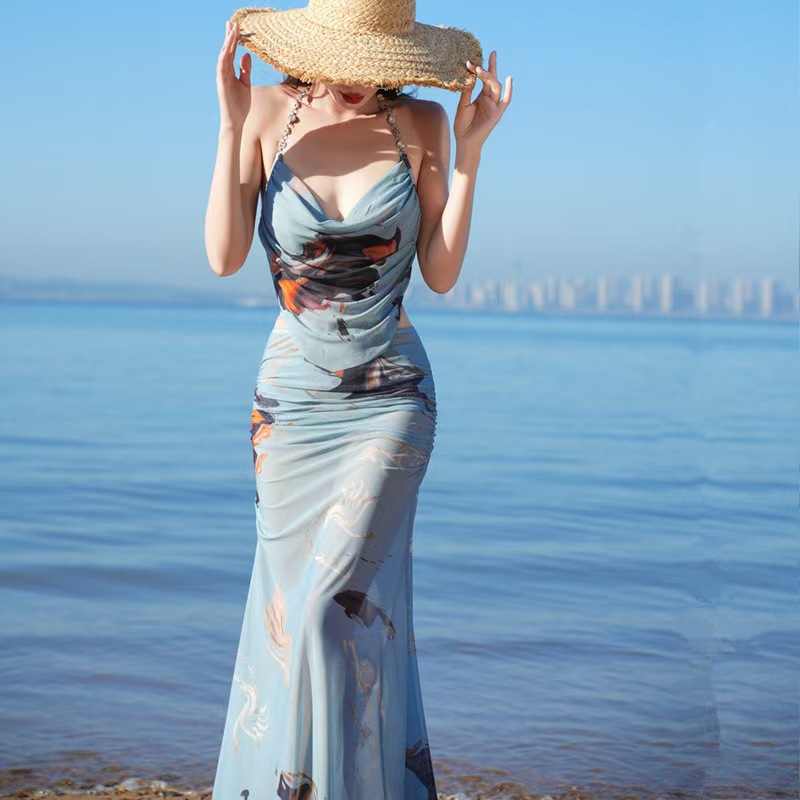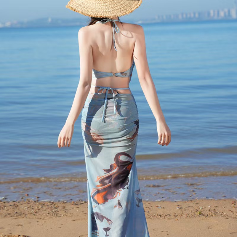 비키니 수영복 여성 2025 새 분할 3 피스 롱 원피스 섹시한 모임 해변 휴일 수영복스토어 가기