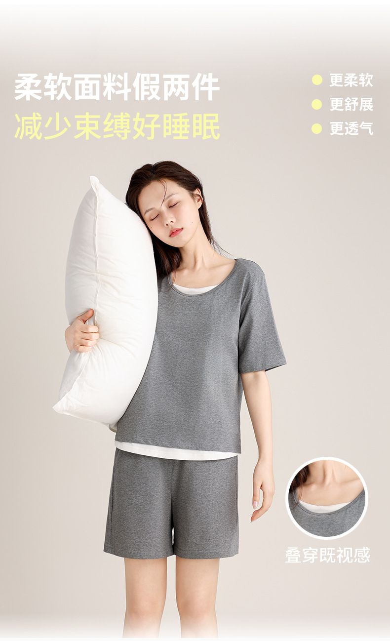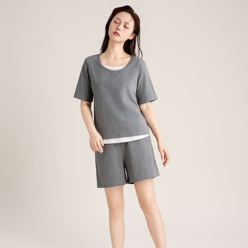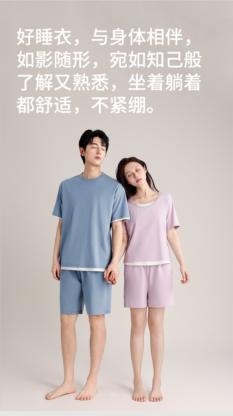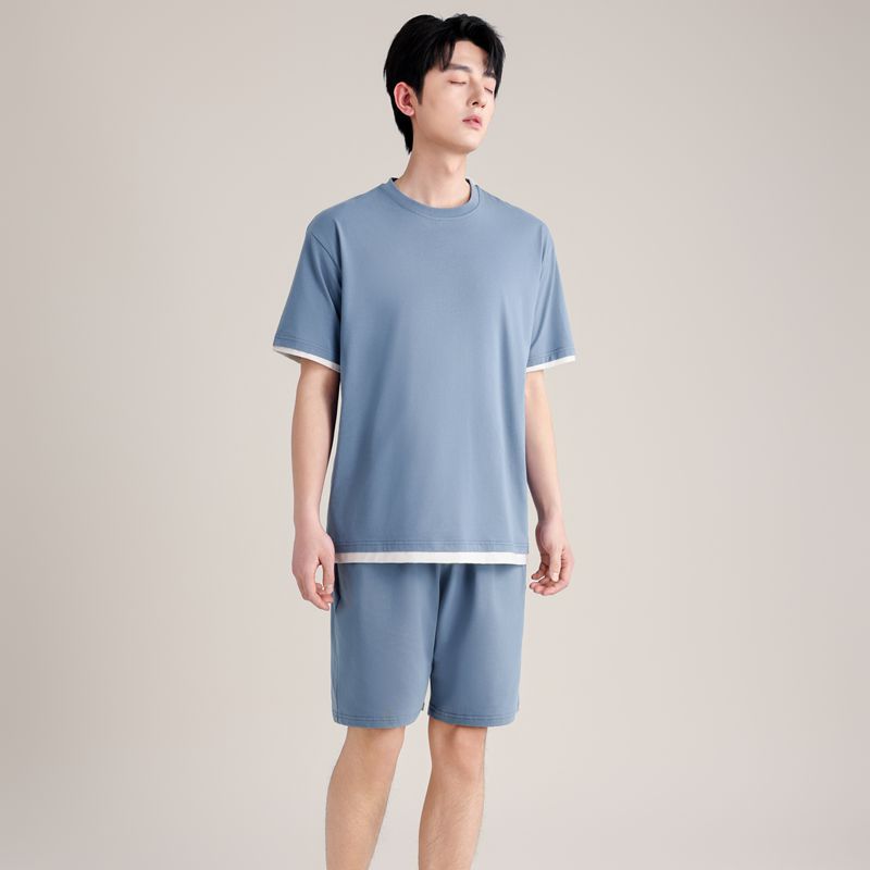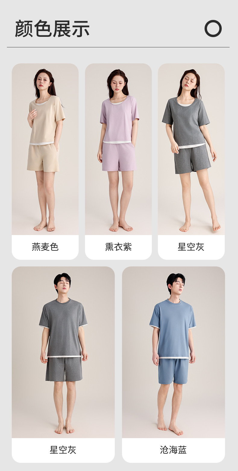 커플의 크루 넥 풀오버 파자마 반팔 반바지 쿨코튼 가짜 투피스 남성용 여름 얇은 홈 의류스토어 가기