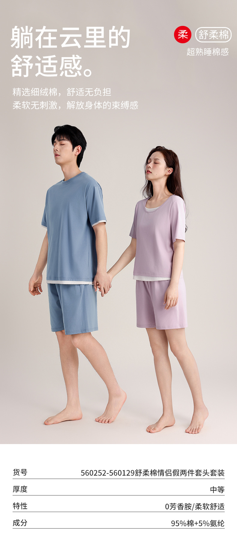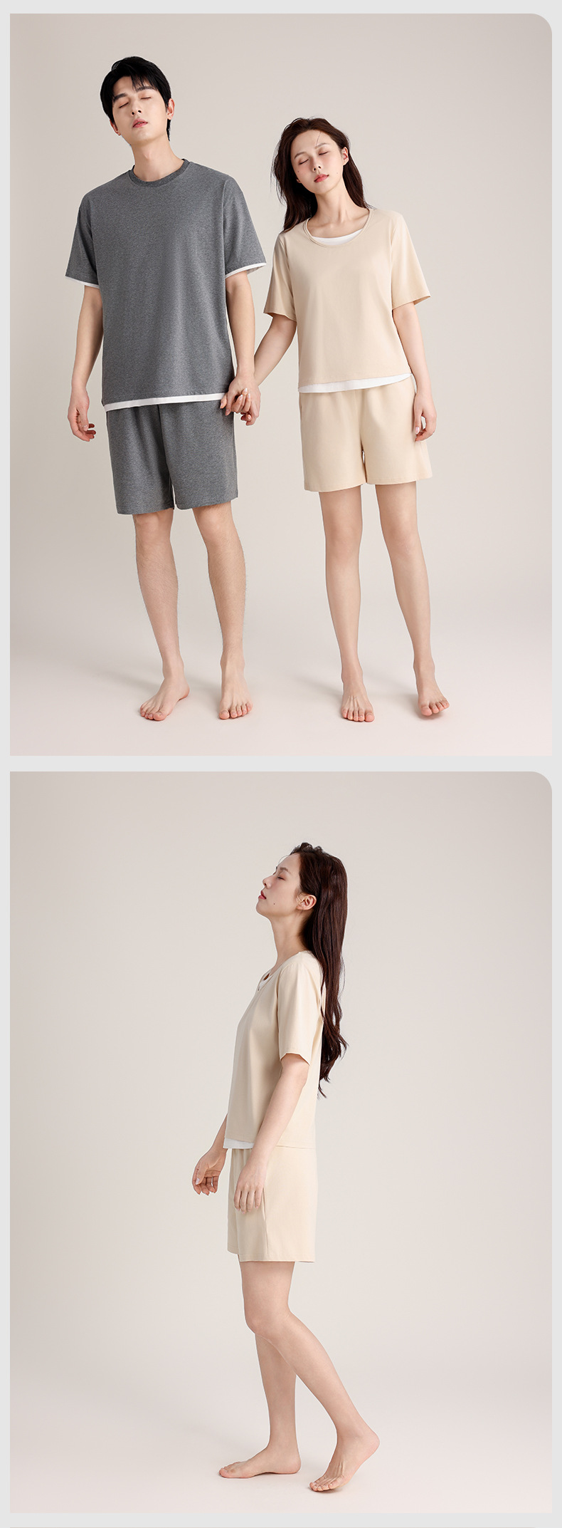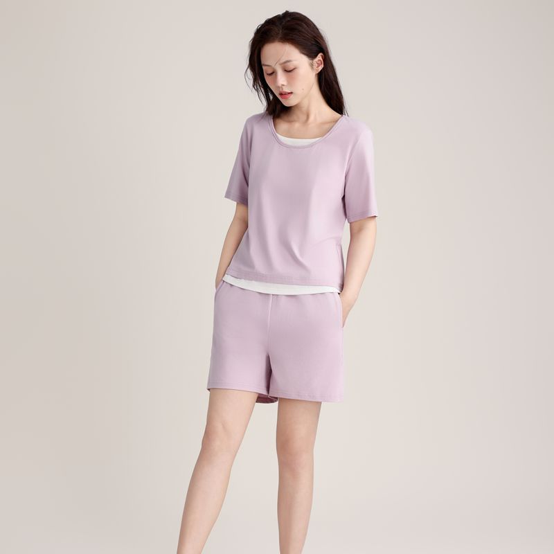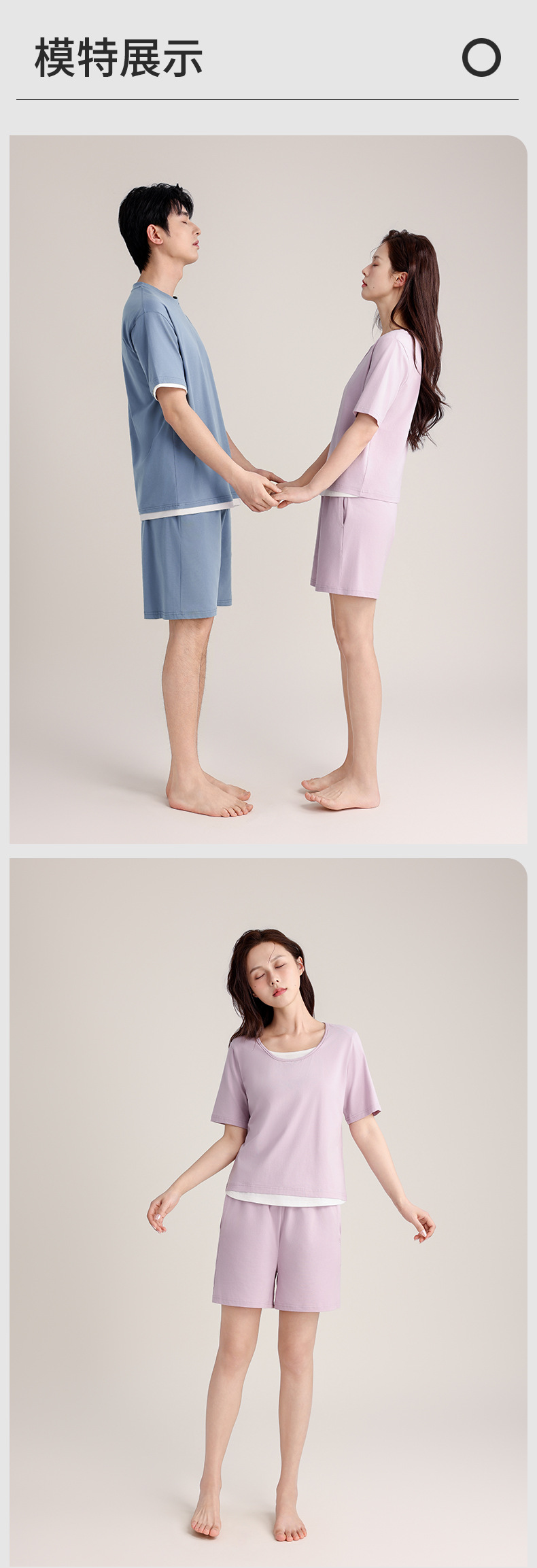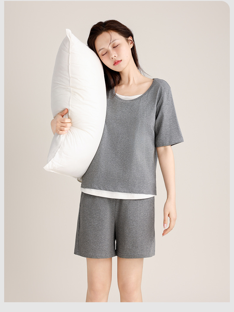 커플의 크루 넥 풀오버 파자마 반팔 반바지 쿨코튼 가짜 투피스 남성용 여름 얇은 홈 의류스토어 가기