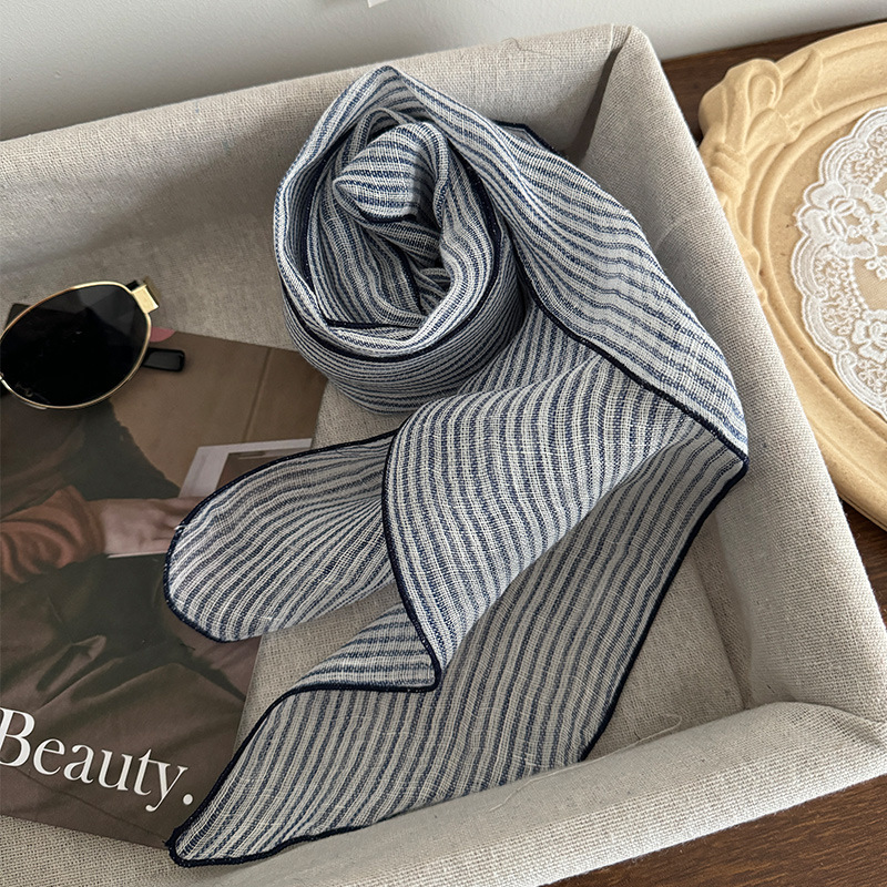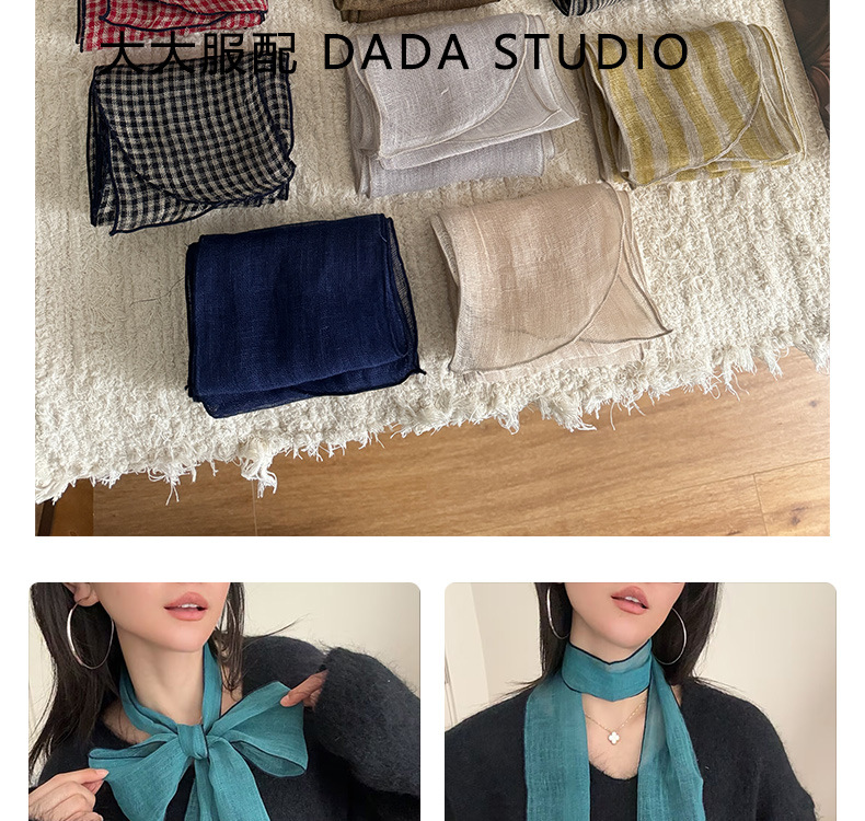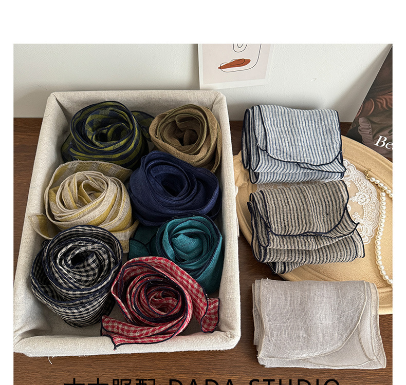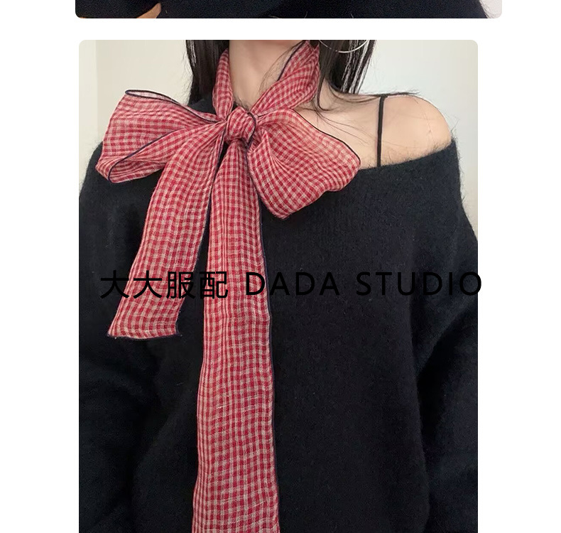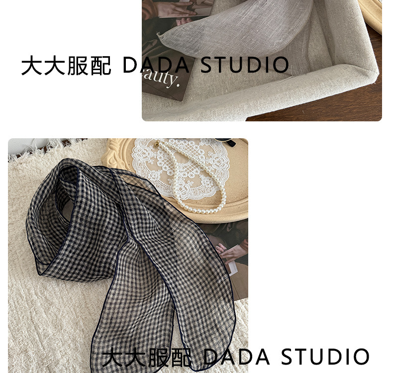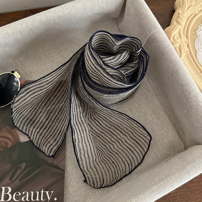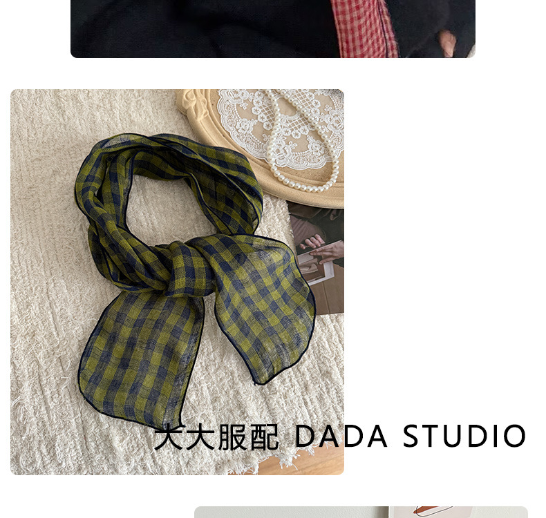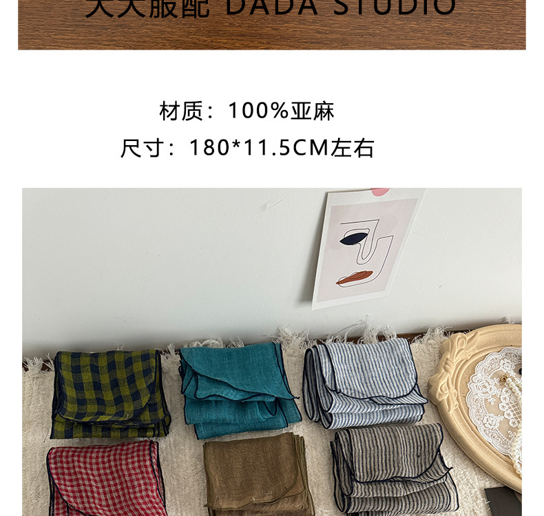 한국 리넨 실크 스카프 여성용 일본식 좁은 작은 긴 스카프 올 매치 아티스틱 레트로 리본 프렌치 체크 무늬 통근 액세서리스토어 가기