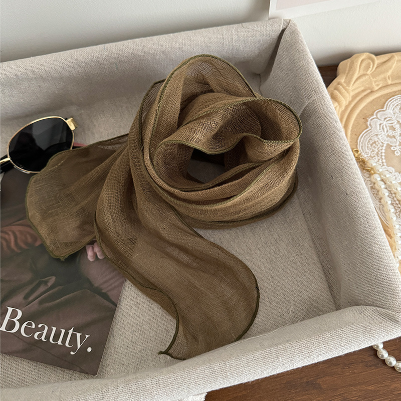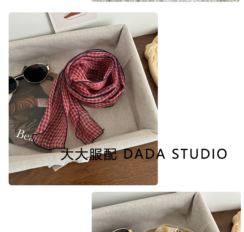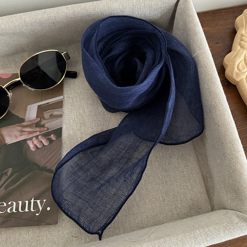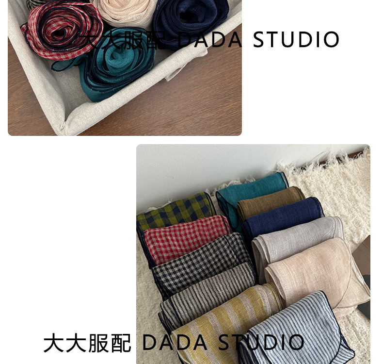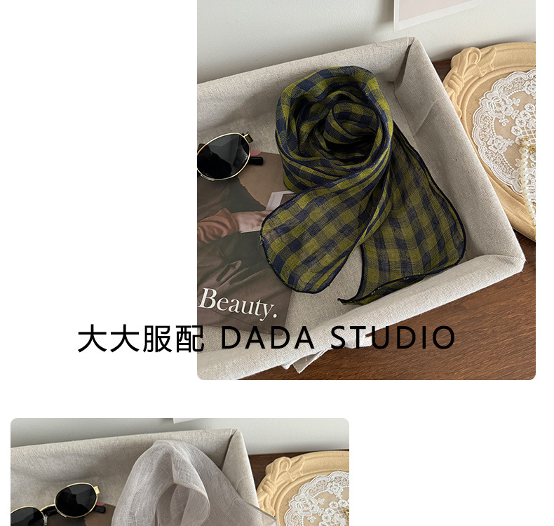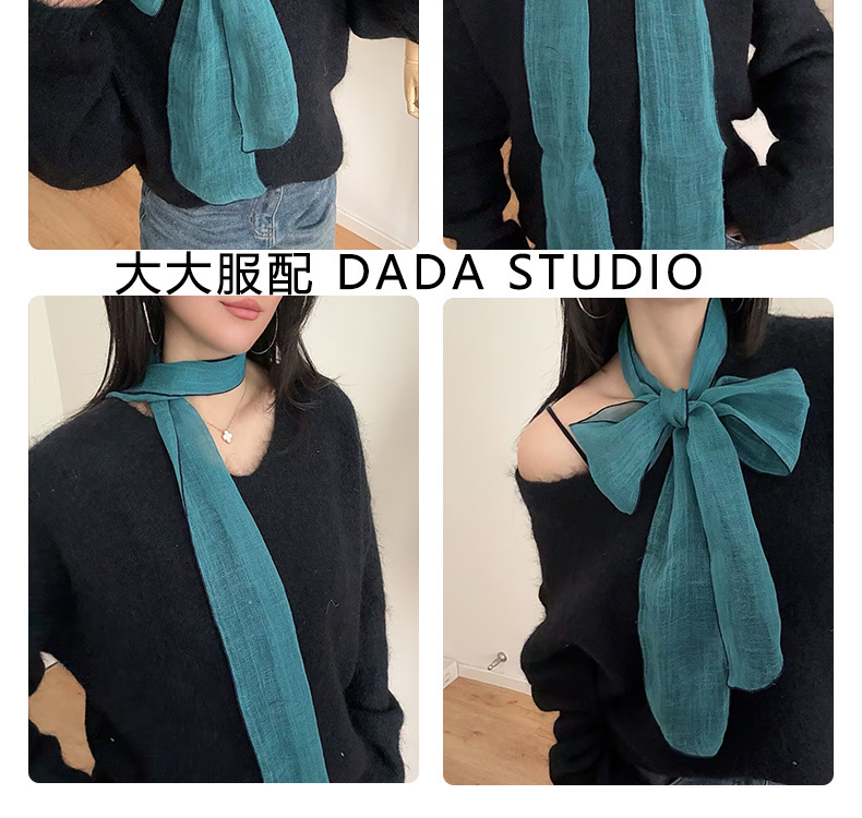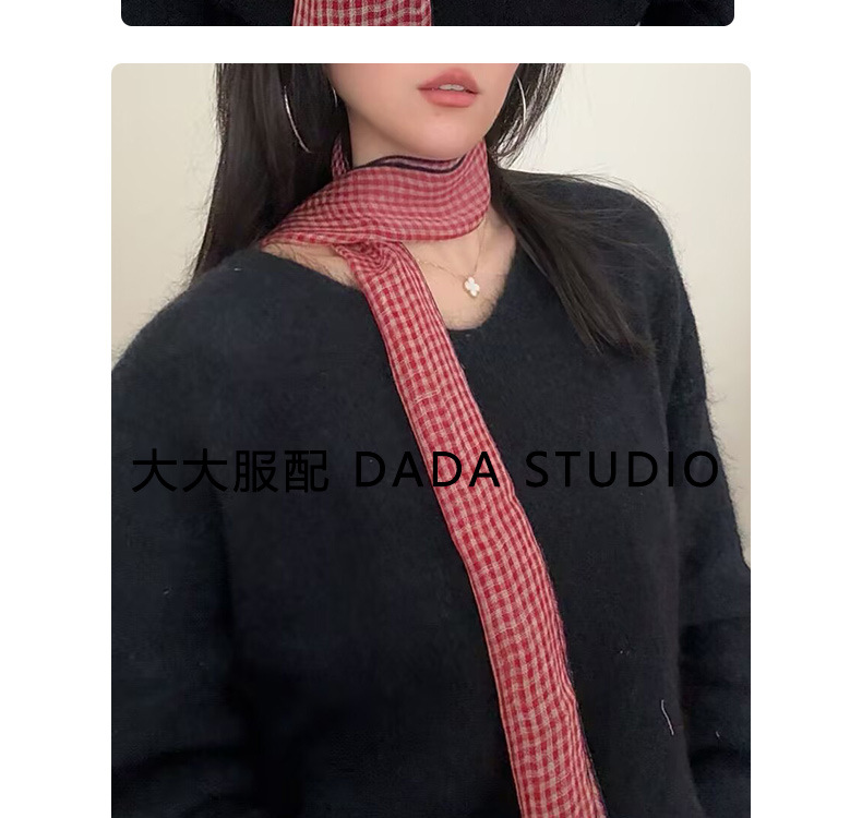 한국 리넨 실크 스카프 여성용 일본식 좁은 작은 긴 스카프 올 매치 아티스틱 레트로 리본 프렌치 체크 무늬 통근 액세서리스토어 가기