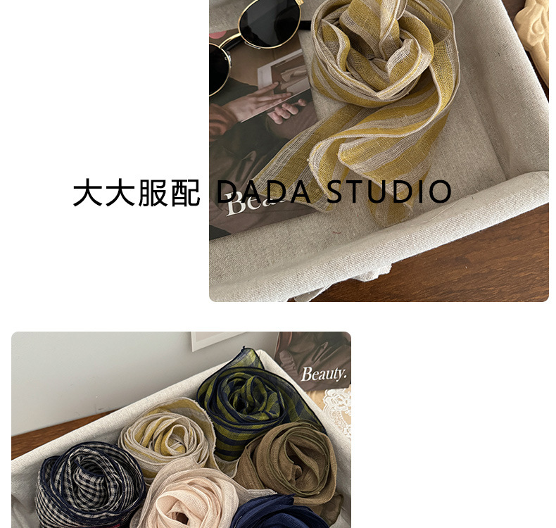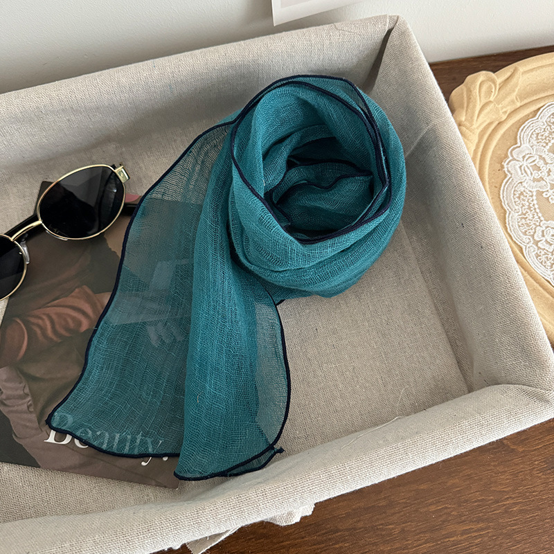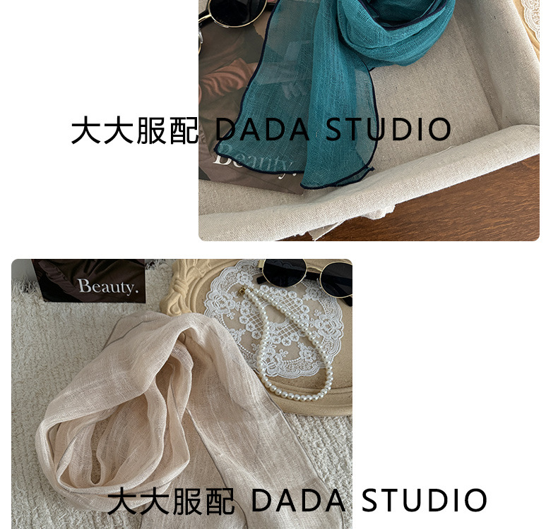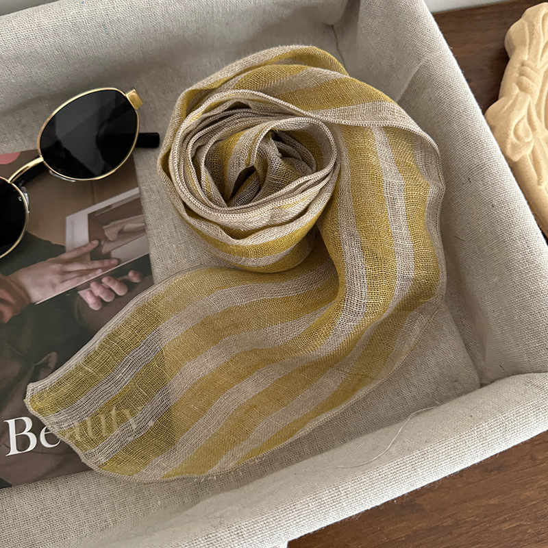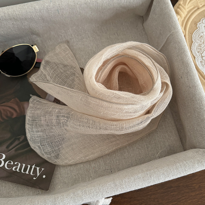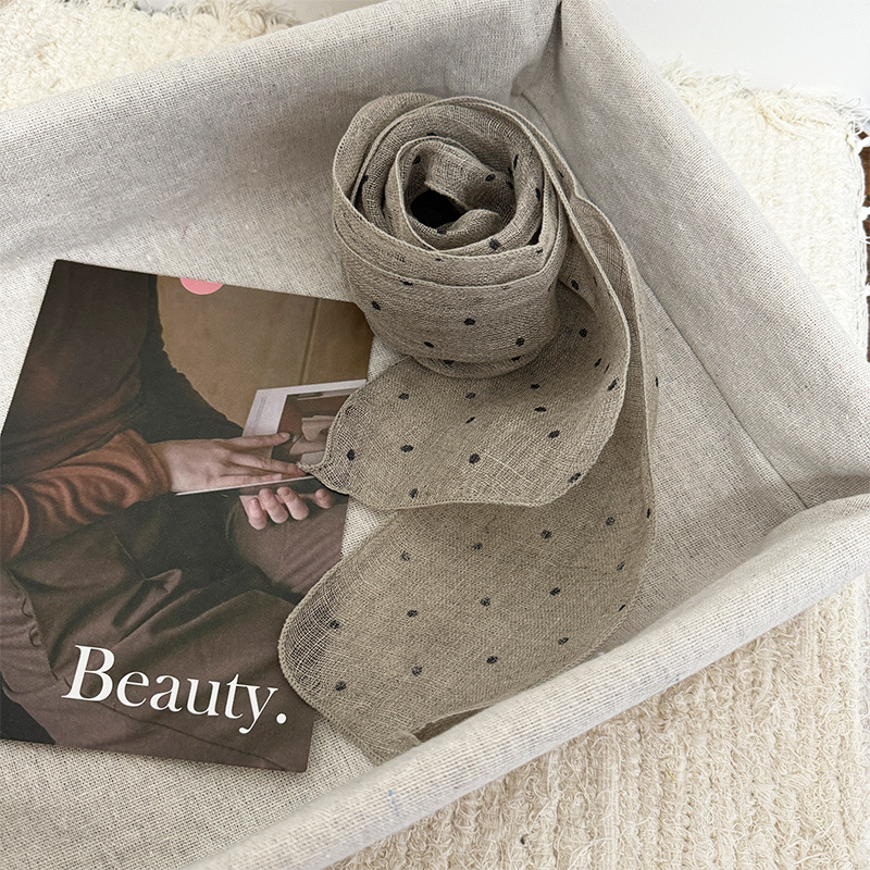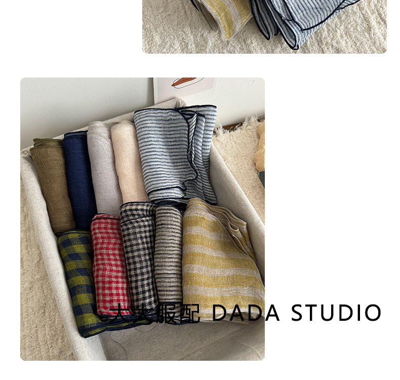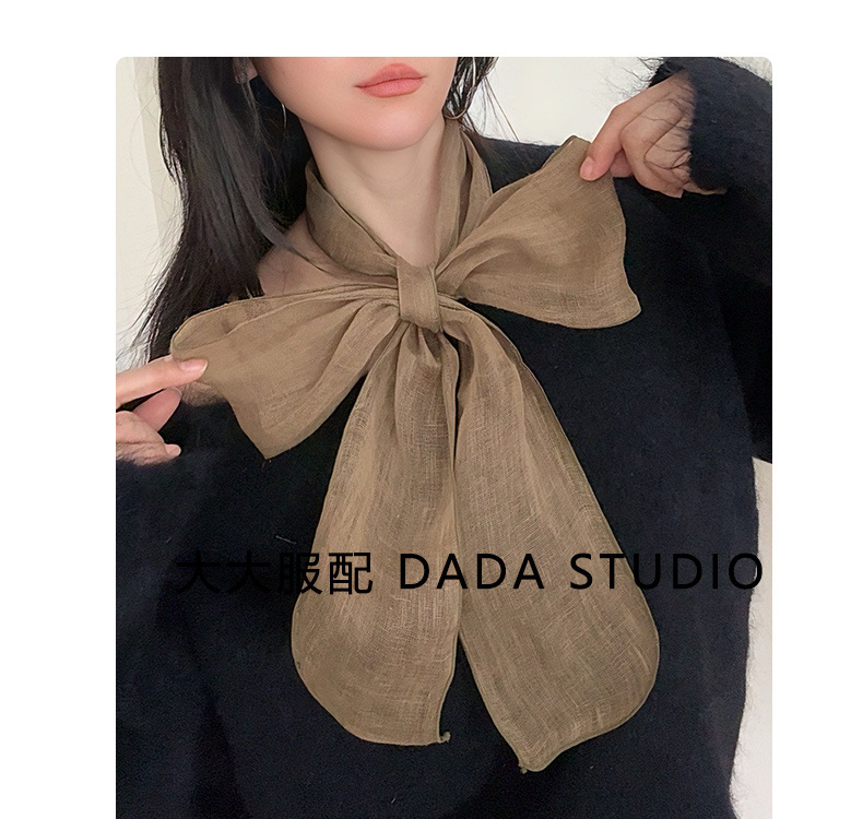 한국 리넨 실크 스카프 여성용 일본식 좁은 작은 긴 스카프 올 매치 아티스틱 레트로 리본 프렌치 체크 무늬 통근 액세서리스토어 가기