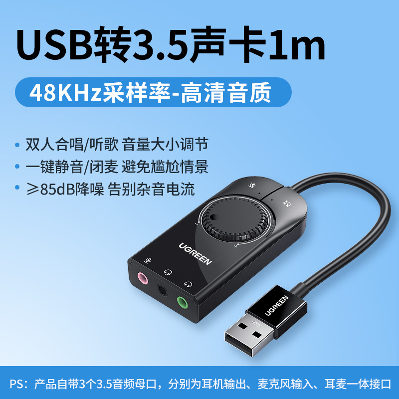 USB 외부 사운드 카드 데스크탑 컴퓨터 노트북 외부 인터페이스 독립 오디오 헤드셋 드라이브 프리 변환기스토어 가기