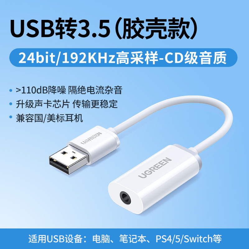 • USB ~ 3.5 사운드 카드 - 24bit192KHz 고샘플링 - CD 수준 음질(플라스틱 쉘 모델)