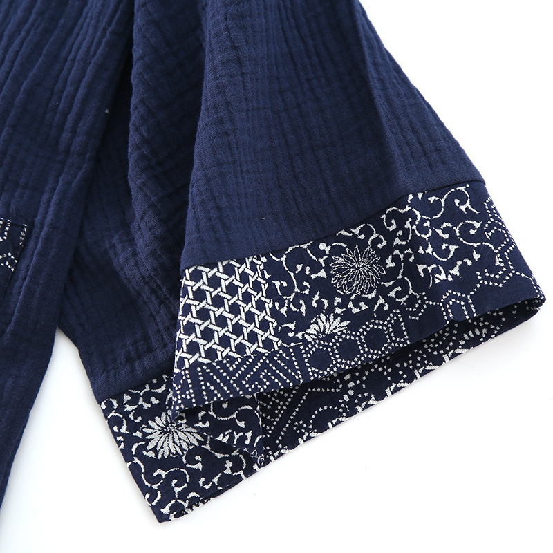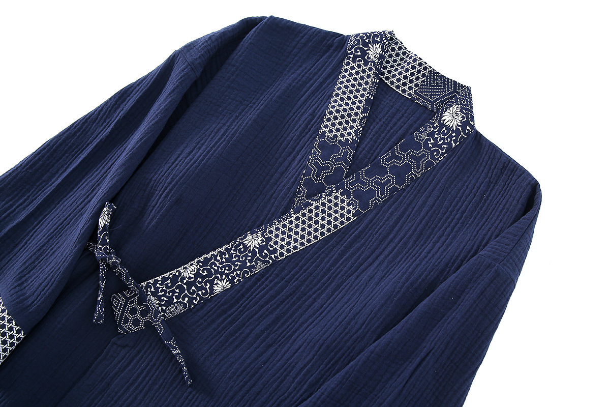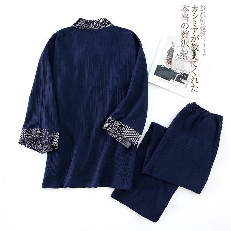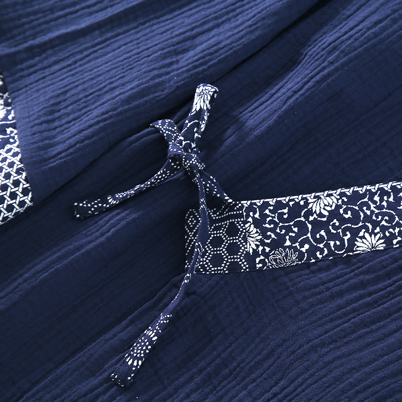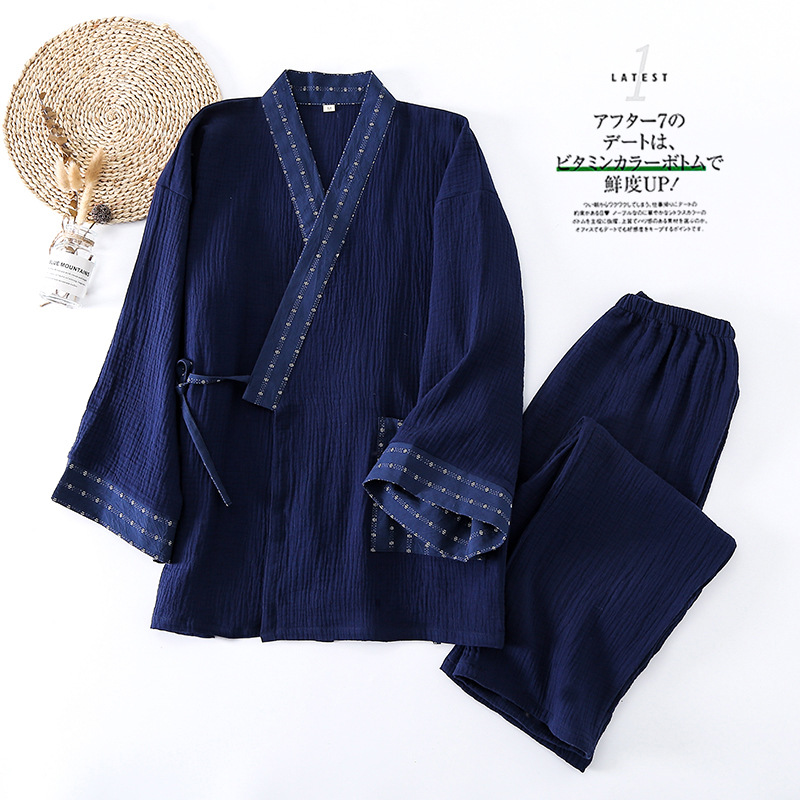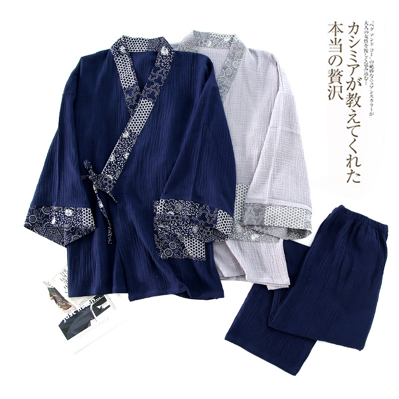 남성용 일본식 레이스 업 기모노 잠옷 세트 봄, 가을 얇은 순면 크레페 스팀 목욕 가운 대형 홈웨어스토어 가기