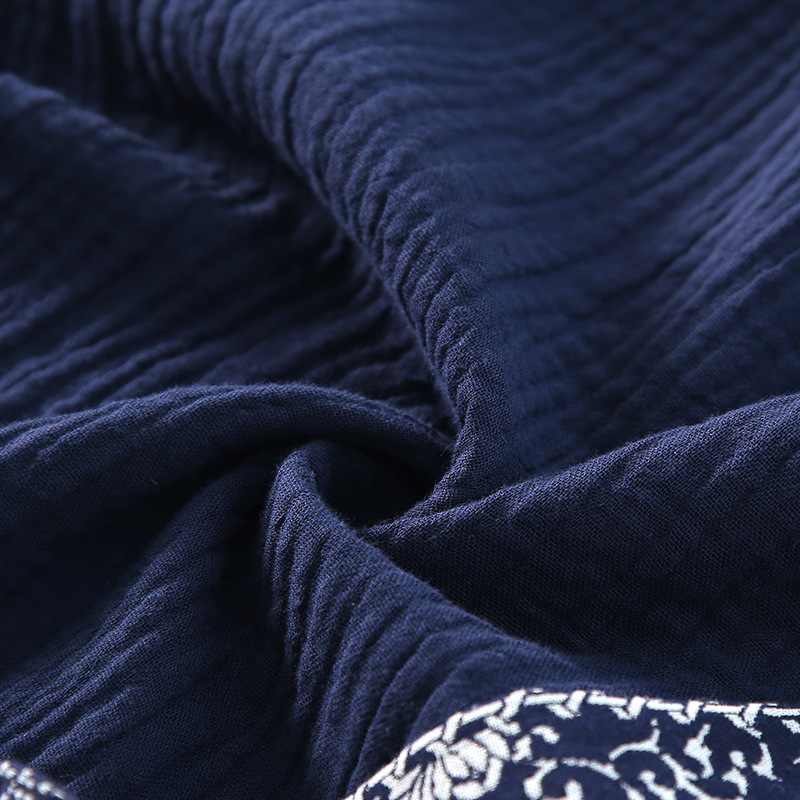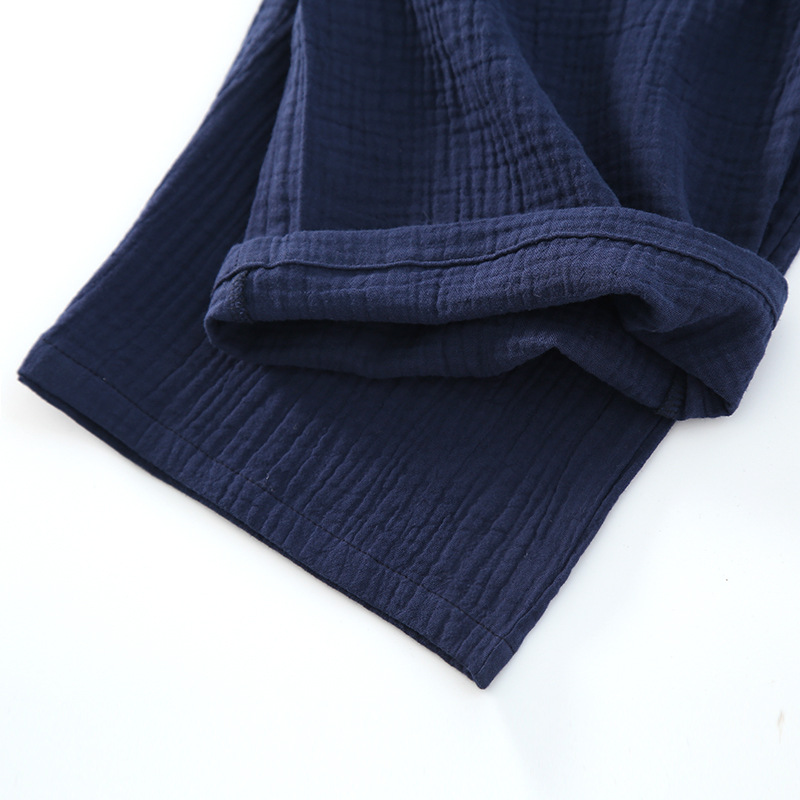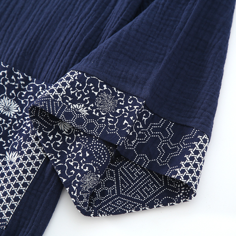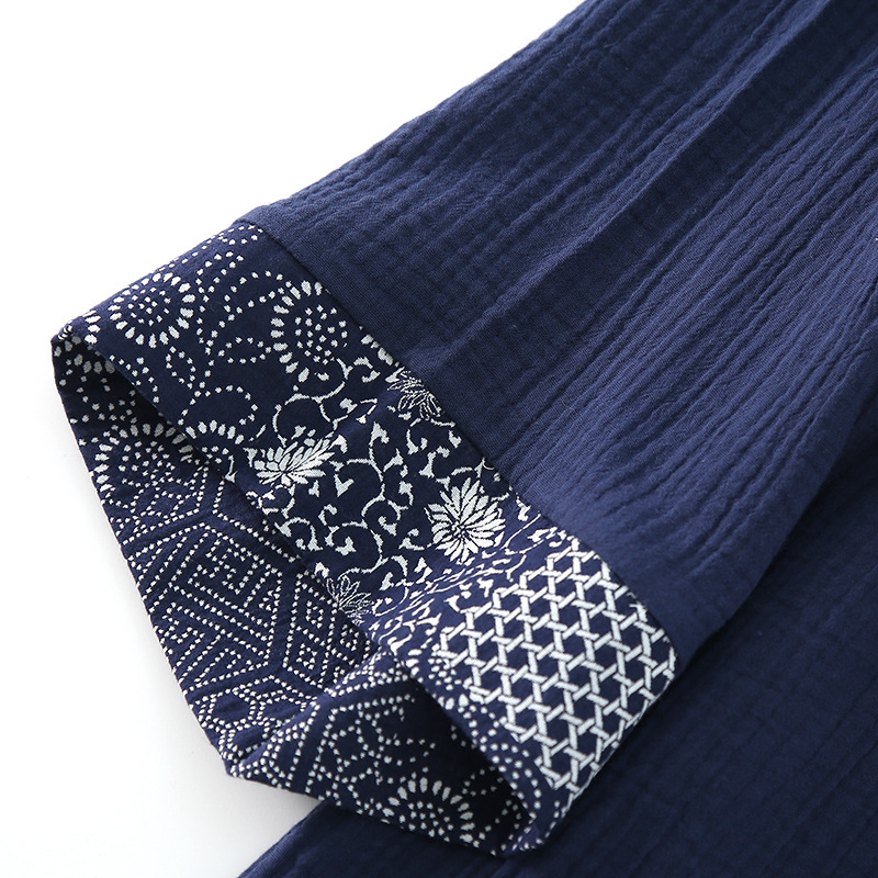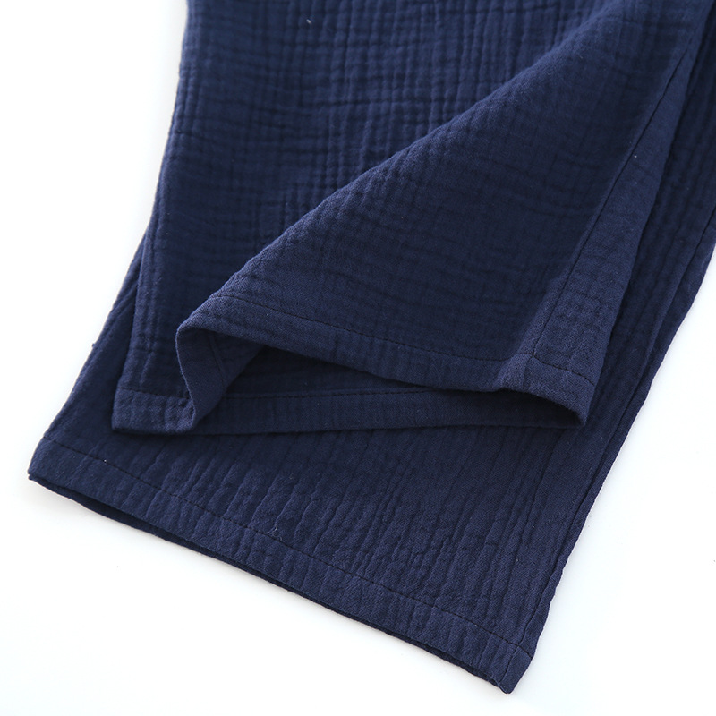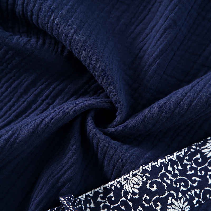 남성용 일본식 레이스 업 기모노 잠옷 세트 봄, 가을 얇은 순면 크레페 스팀 목욕 가운 대형 홈웨어스토어 가기