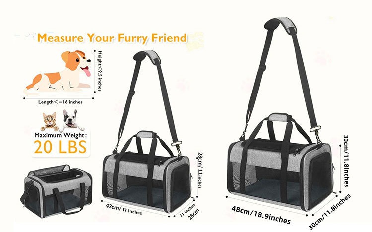 통기성, 접이식, 가볍고 작은 반려동물 외출 가방, 고양이와 강아지를 위한 차량용 반려동물 가방, 휴대용 기내 반입 가능