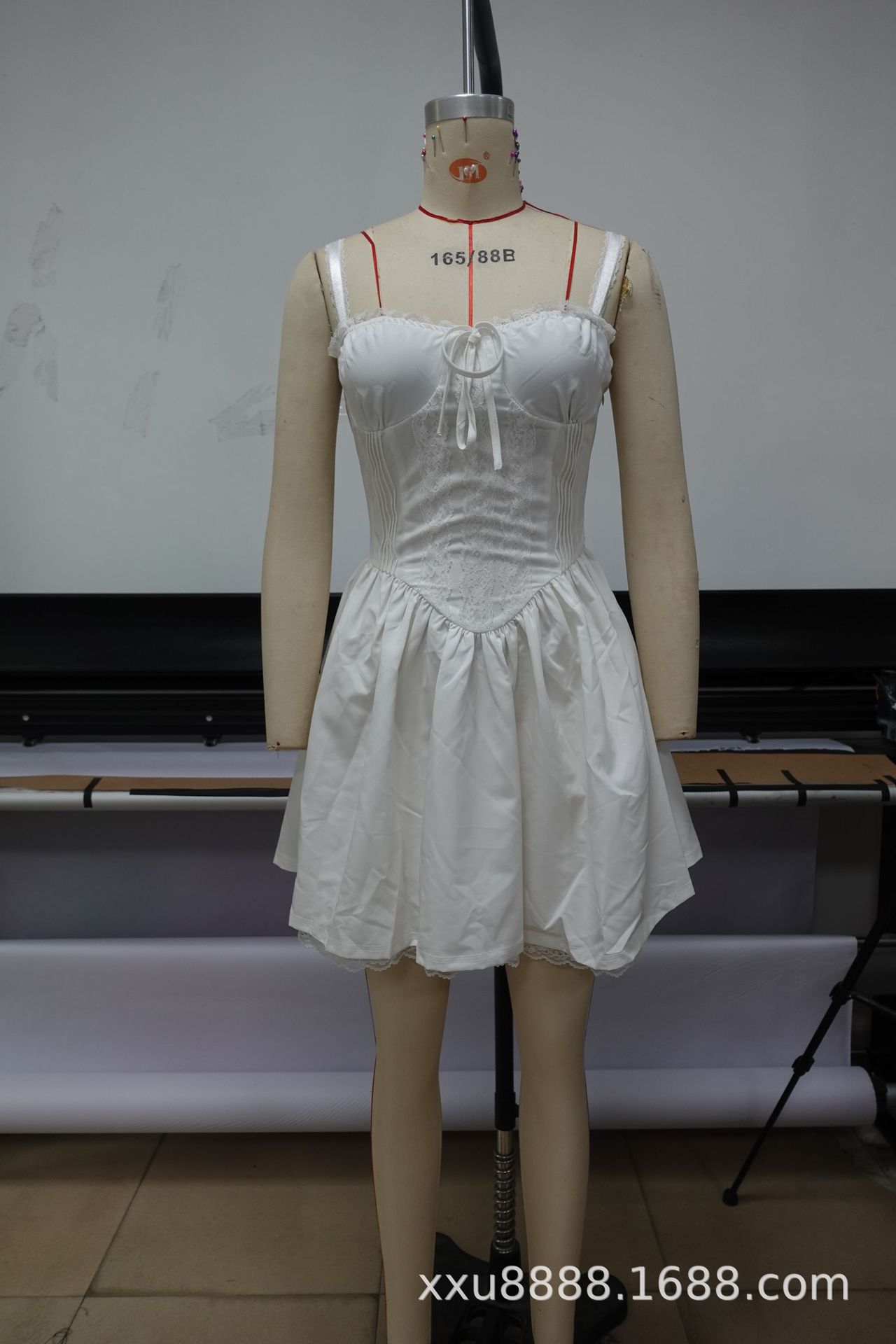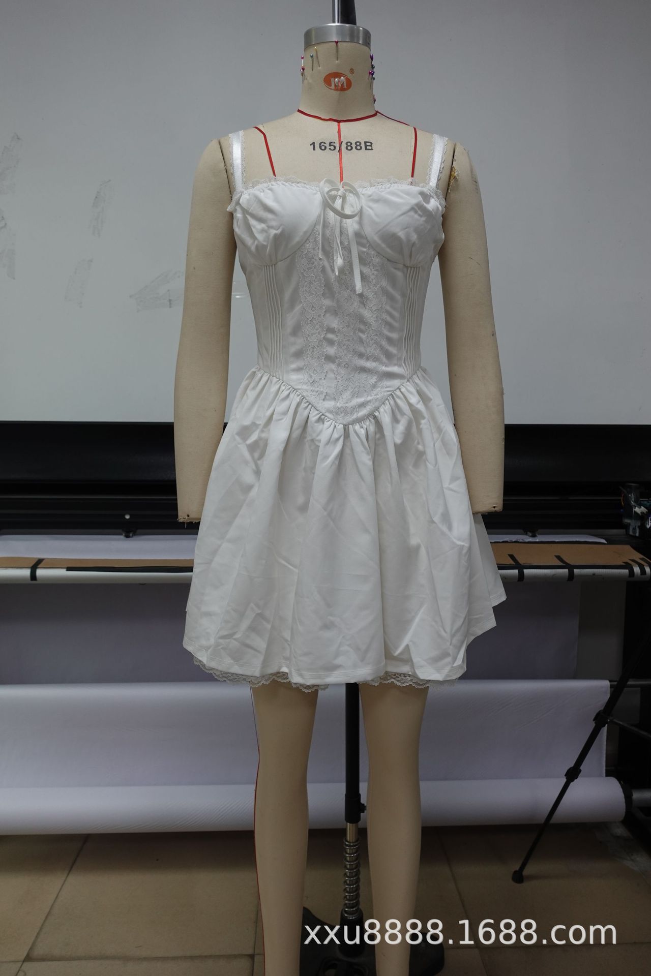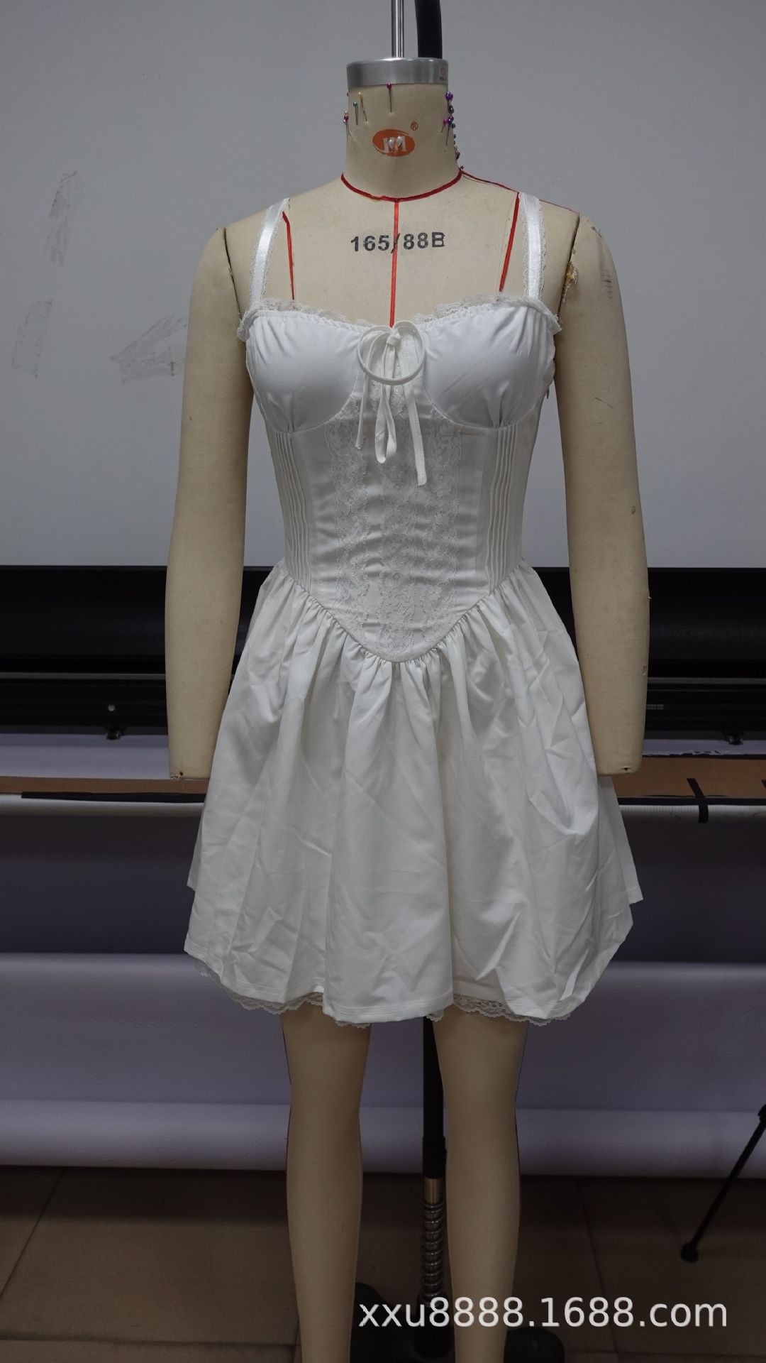2026 크로스보더 유럽 및 미국 스타일 여성복 튜브탑 스트랩 드레스 민소매 레이스 패치워크 발레 드레스 A라인 원피스스토어 가기