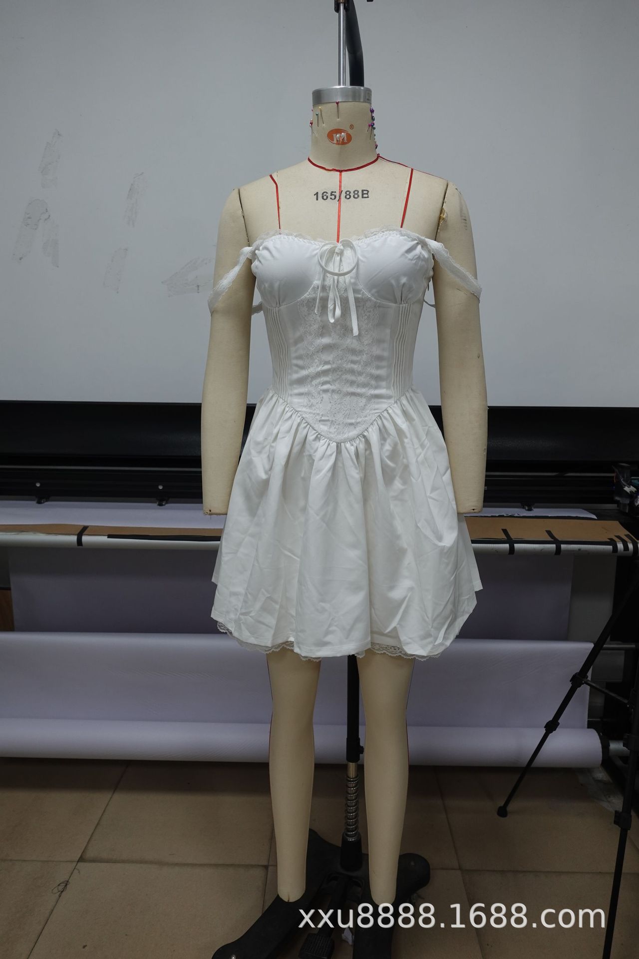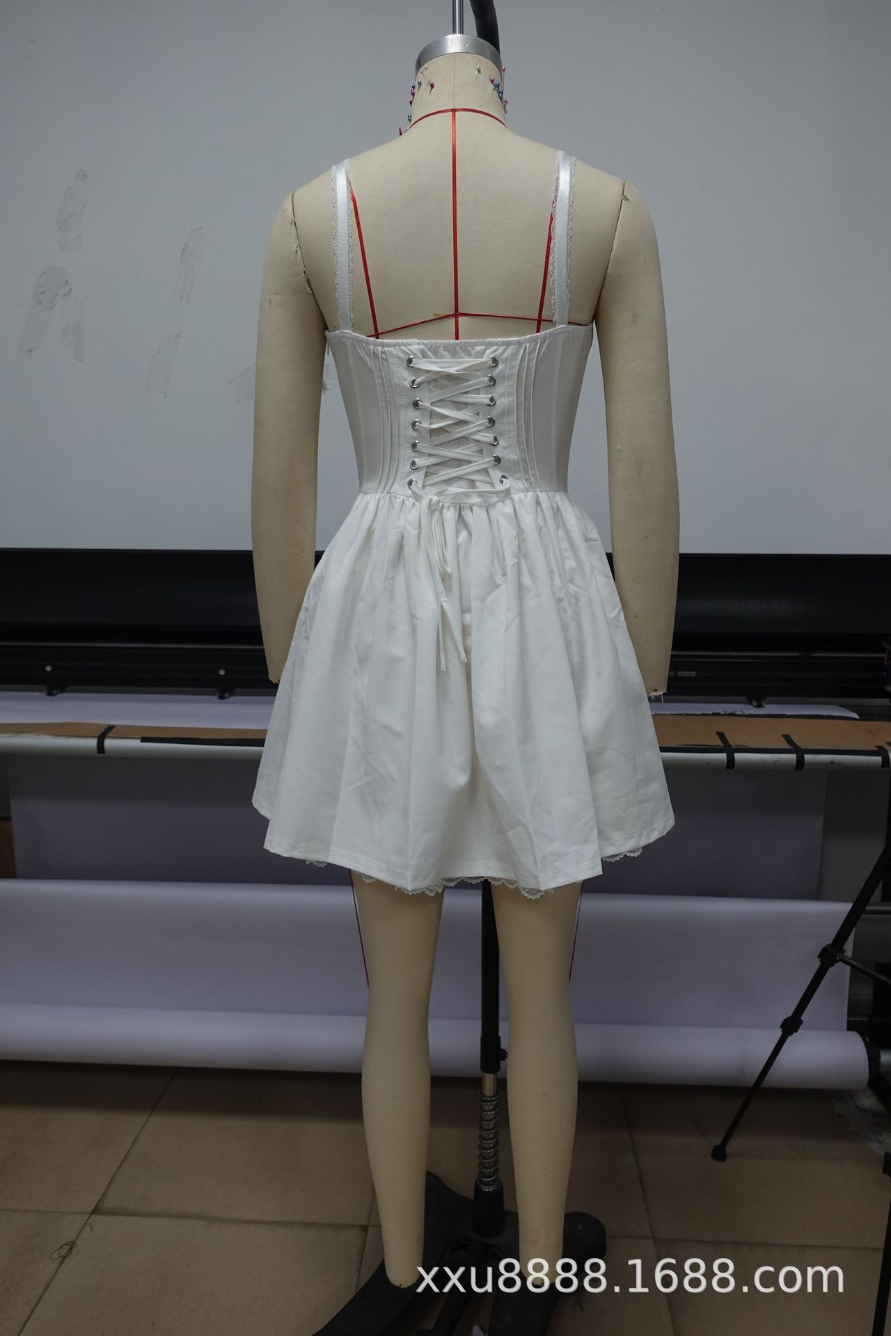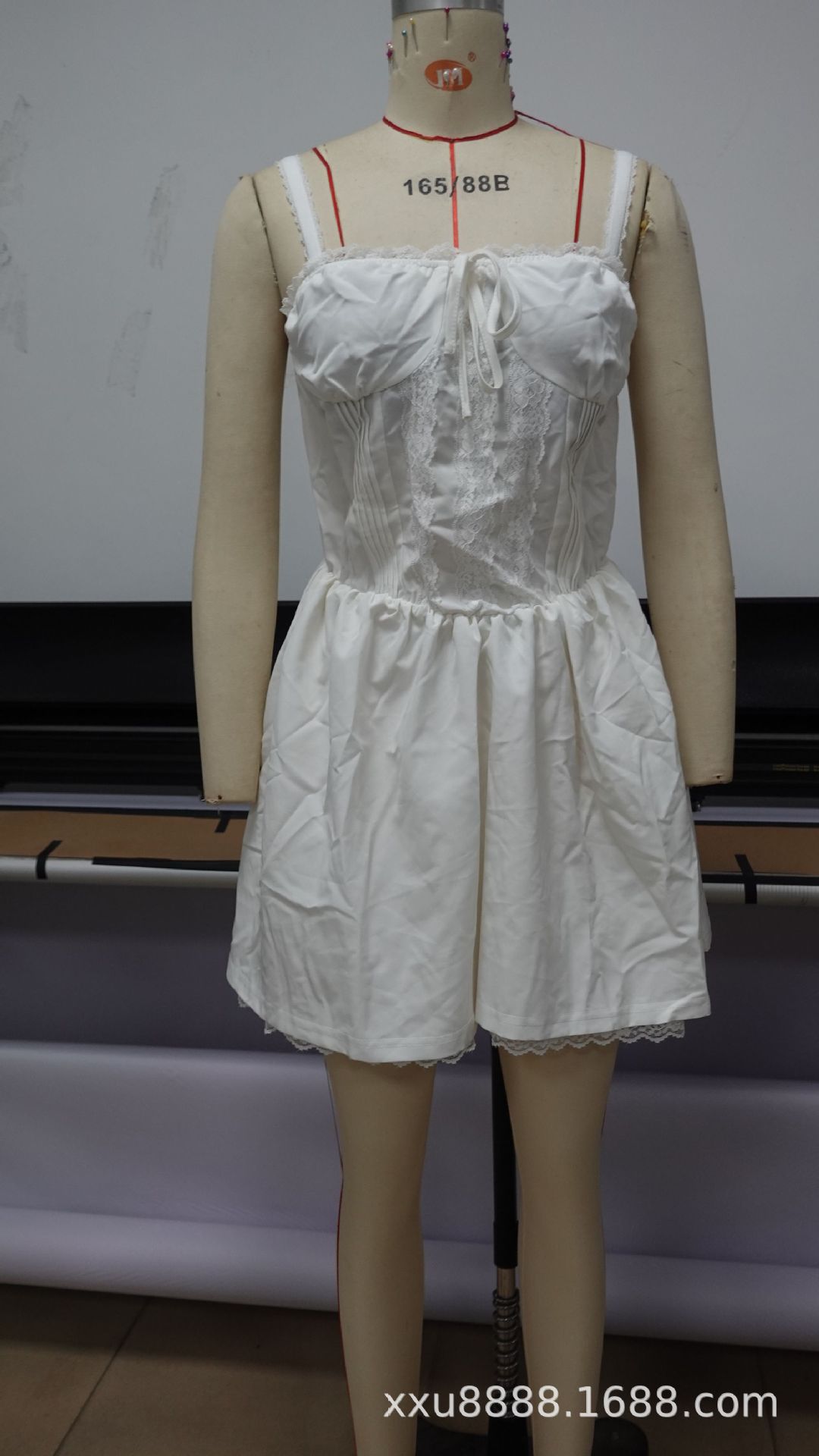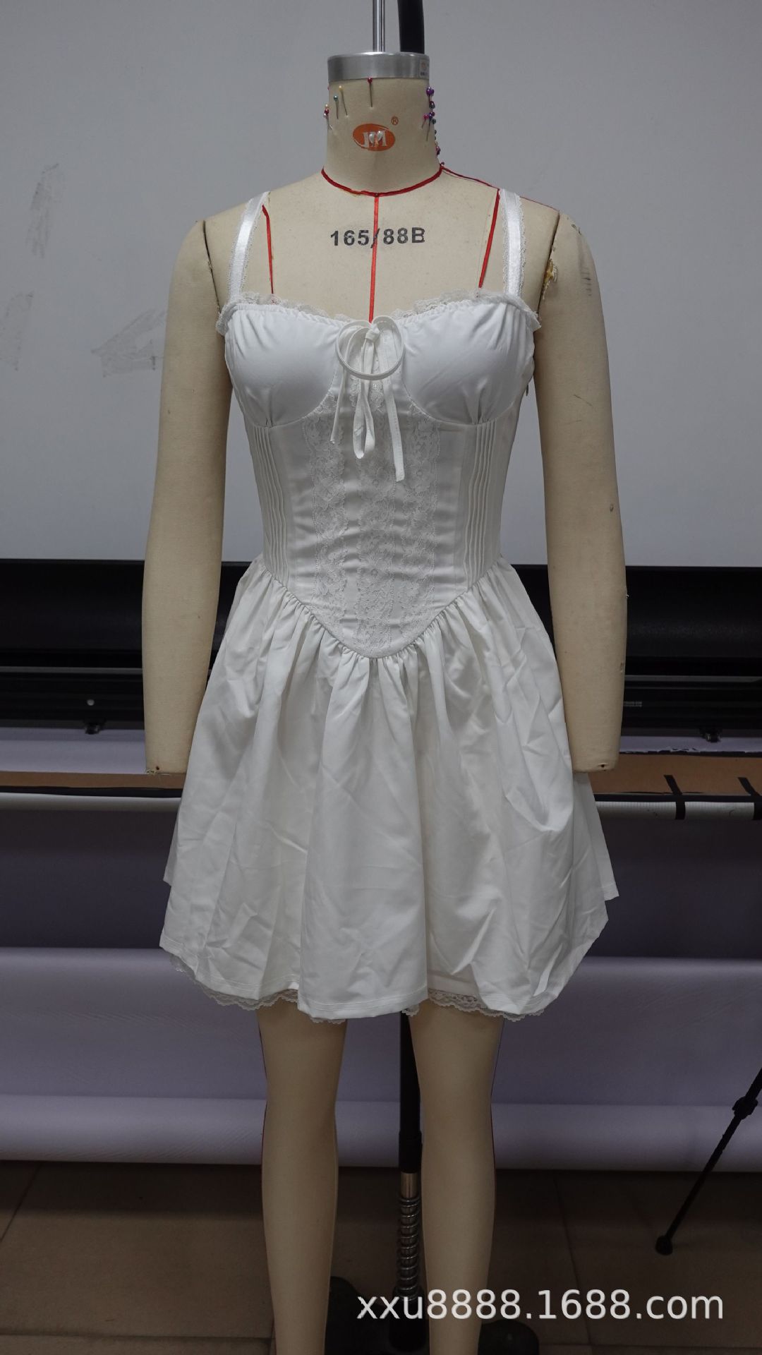 2026 크로스보더 유럽 및 미국 스타일 여성복 튜브탑 스트랩 드레스 민소매 레이스 패치워크 발레 드레스 A라인 원피스스토어 가기