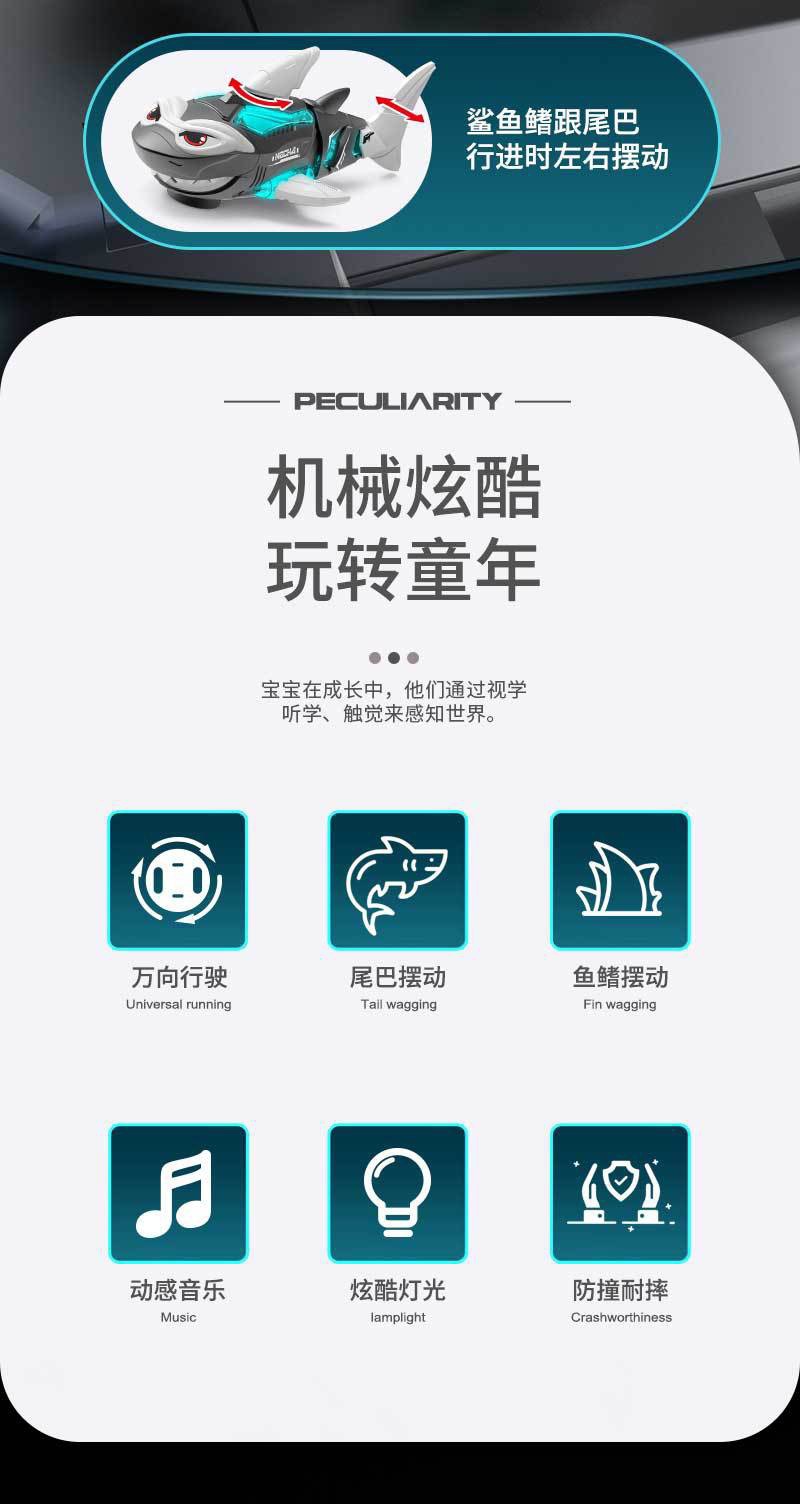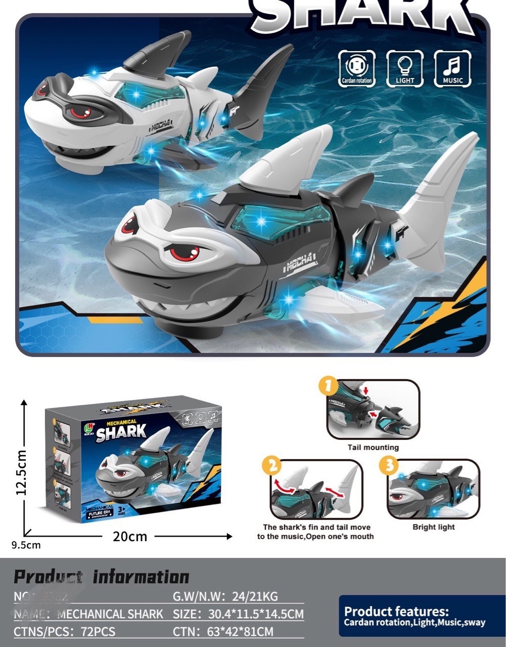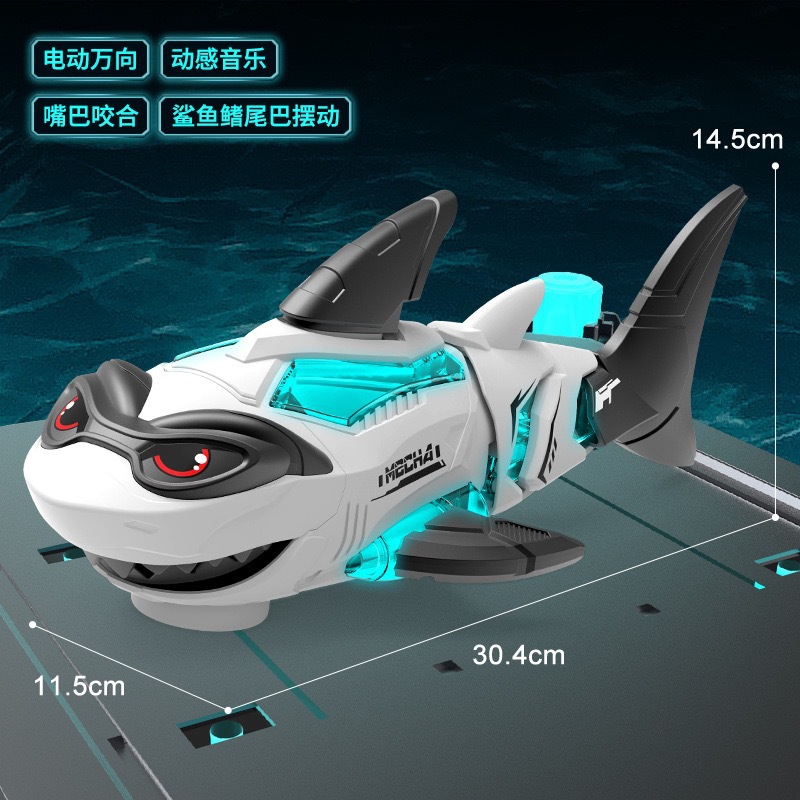 국경 간 신제품 전기 장난감 보편적 인 걷는 기계 상어 발광 벨트 음악 스프레이 소년 어린이 장난감 도매