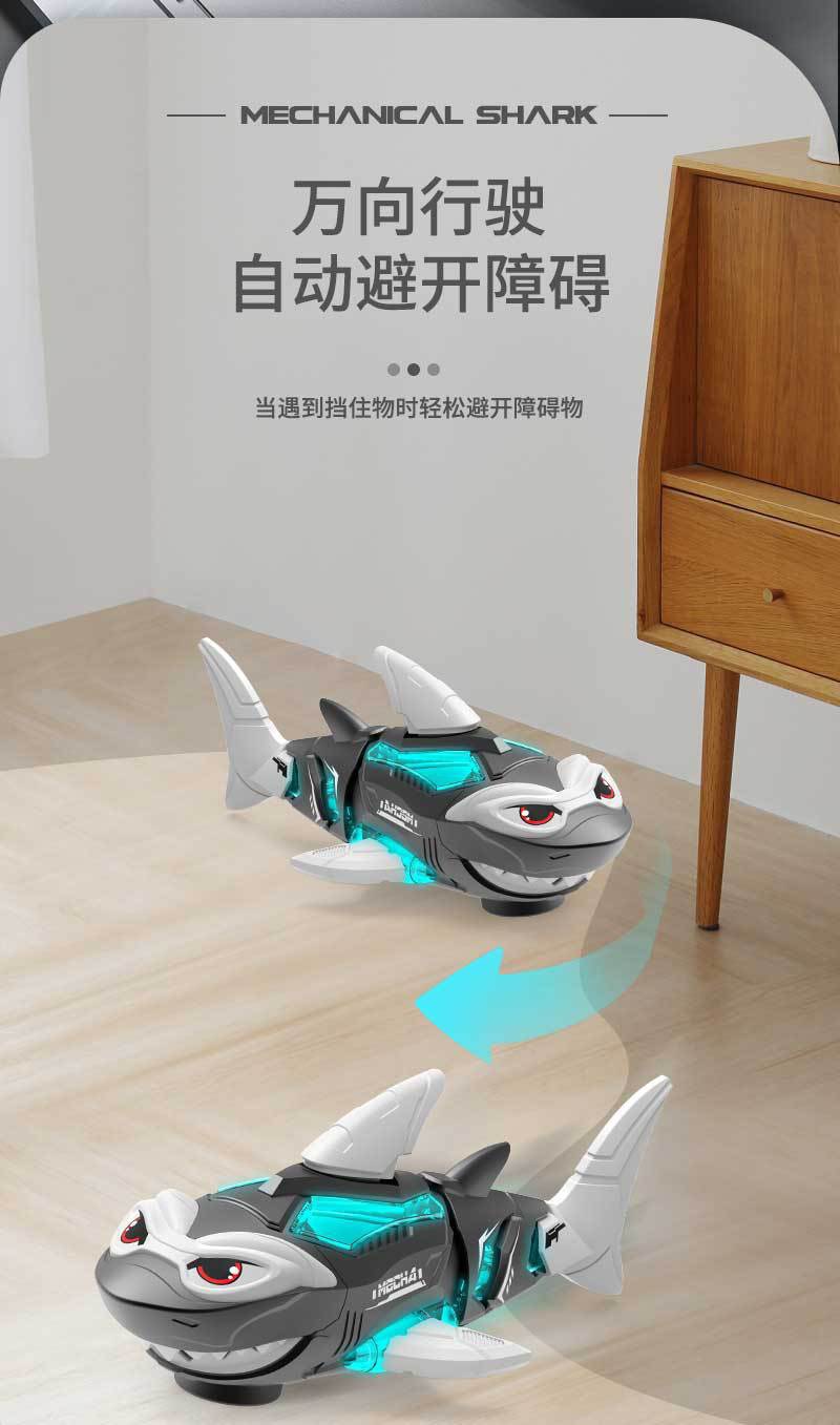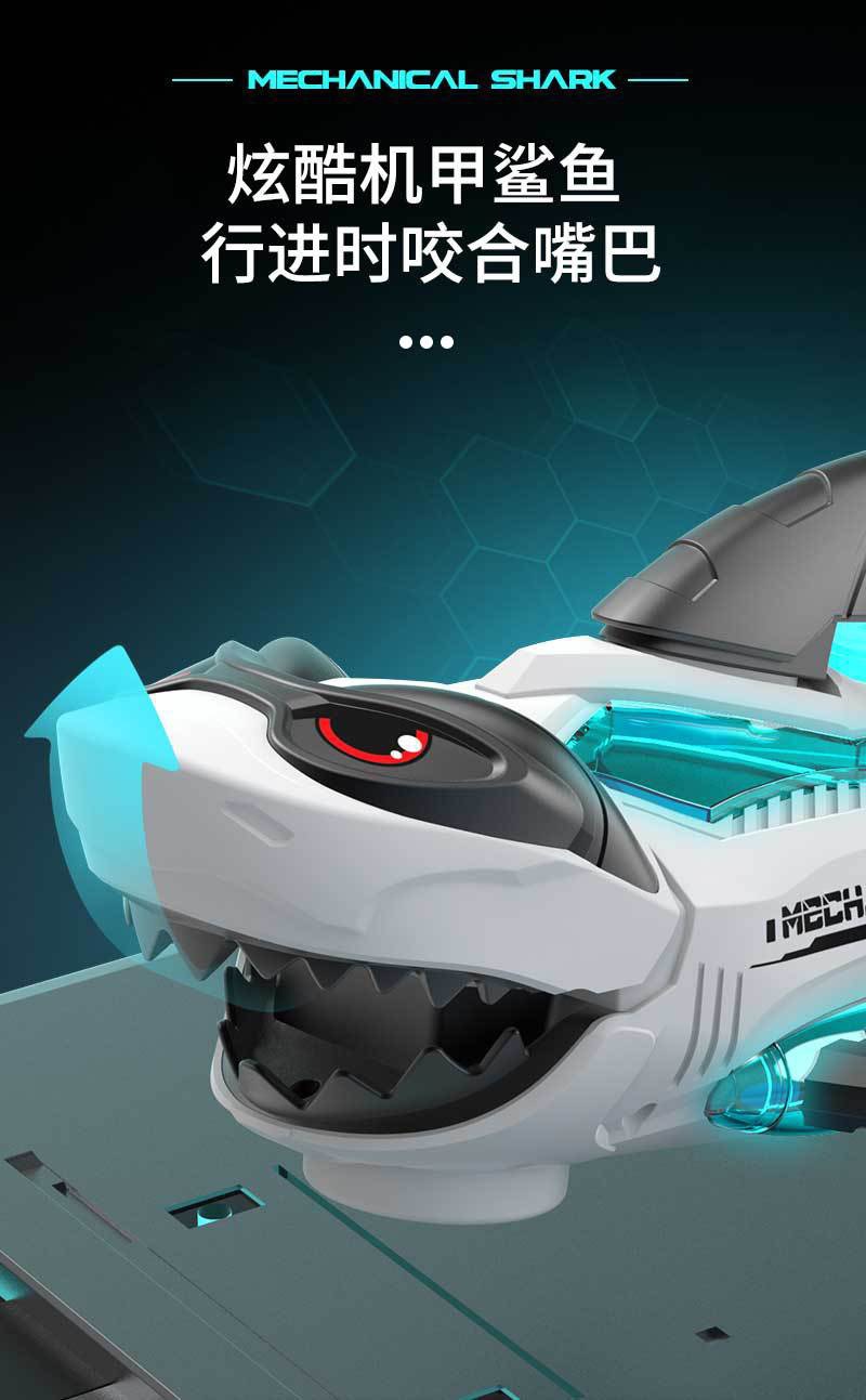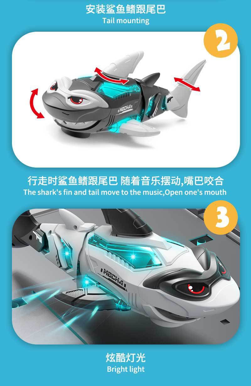 국경 간 신제품 전기 장난감 보편적 인 걷는 기계 상어 발광 벨트 음악 스프레이 소년 어린이 장난감 도매스토어 가기