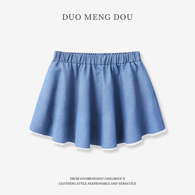 여아 데님 스커트, 여아 레이스 치마바지, 큰 어린이 스커트, 어린이 얇은 치마바지, 중대형 어린이 여름 스커트