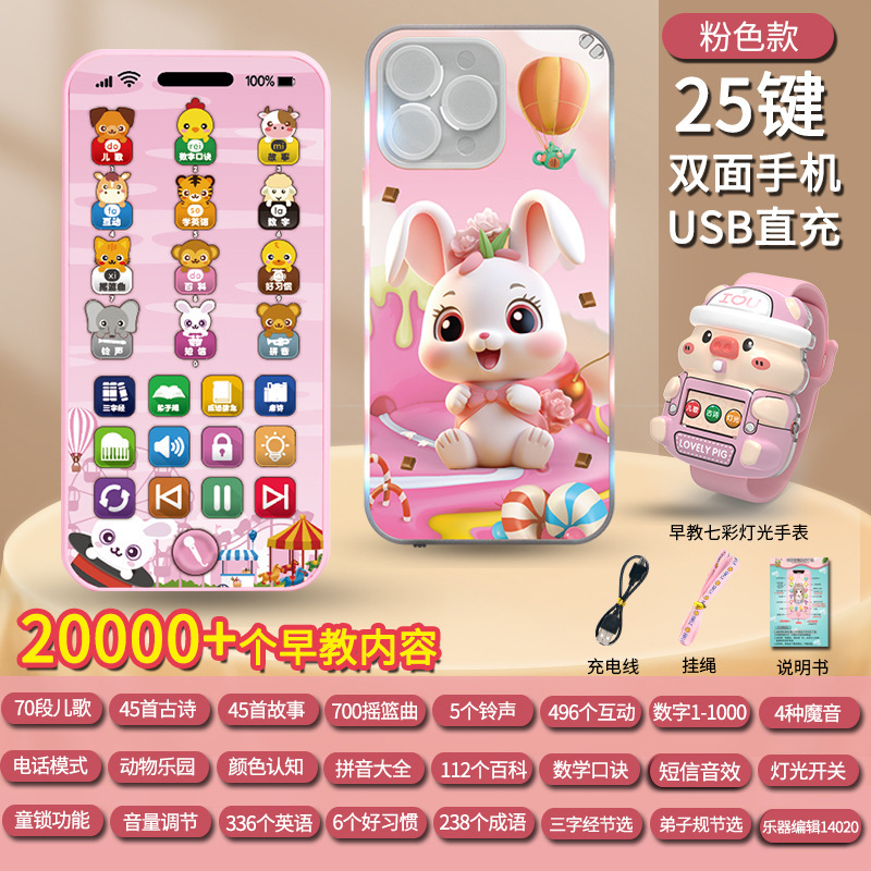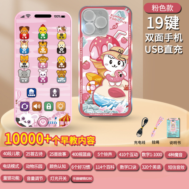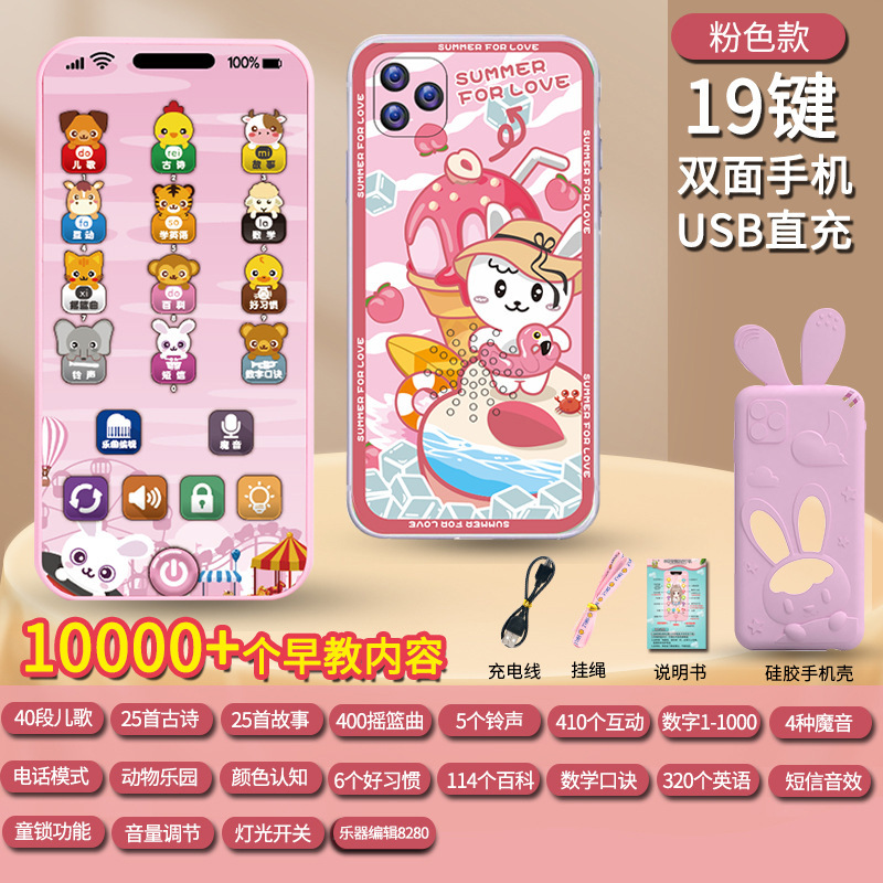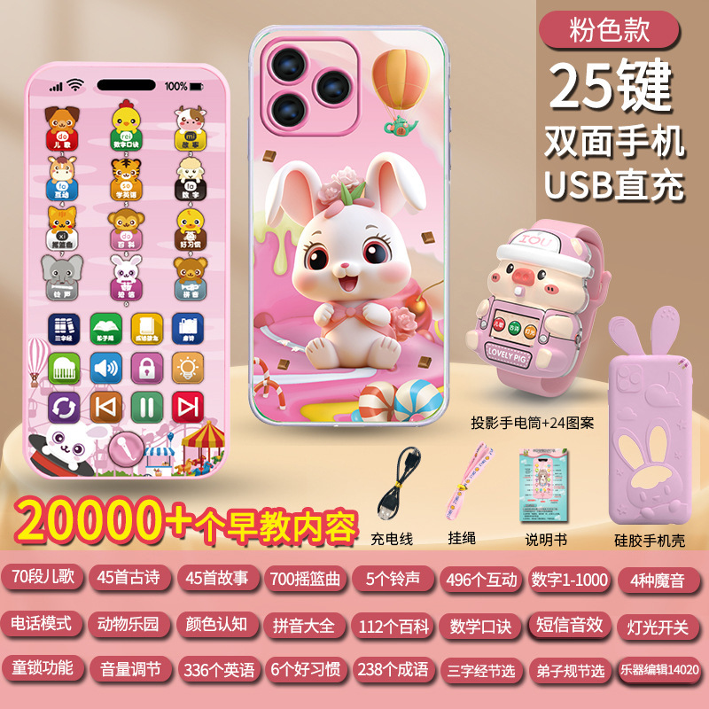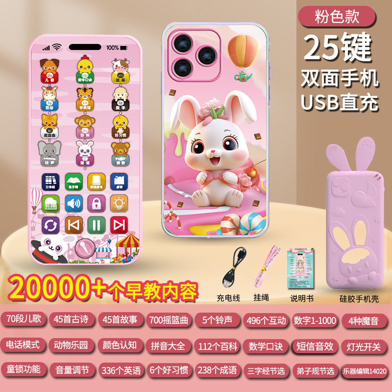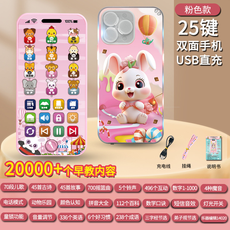 충전식 조기 교육 시뮬레이션 휴대 전화 장난감 다기능 아기 계몽주의 교육 음악 전화 소녀 아기 물린