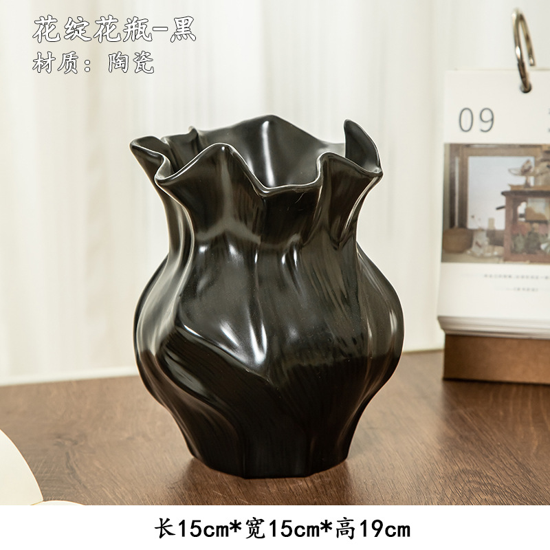 현대식 선풍기 세라믹 꽃병 꽃꽂이 라이트 럭셔리 고급스러운 와비사비 스타일 현관 거실 TV장식장 장식품