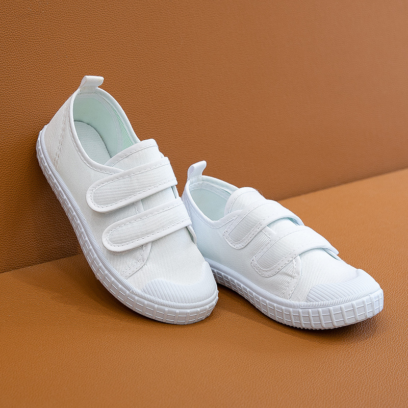 어린이 작은 흰색 신발 도매 소년 캔버스 신발 소녀 흰 천 신발 유치원 흰색 실내 신발 학생 흰색 운동화