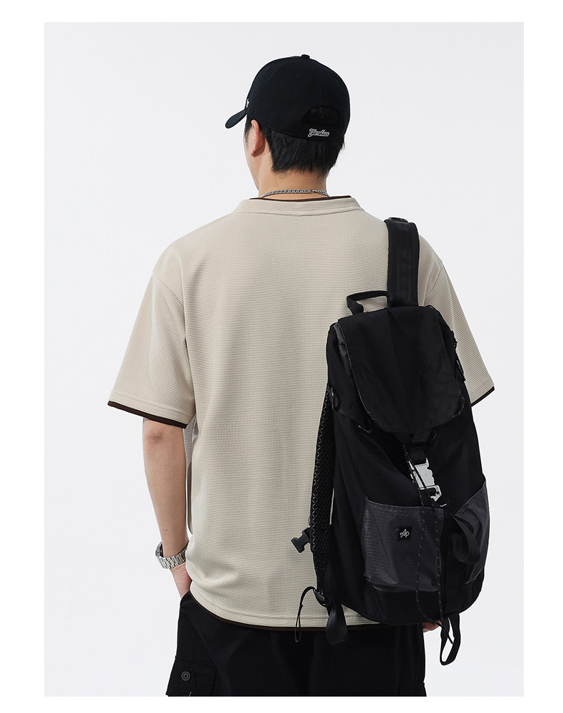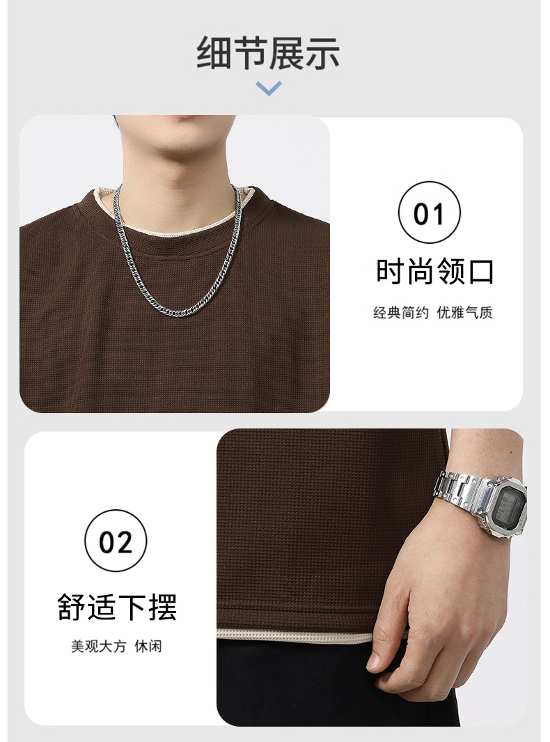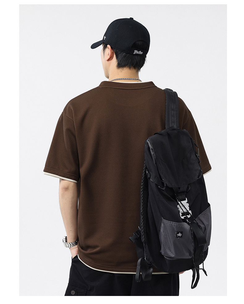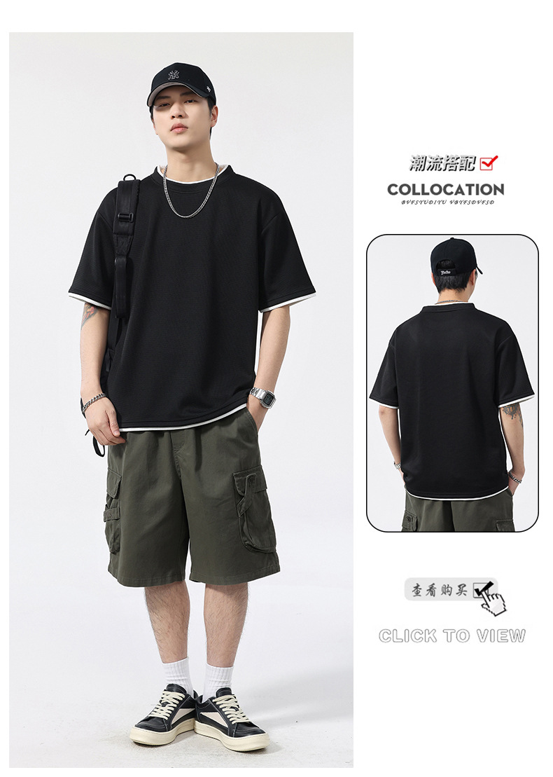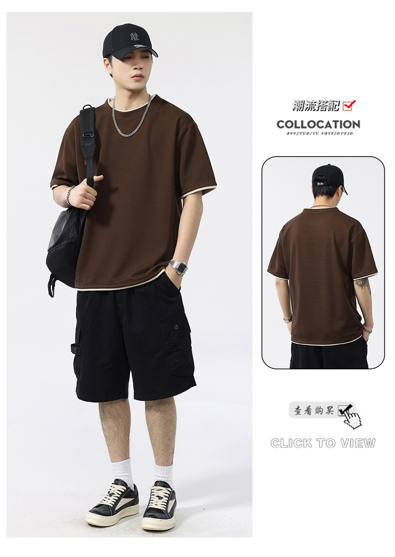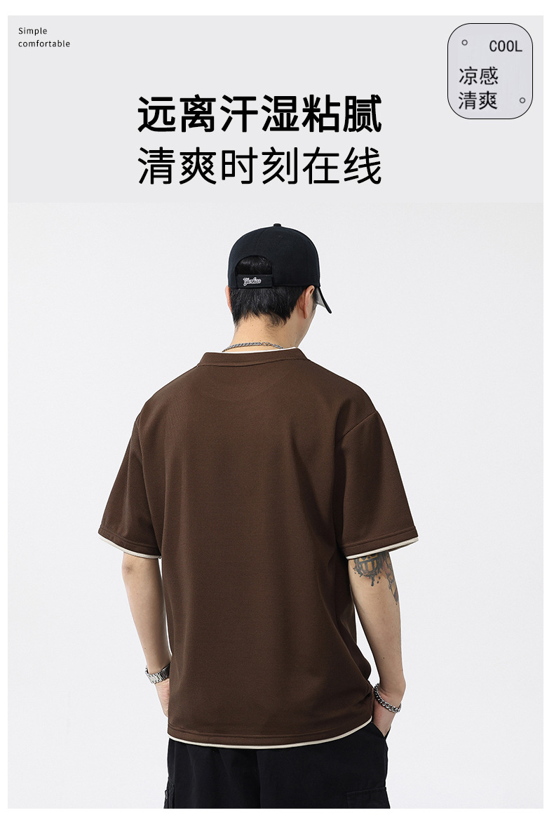 쿨코튼 아메리칸 스타일 와플 러 스타일 여름 반팔 남성 티셔츠 일본식 가짜 투피스 반소매 한국식 캐주얼 루즈 티셔츠