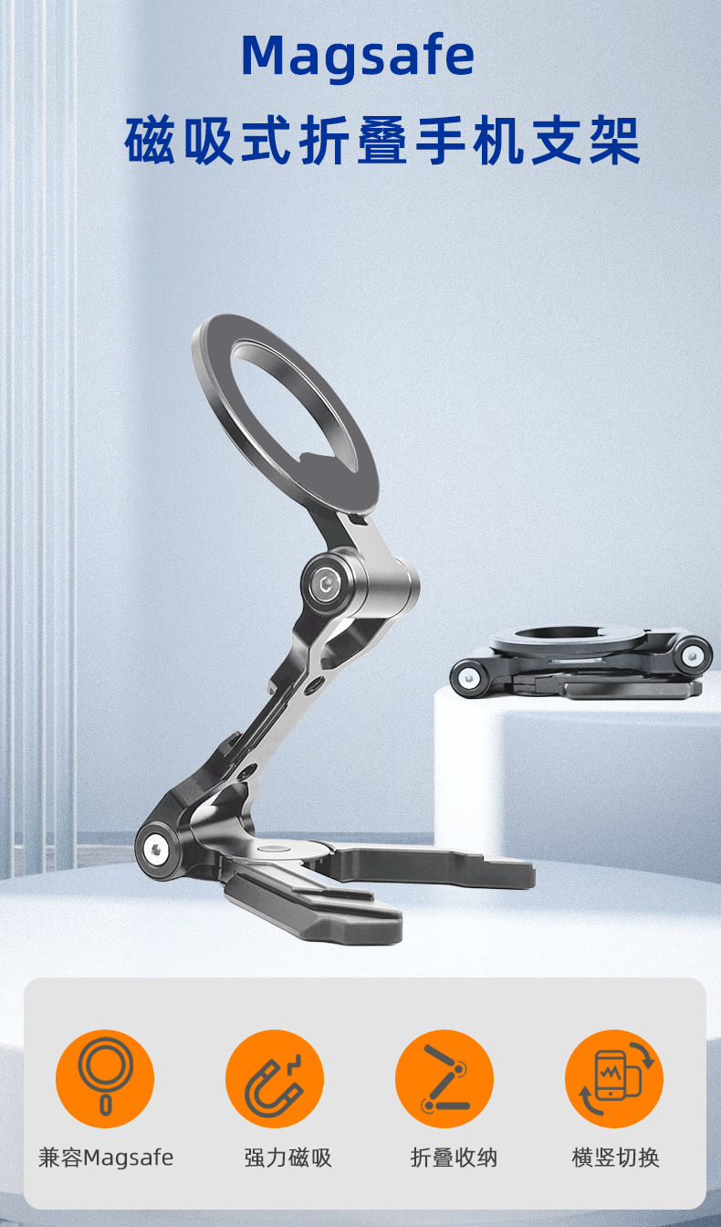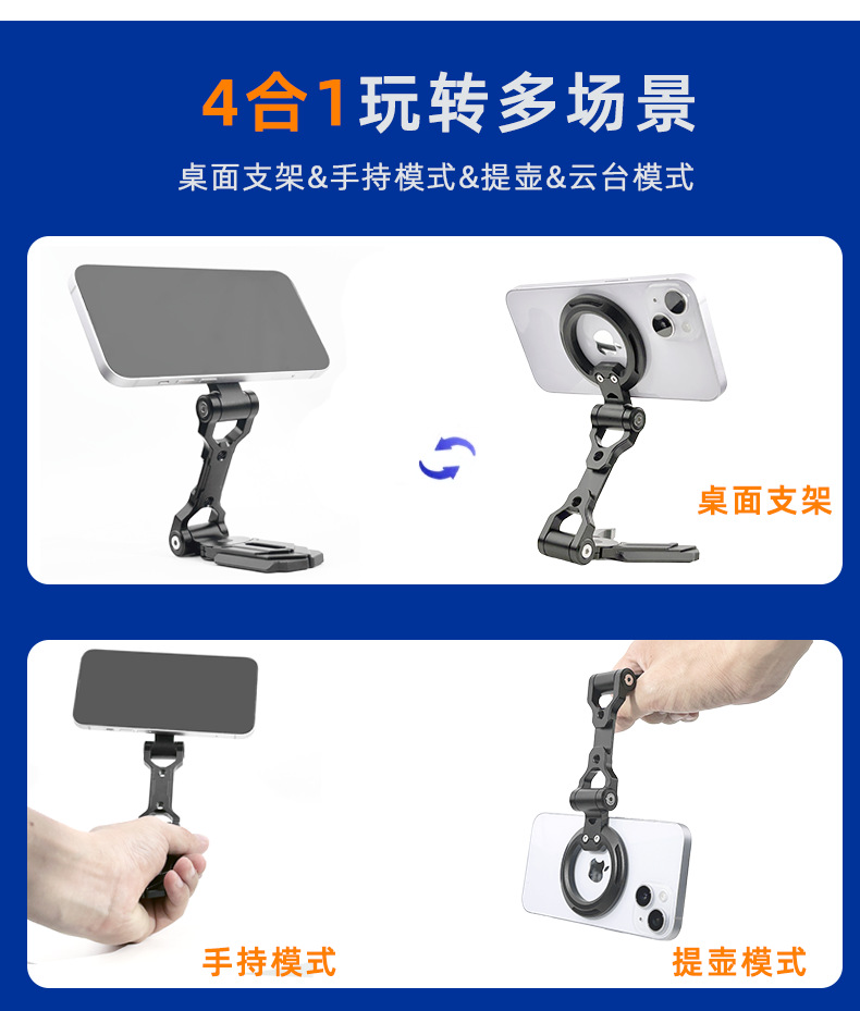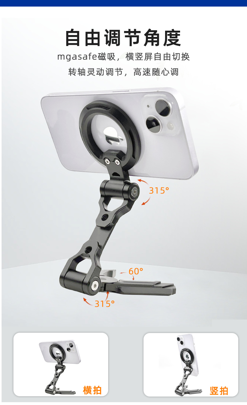 마그세이프 강력 자석 금속 휴대폰 데스크탑 거치대 휴대용 카메라 아카 베이스 삼각대 접이식