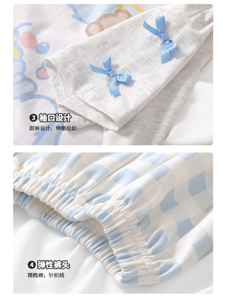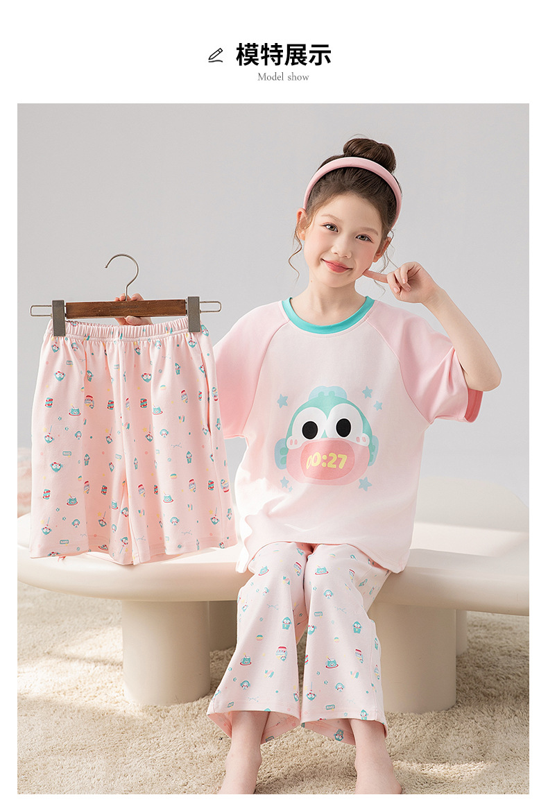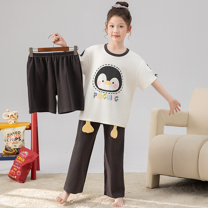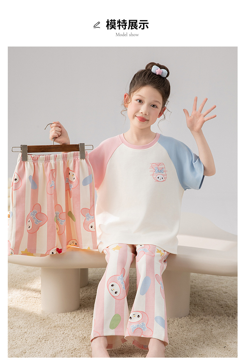 여름 여름 얇은 면화 반팔 바지 어린이 만화 소녀 봄과 가을 가정 의류를위한 새로운 3 피스 잠옷