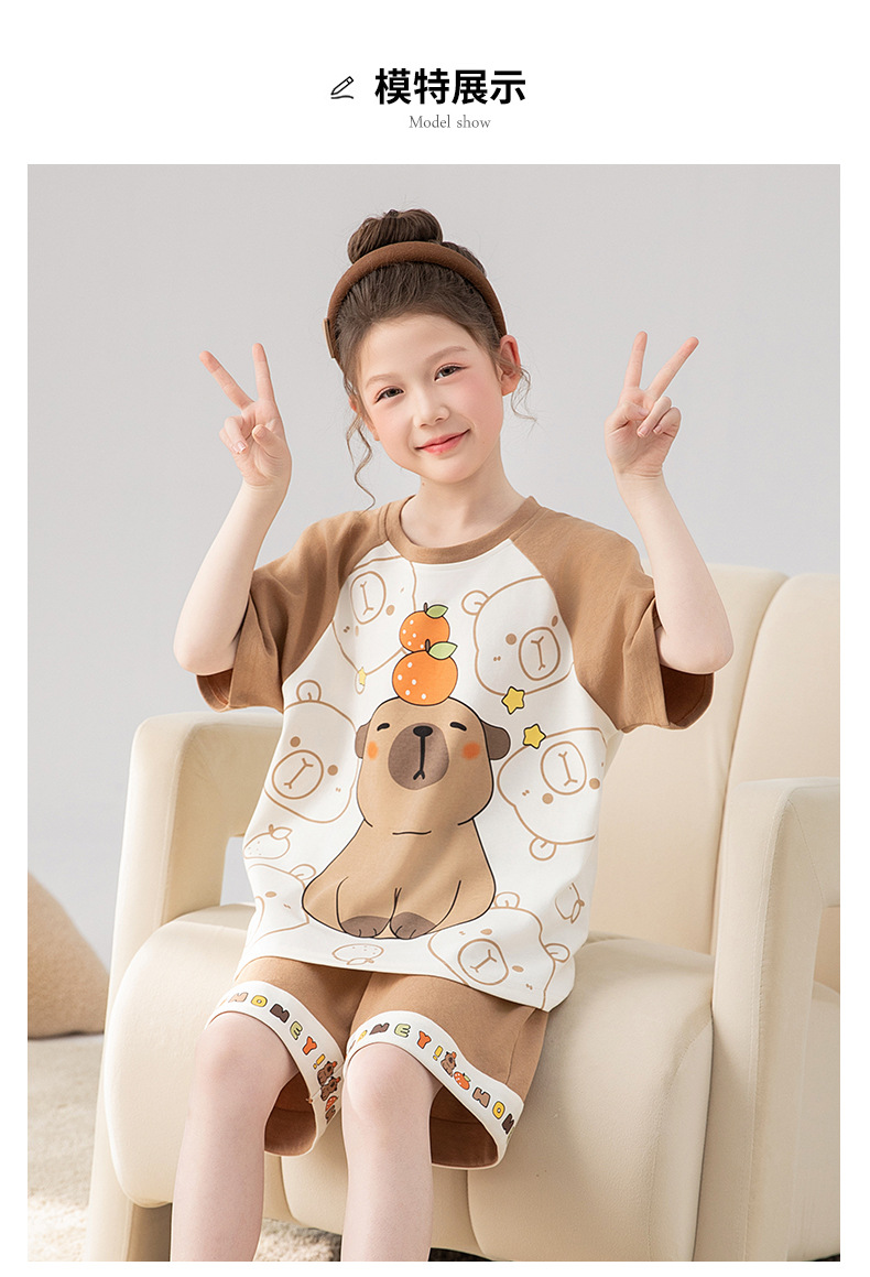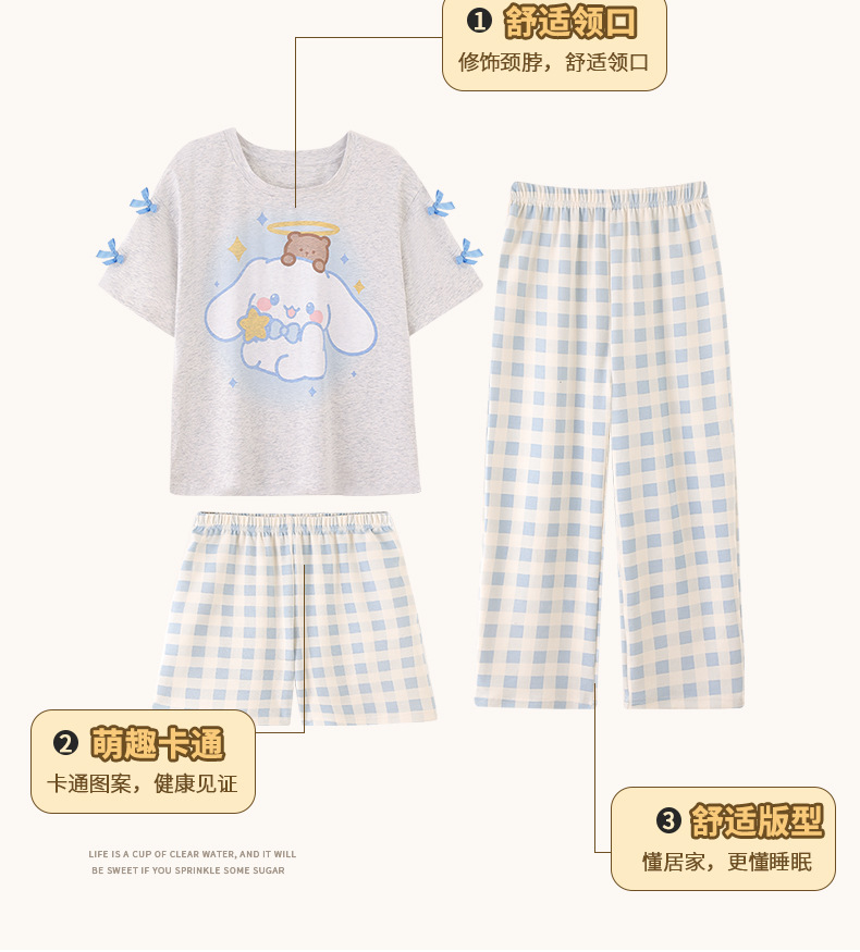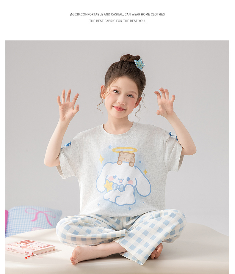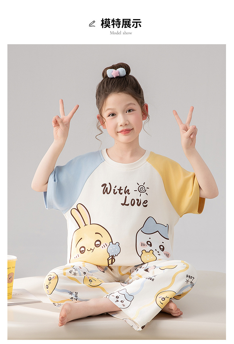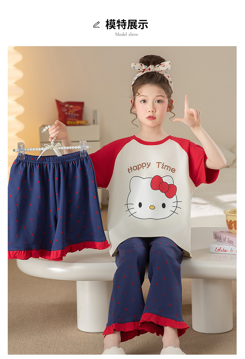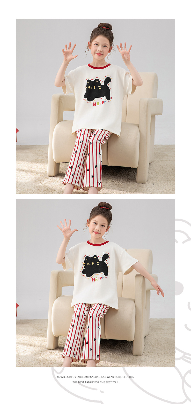 여름 여름 얇은 면화 반팔 바지 어린이 만화 소녀 봄과 가을 가정 의류를위한 새로운 3 피스 잠옷스토어 가기