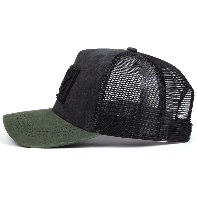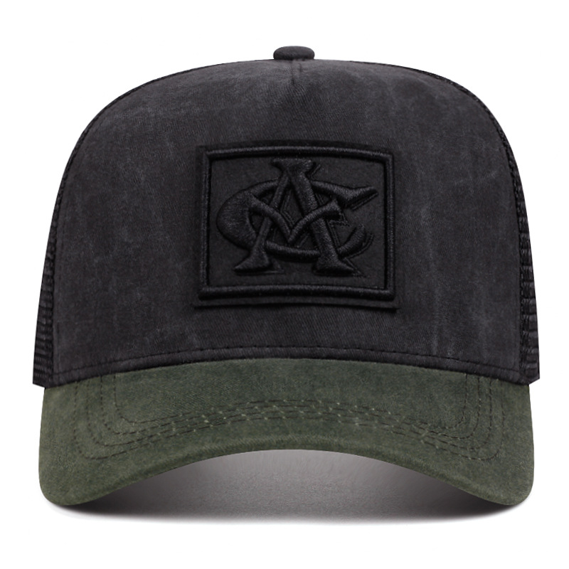 미국식 스트리트 스타일 컬러블록 메쉬캡, 레트로풍 고무 로고 트럭캡, 남녀 커플용 햇빛 가리개 모자, 제조사 직배송스토어 가기