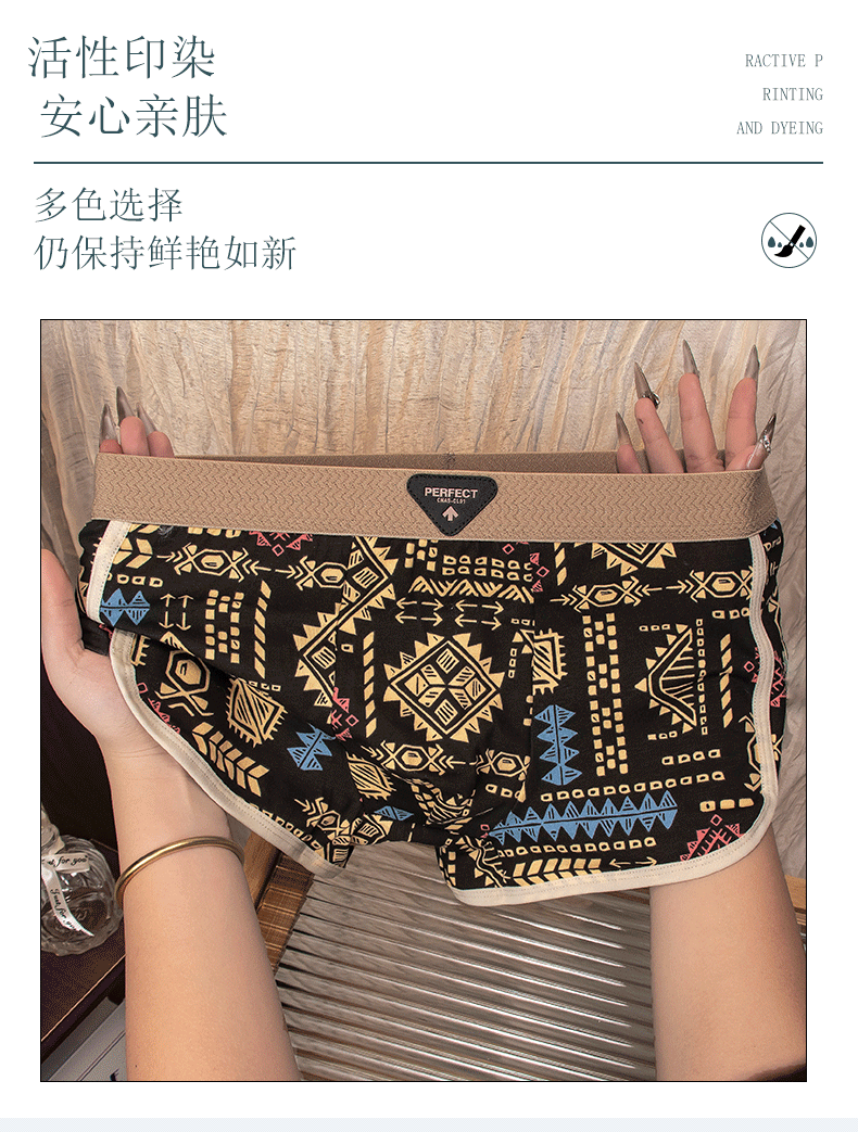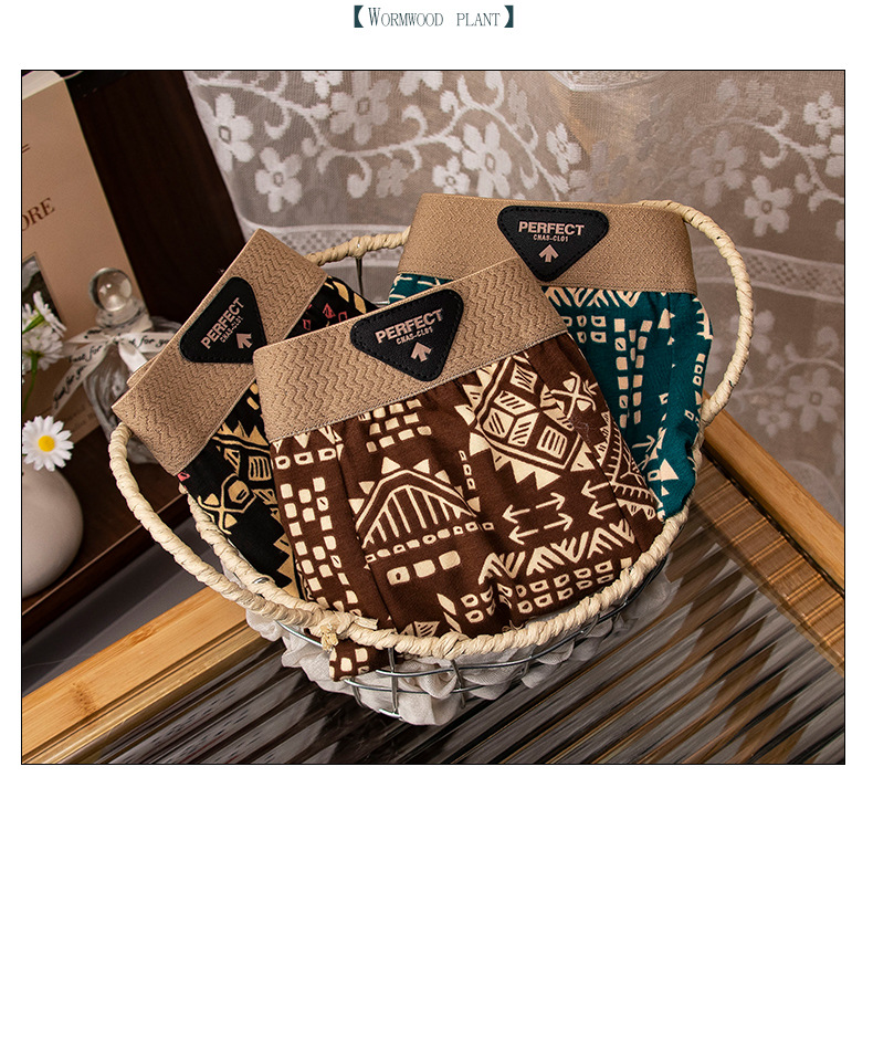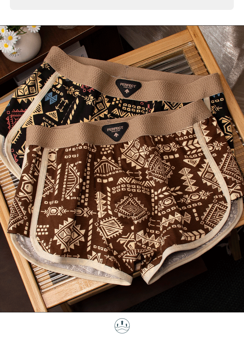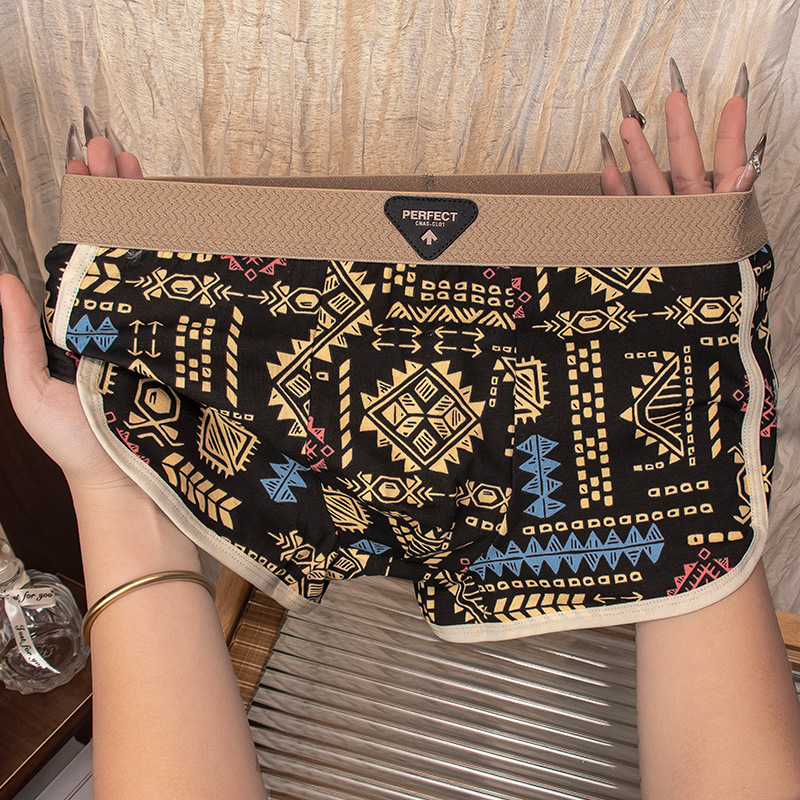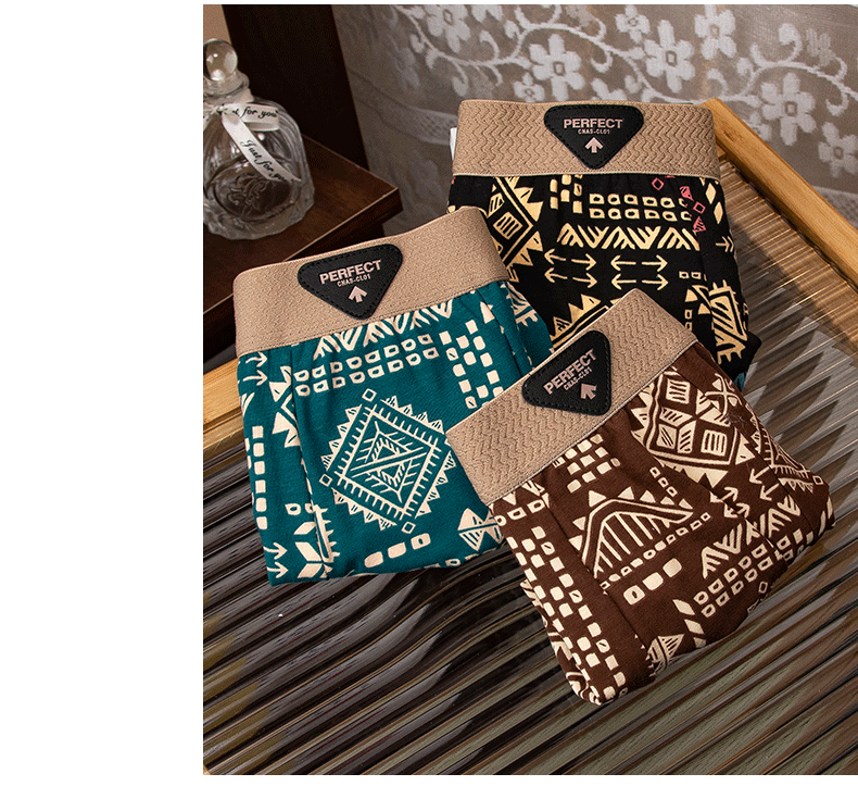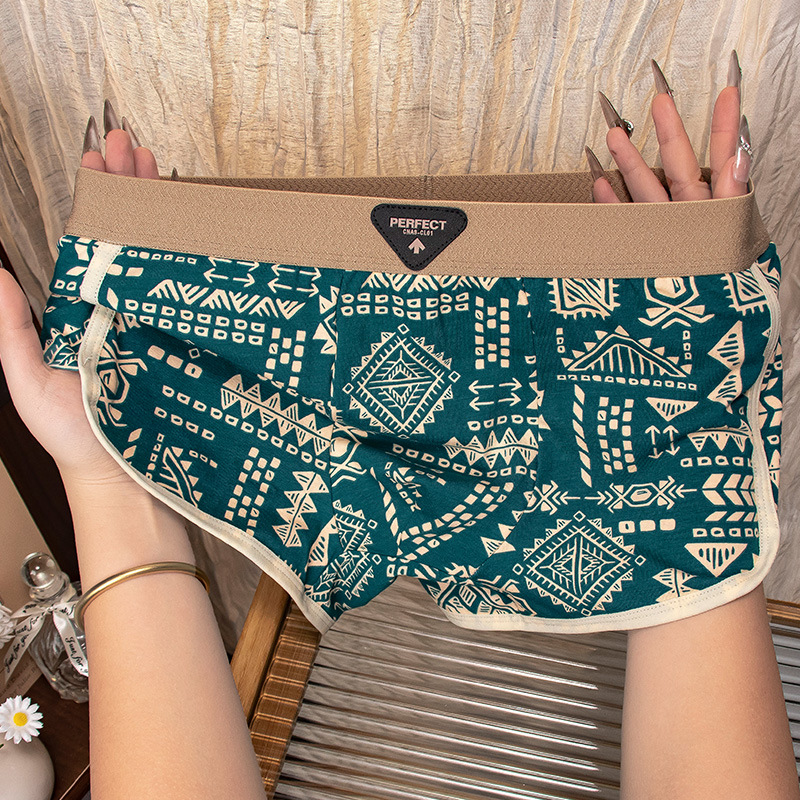 아메리칸 스타일 레트로 민족 스타일 남자 속옷 아마야 코튼 통기성 스포츠 복서 바지 남자 복서 바지