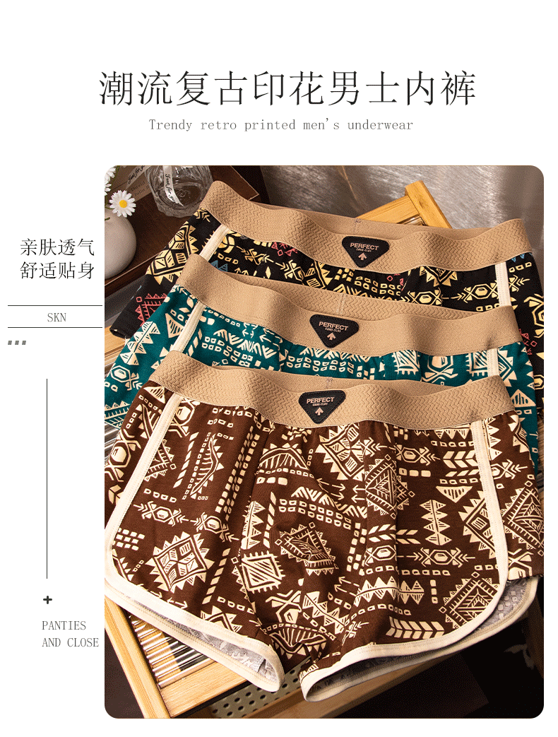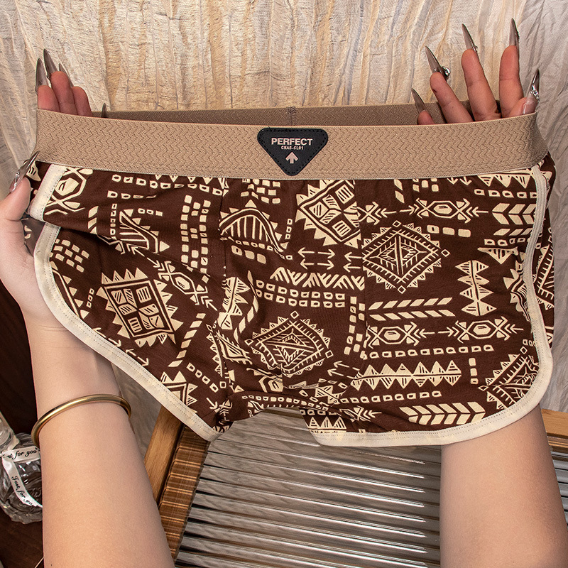 아메리칸 스타일 레트로 민족 스타일 남자 속옷 아마야 코튼 통기성 스포츠 복서 바지 남자 복서 바지스토어 가기