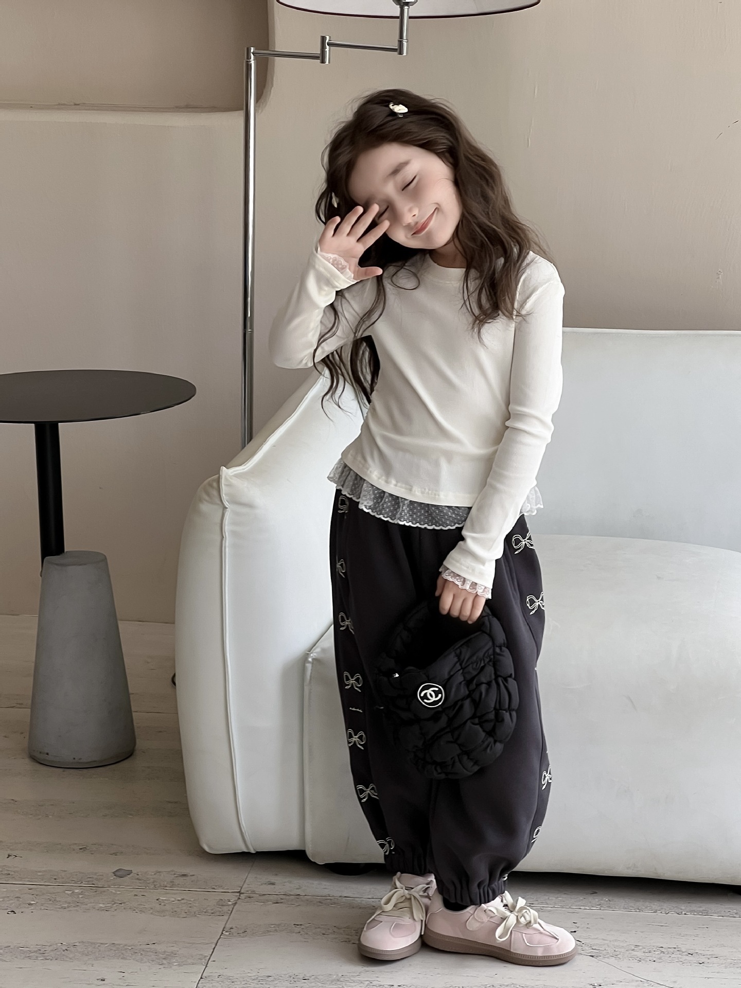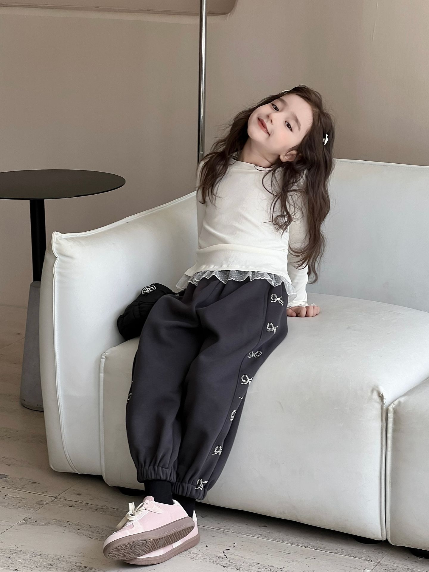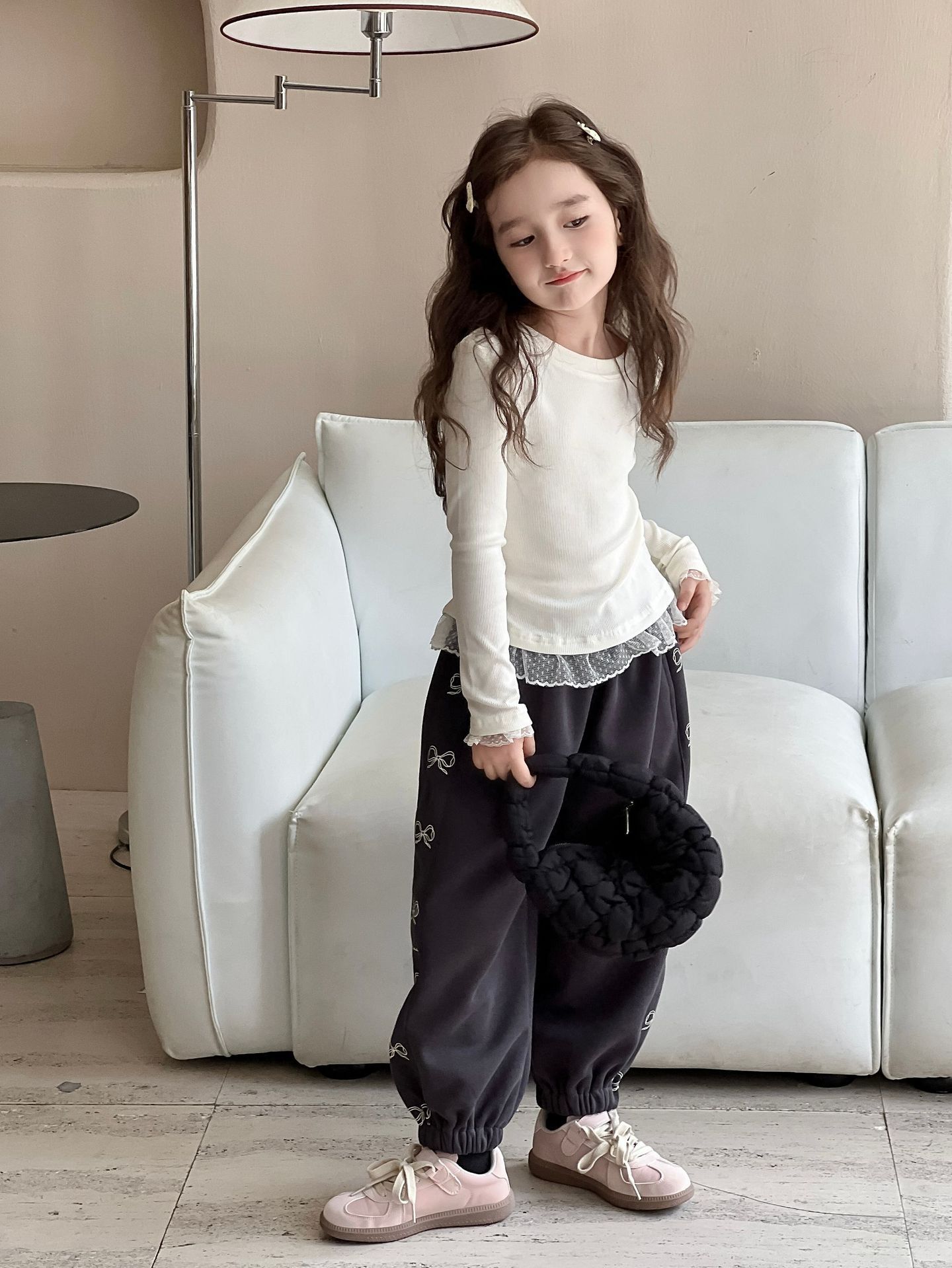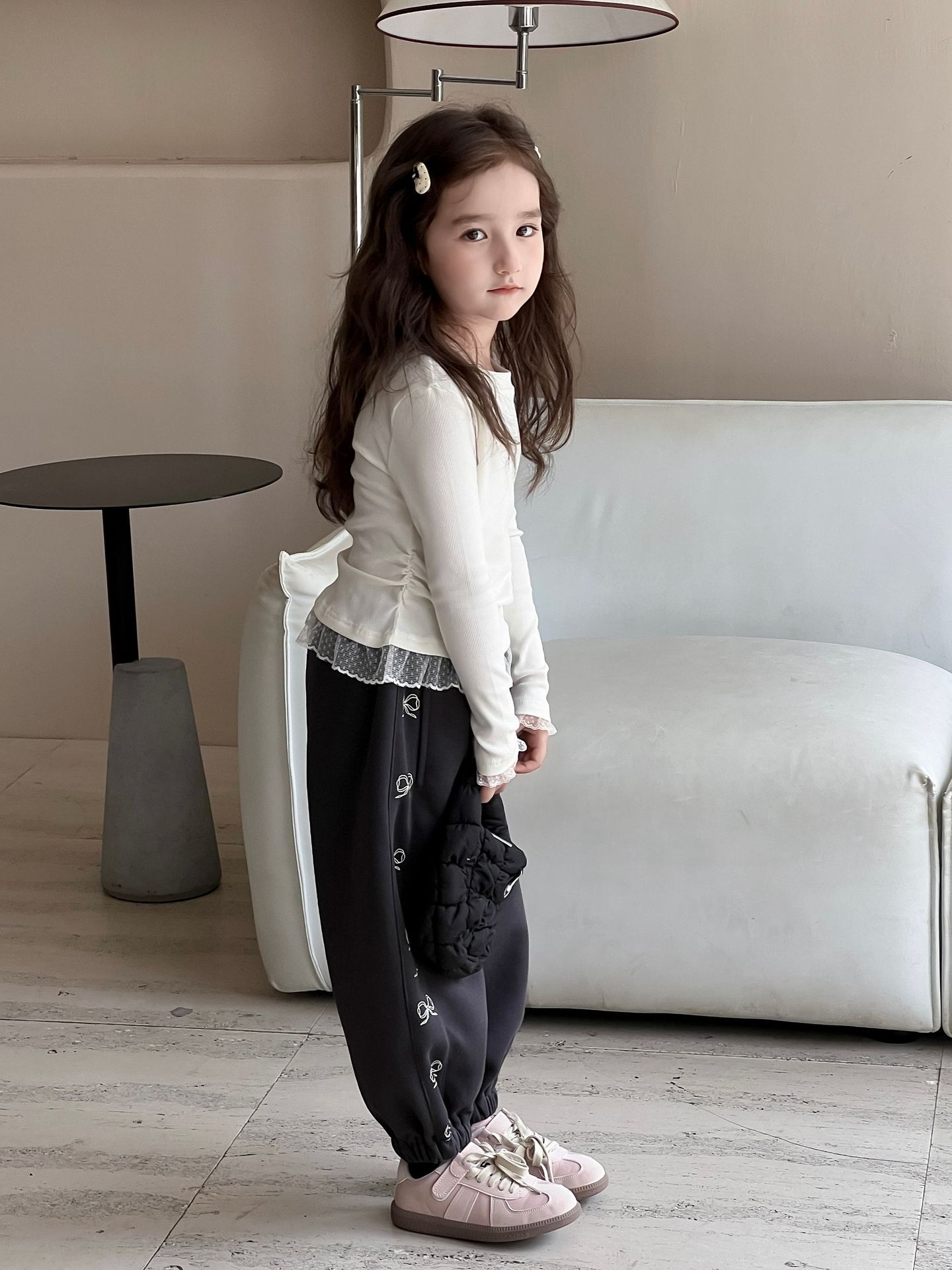 여아용 베이스 레이어 셔츠 2026 봄/가을 여아용 레이스 패치워크 긴팔 티셔츠 화이트 이너탑스토어 가기