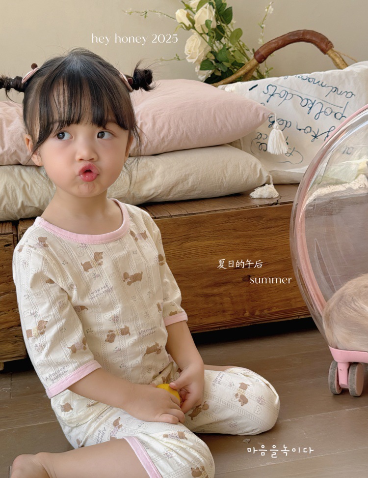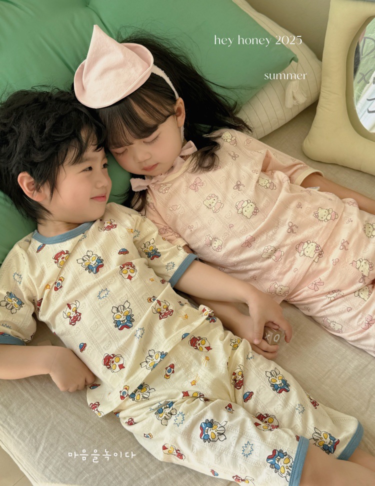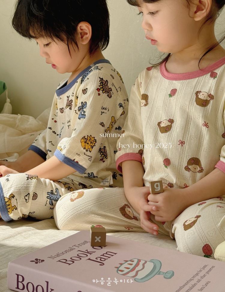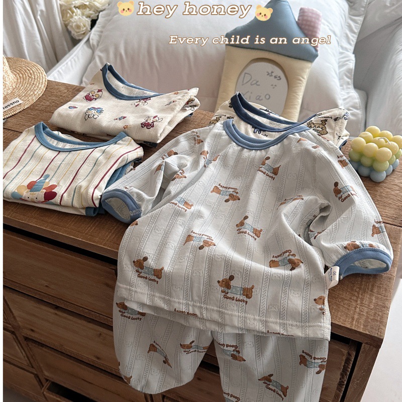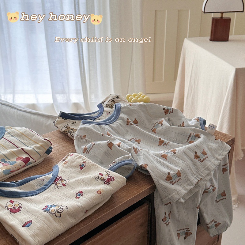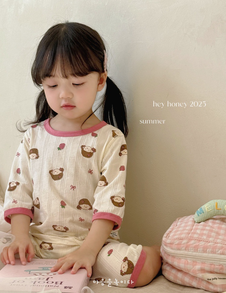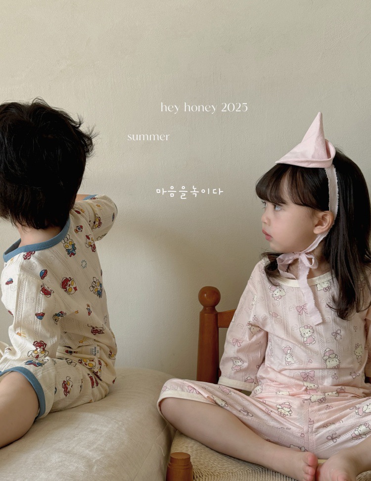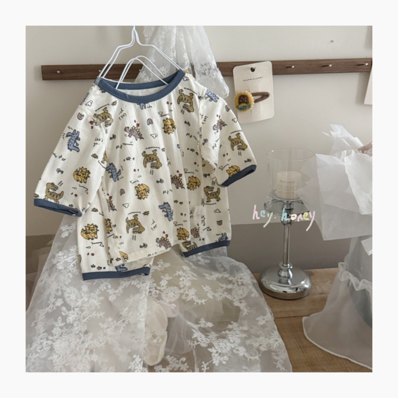 사이즈 롤 HeyHoney 어린이 25 여름 반소매 호흡 구멍 만화 자카드 투피스 세트 홈 의류 잠옷스토어 가기
