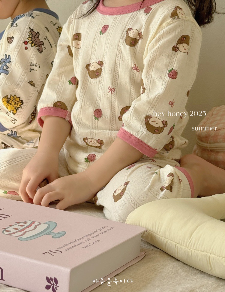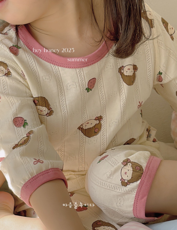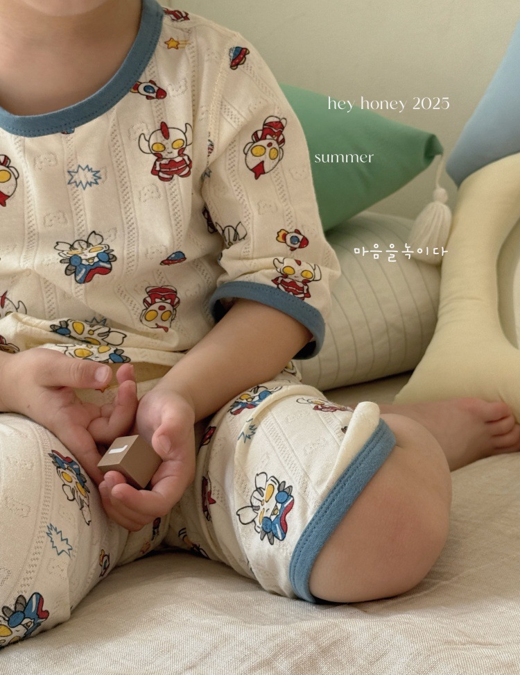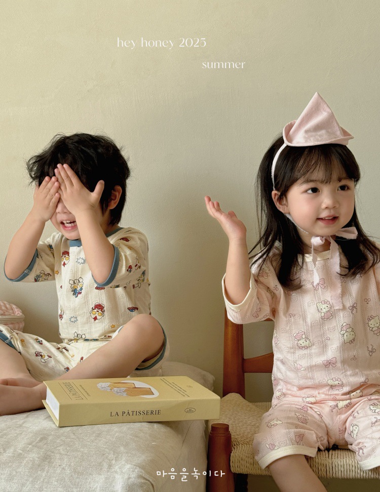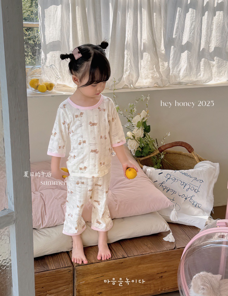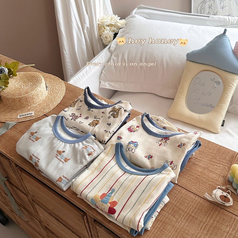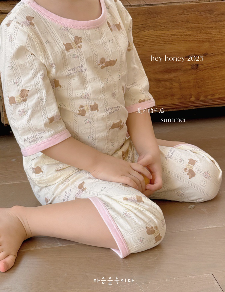 사이즈 롤 HeyHoney 어린이 25 여름 반소매 호흡 구멍 만화 자카드 투피스 세트 홈 의류 잠옷스토어 가기