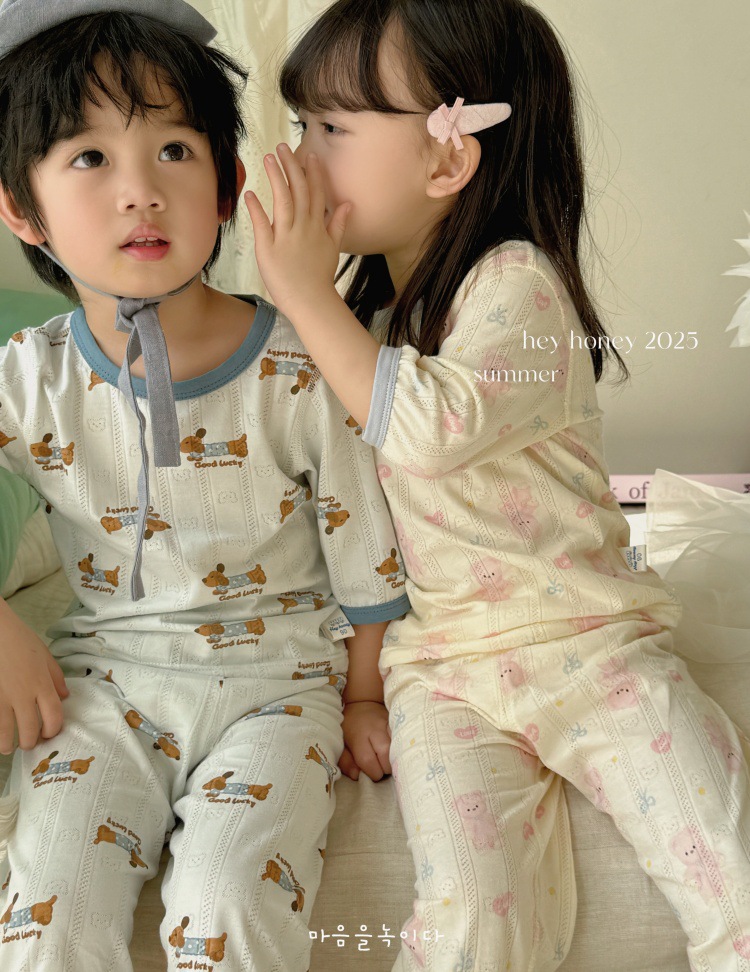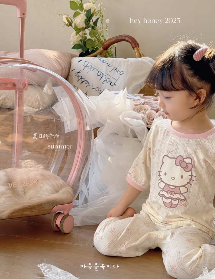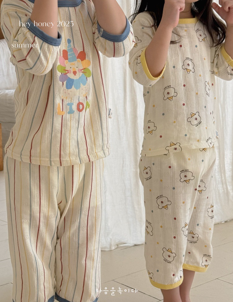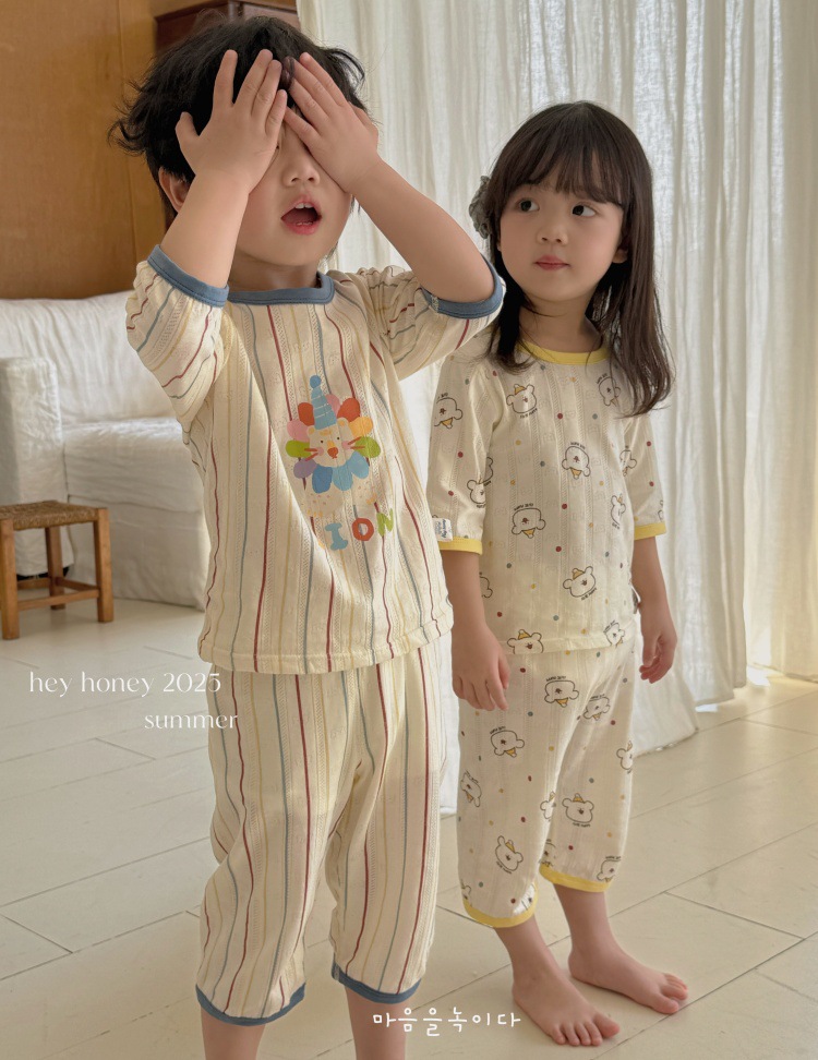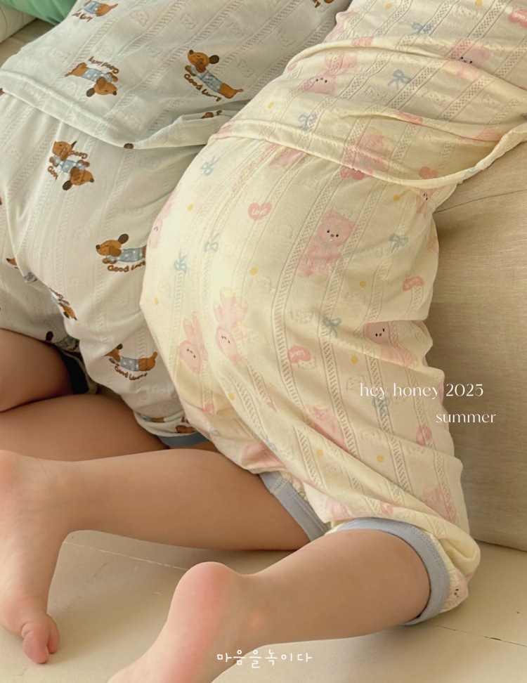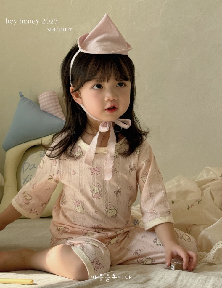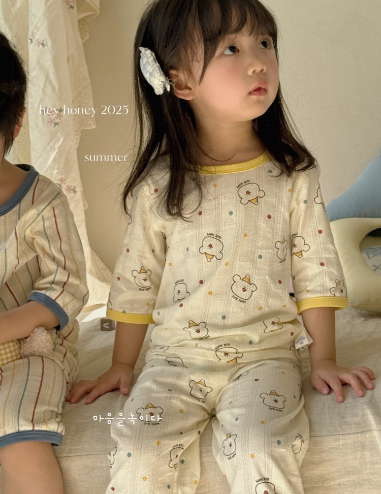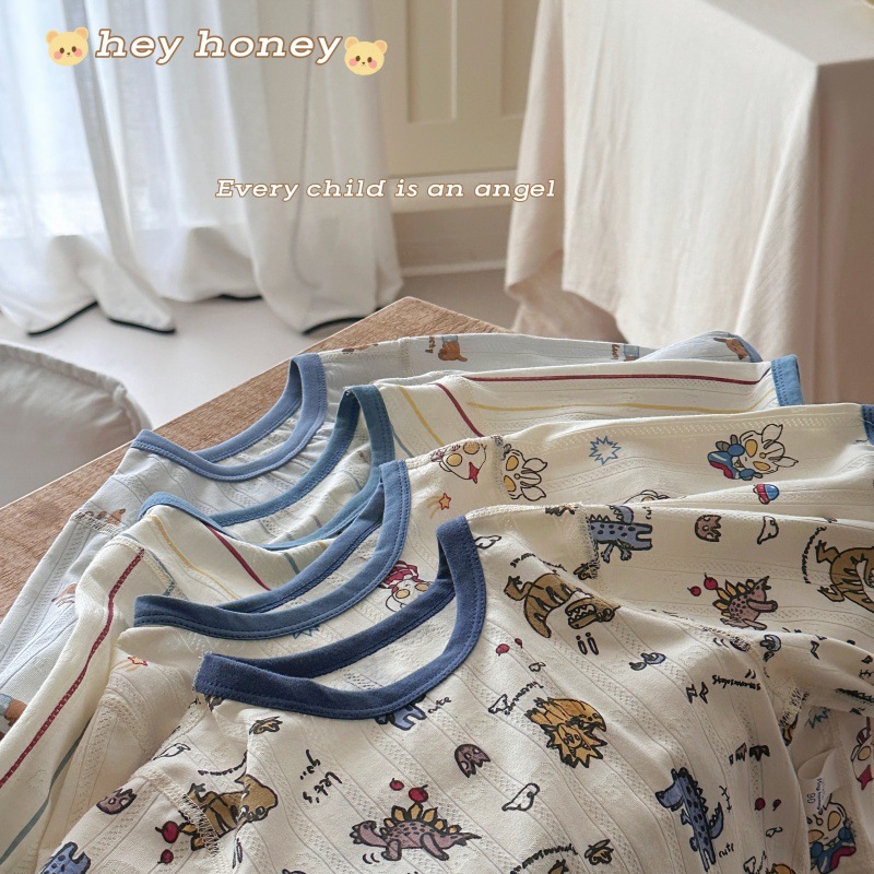 사이즈 롤 HeyHoney 어린이 25 여름 반소매 호흡 구멍 만화 자카드 투피스 세트 홈 의류 잠옷스토어 가기