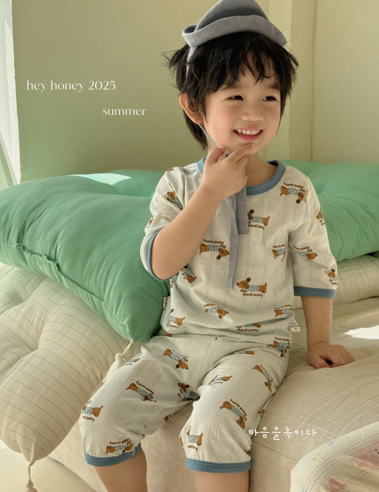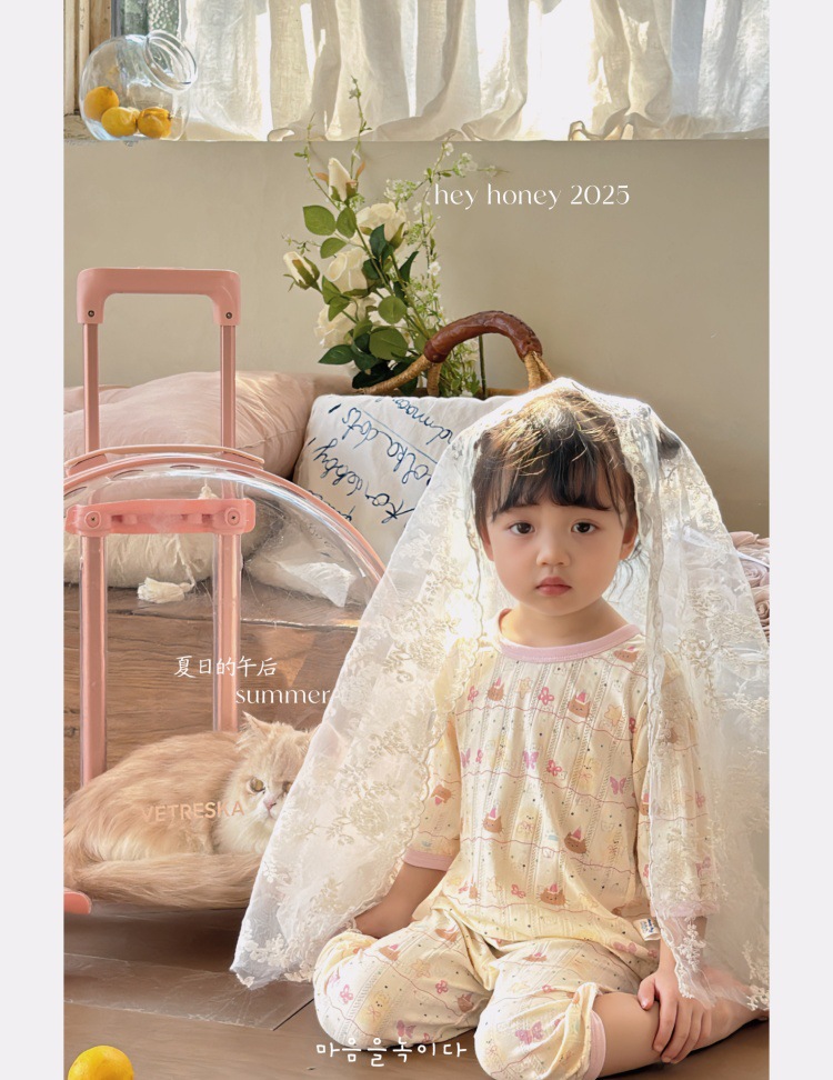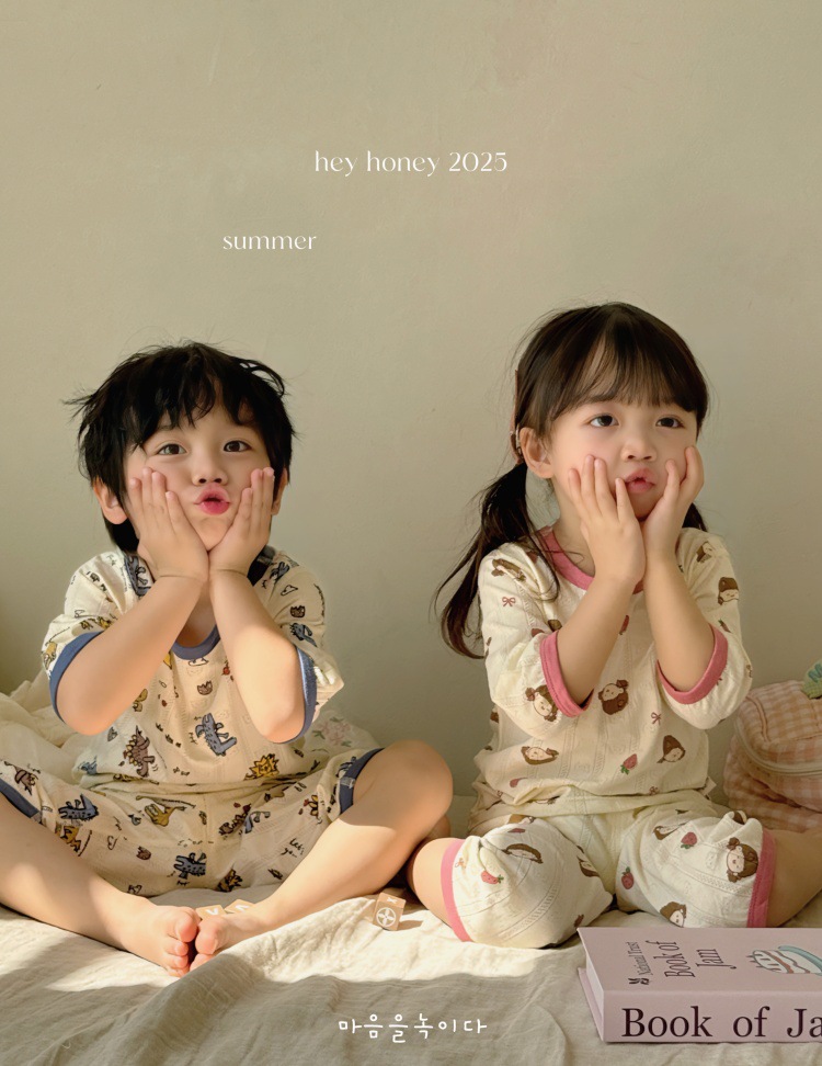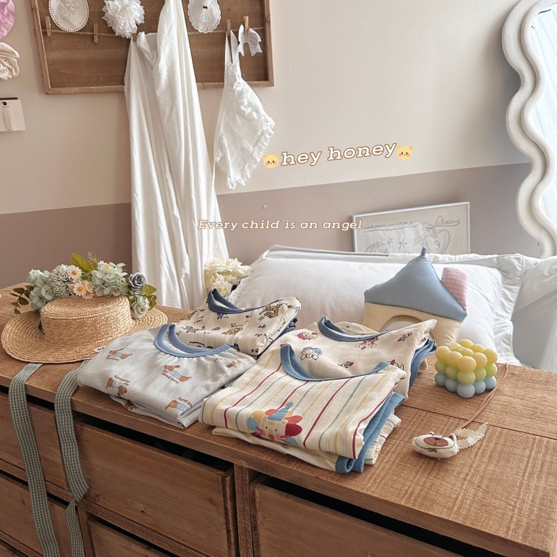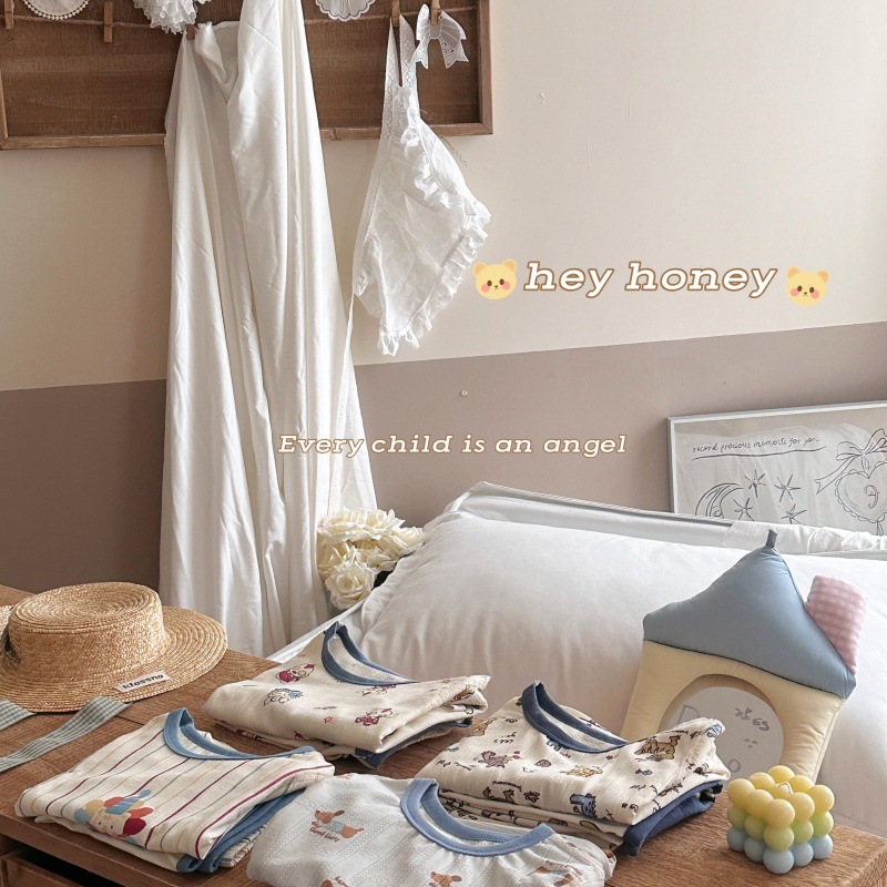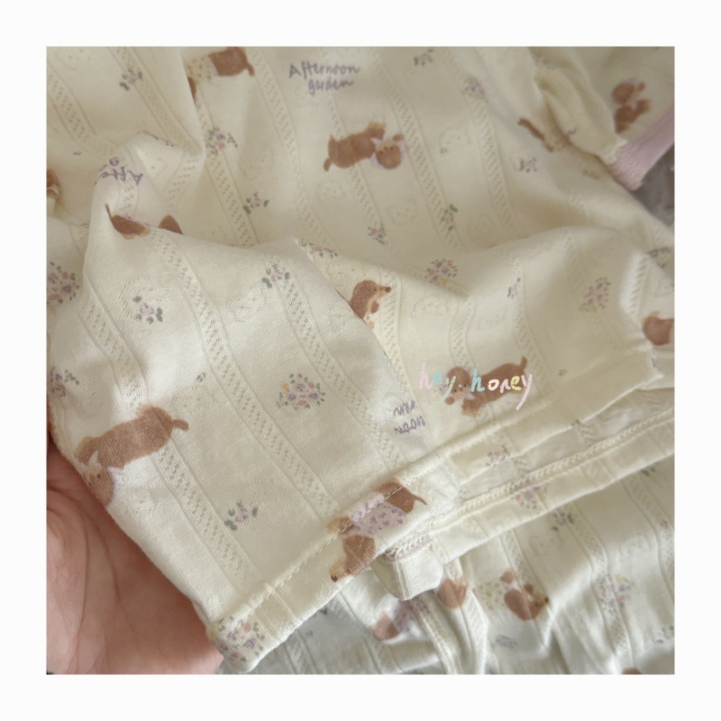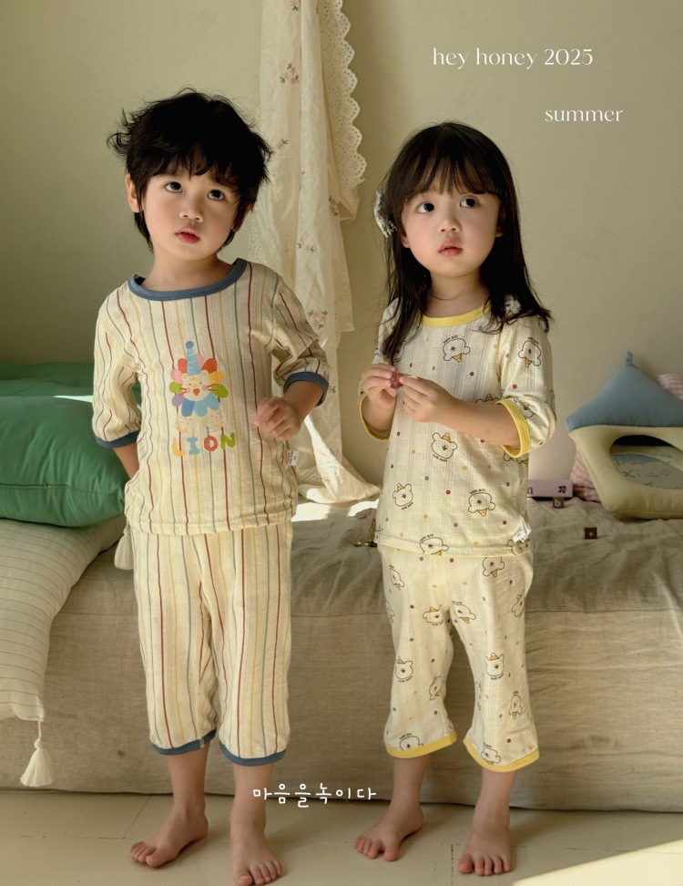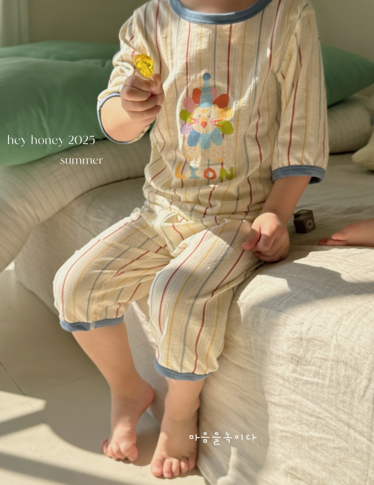 사이즈 롤 HeyHoney 어린이 25 여름 반소매 호흡 구멍 만화 자카드 투피스 세트 홈 의류 잠옷스토어 가기
