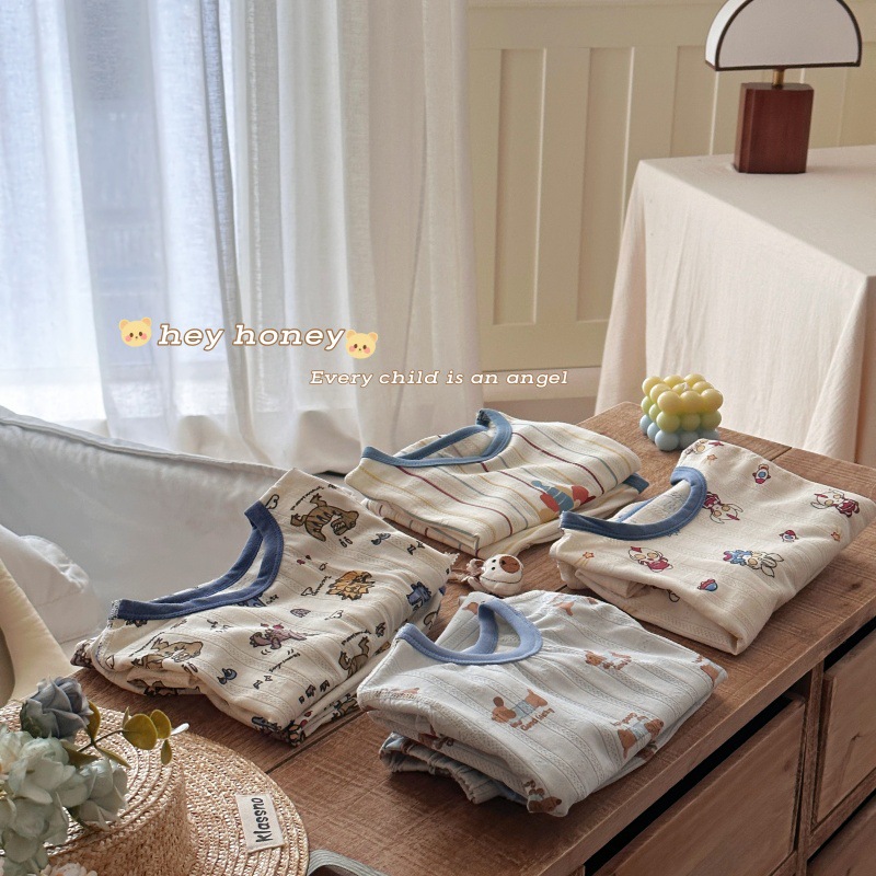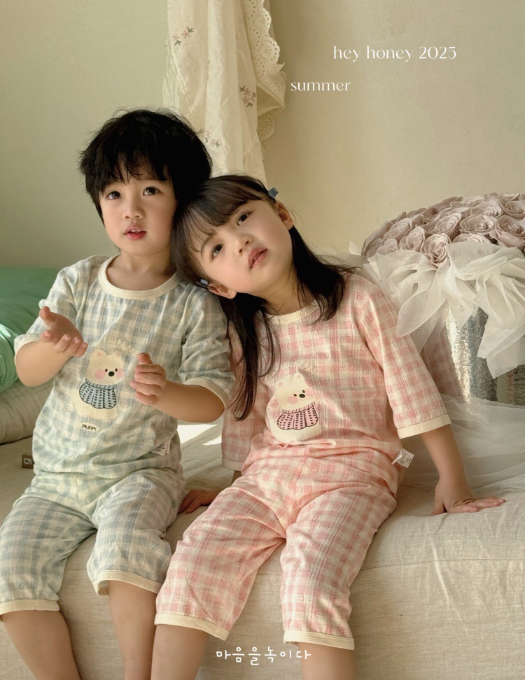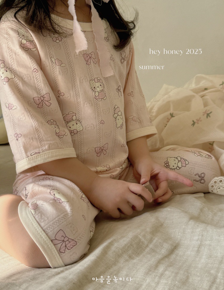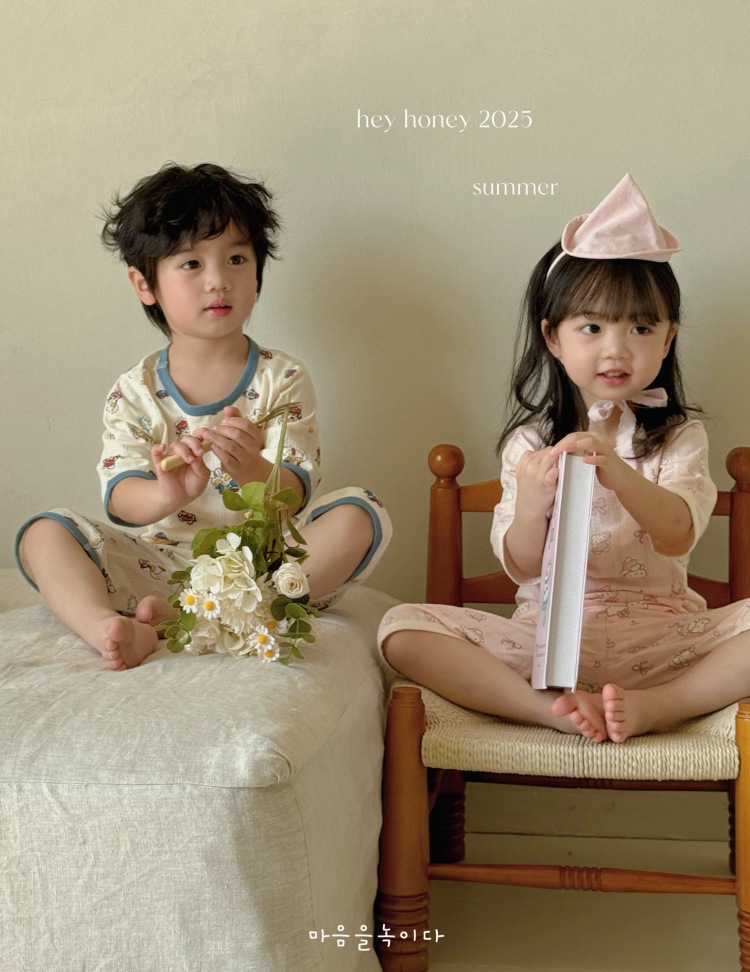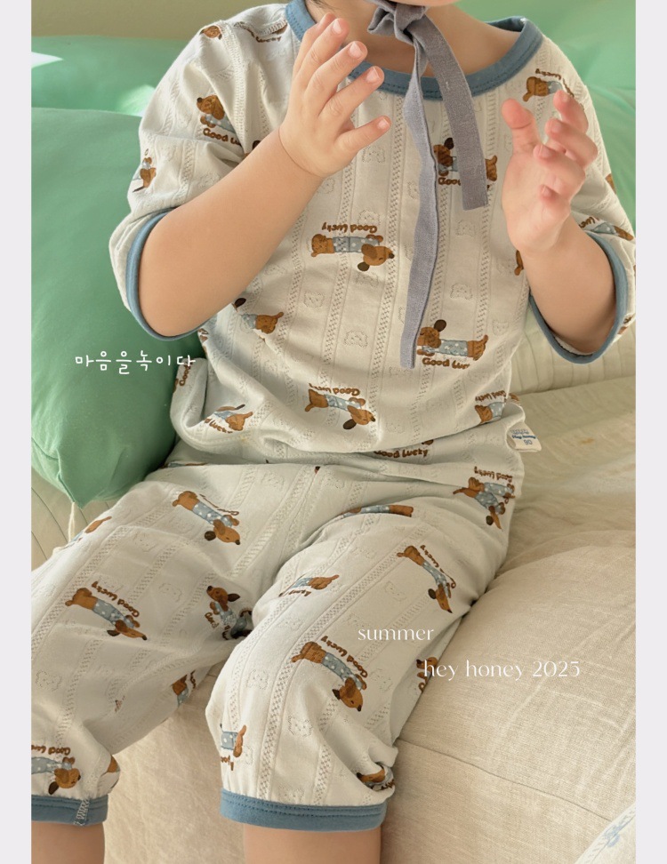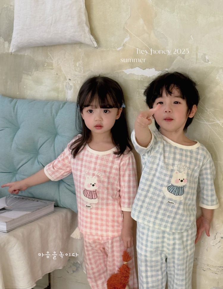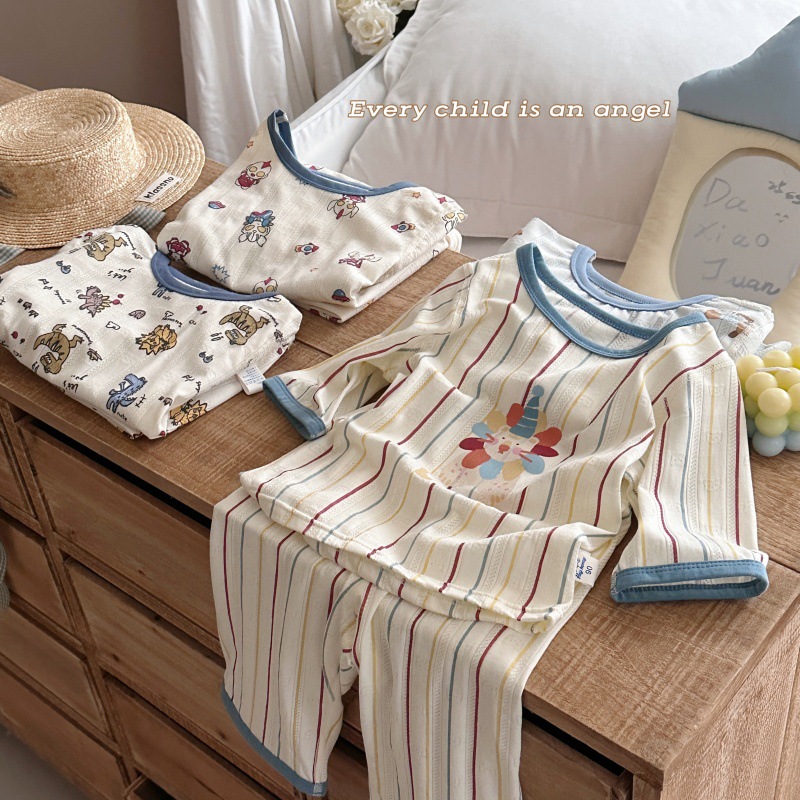 사이즈 롤 HeyHoney 어린이 25 여름 반소매 호흡 구멍 만화 자카드 투피스 세트 홈 의류 잠옷스토어 가기
