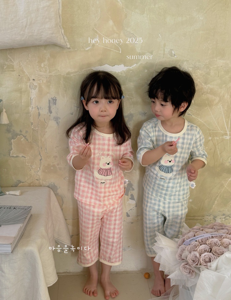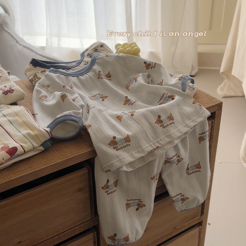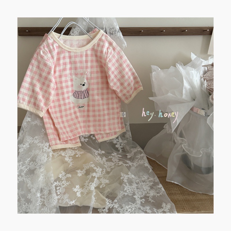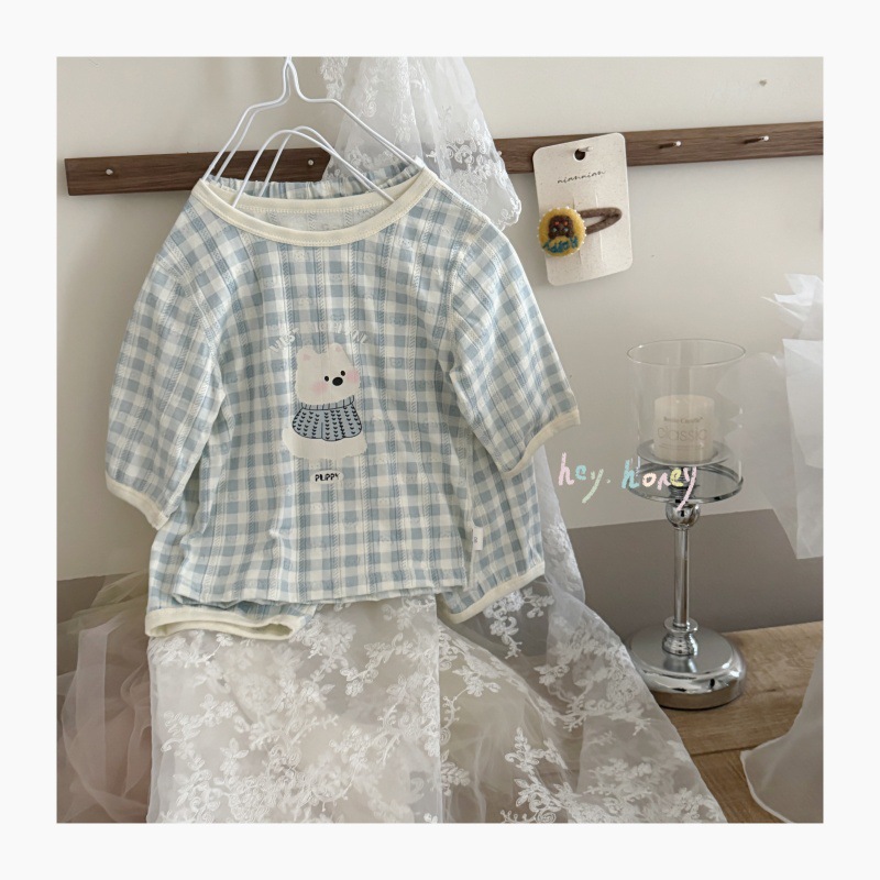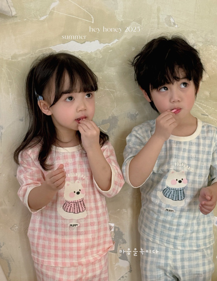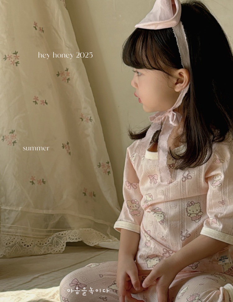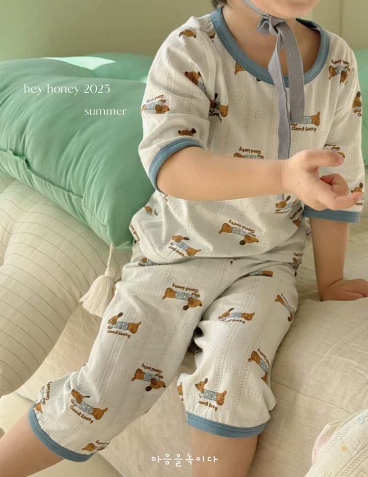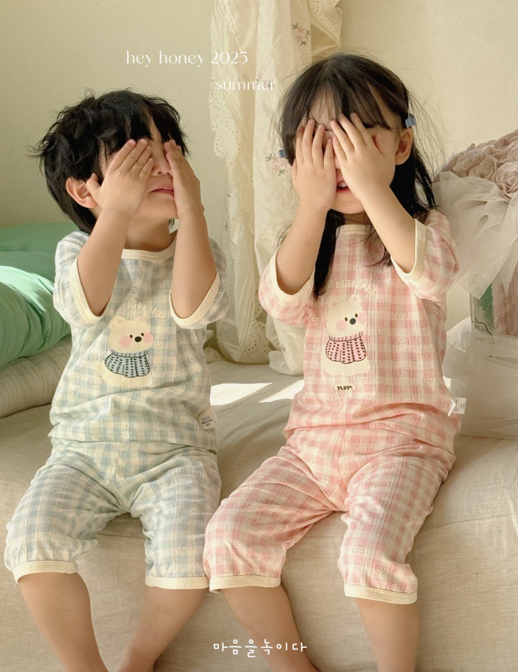 사이즈 롤 HeyHoney 어린이 25 여름 반소매 호흡 구멍 만화 자카드 투피스 세트 홈 의류 잠옷스토어 가기