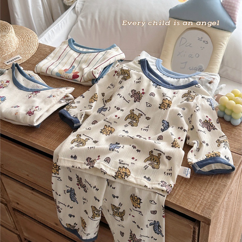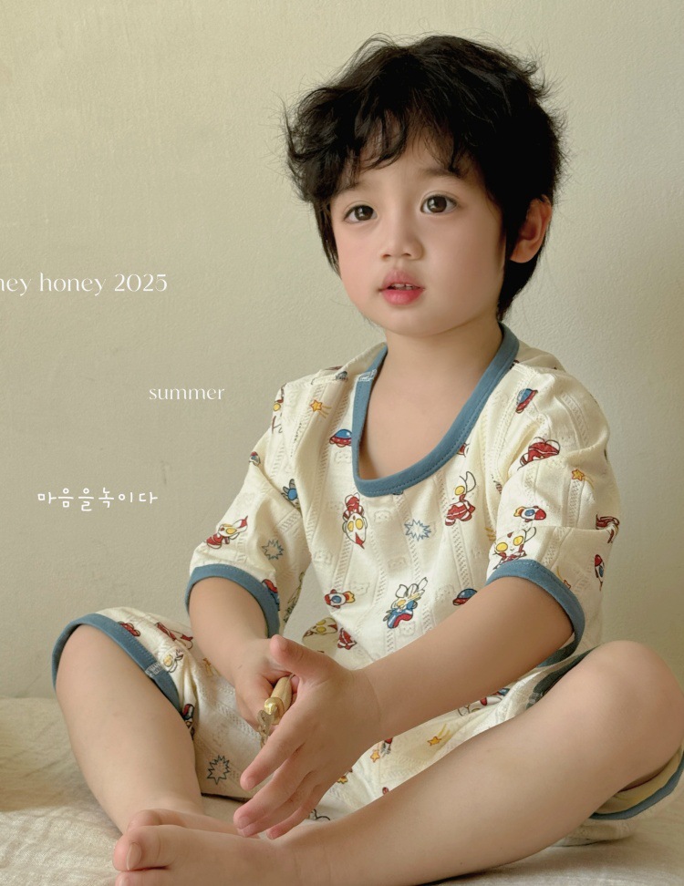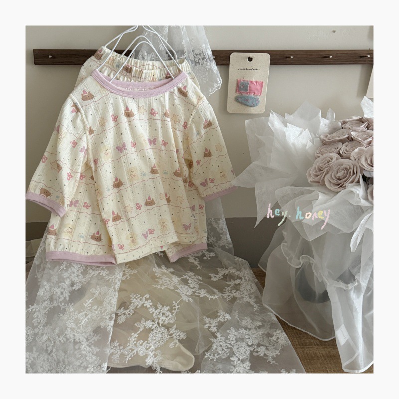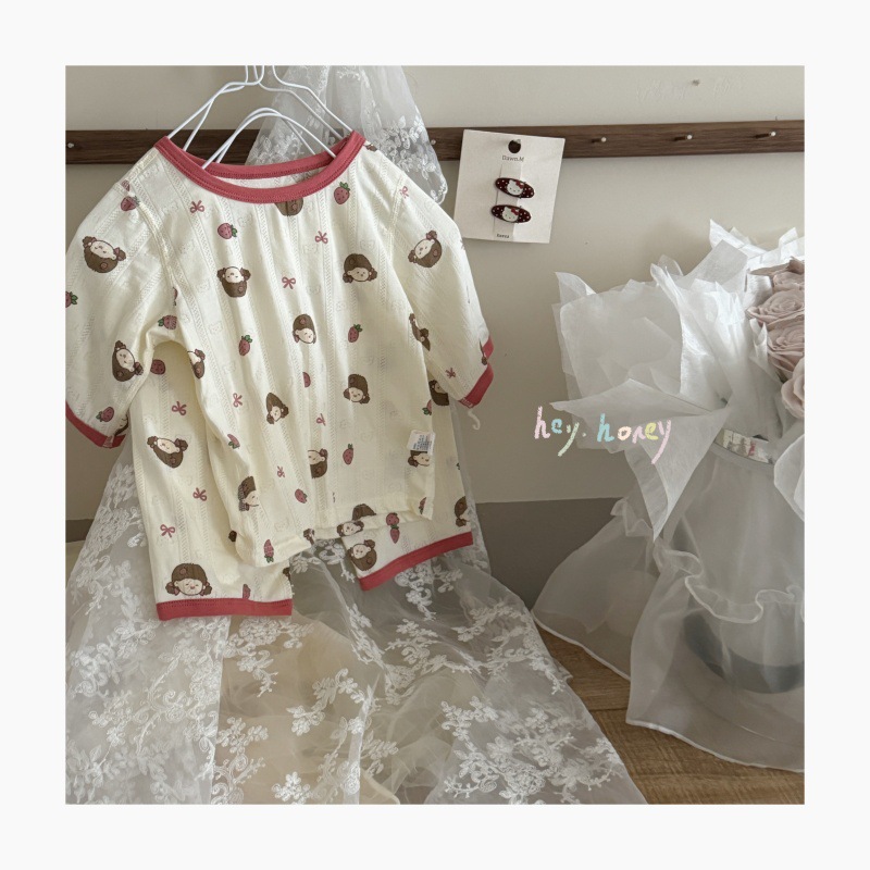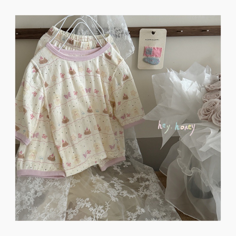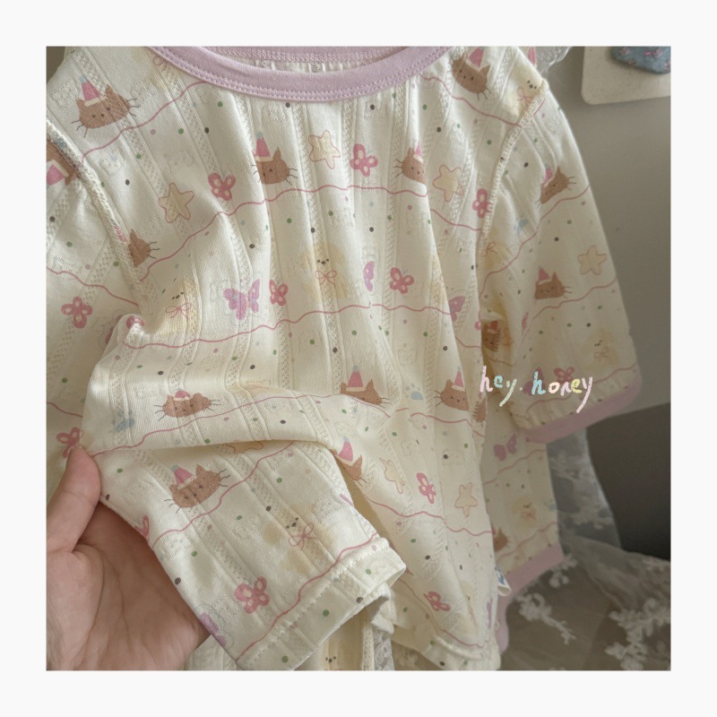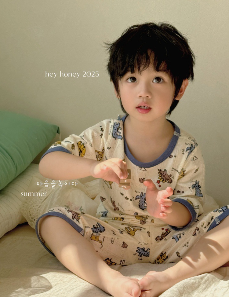 사이즈 롤 HeyHoney 어린이 25 여름 반소매 호흡 구멍 만화 자카드 투피스 세트 홈 의류 잠옷