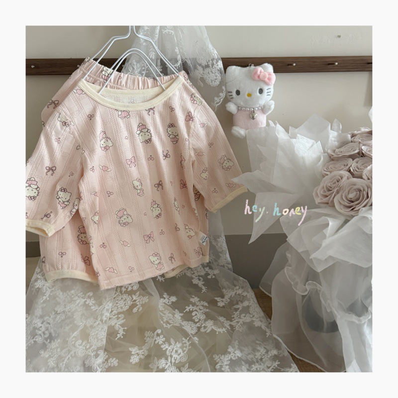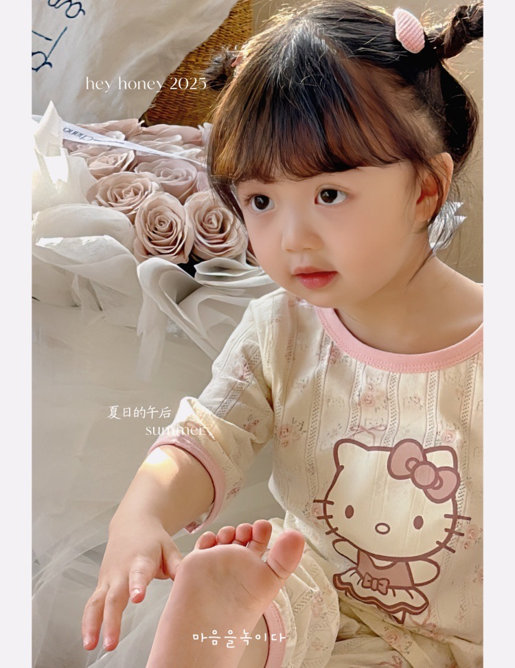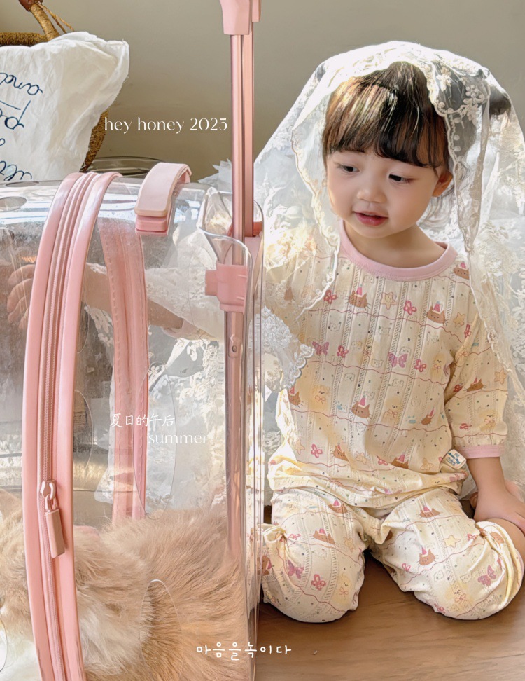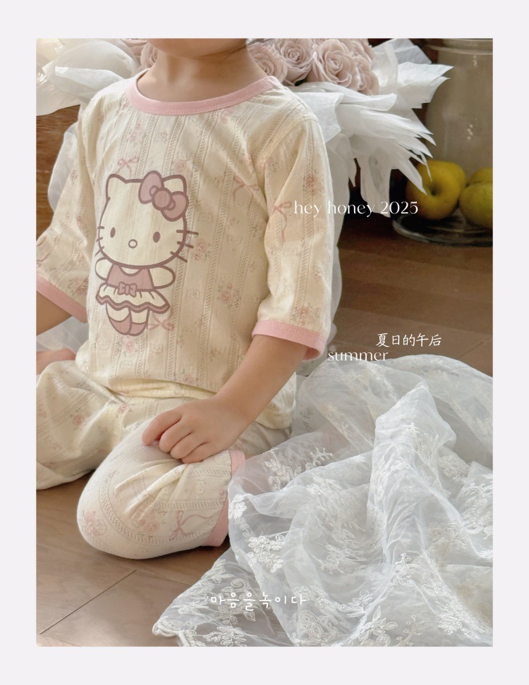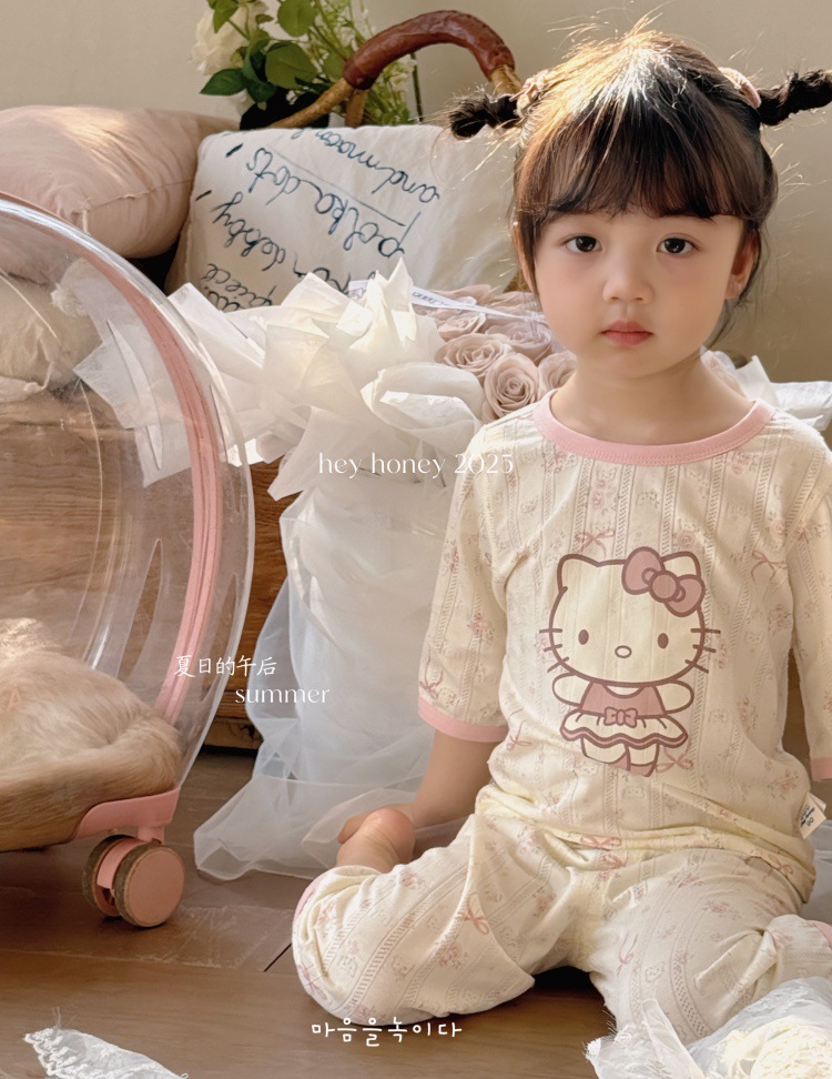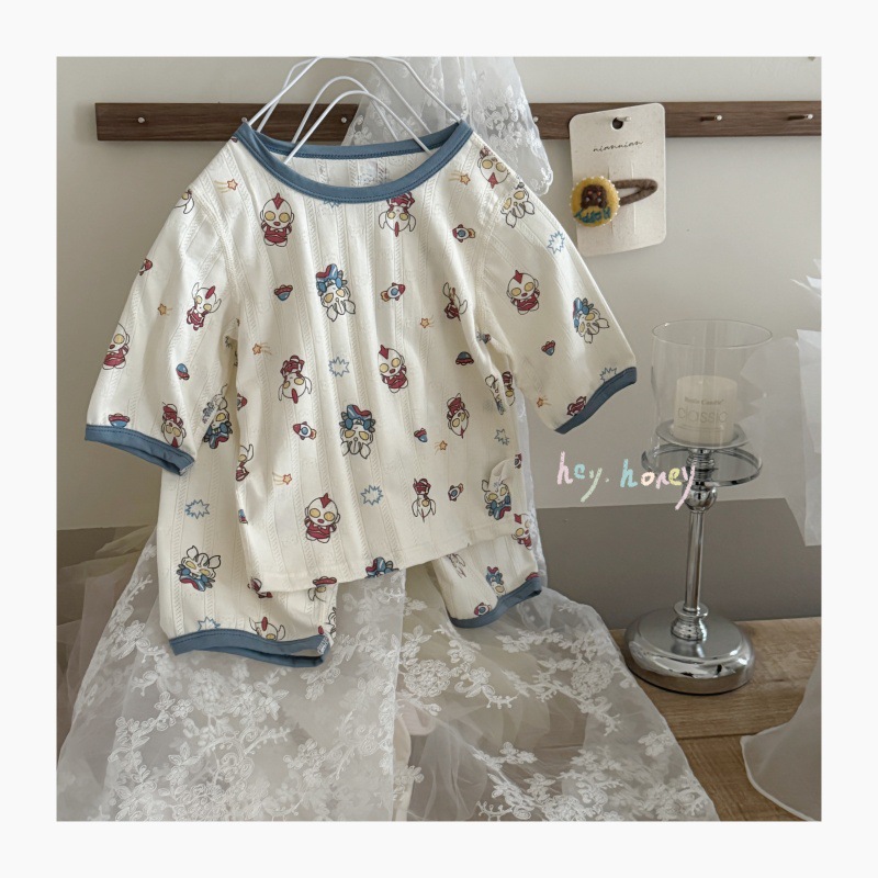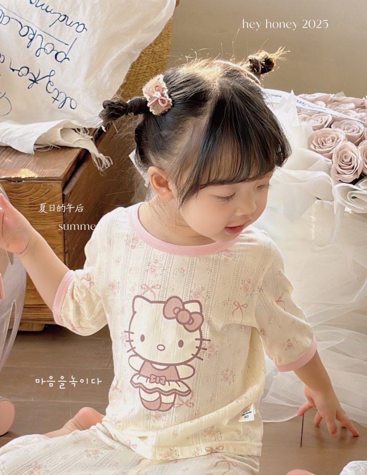 사이즈 롤 HeyHoney 어린이 25 여름 반소매 호흡 구멍 만화 자카드 투피스 세트 홈 의류 잠옷