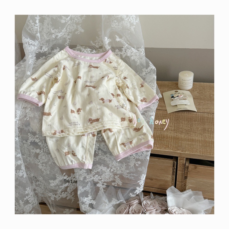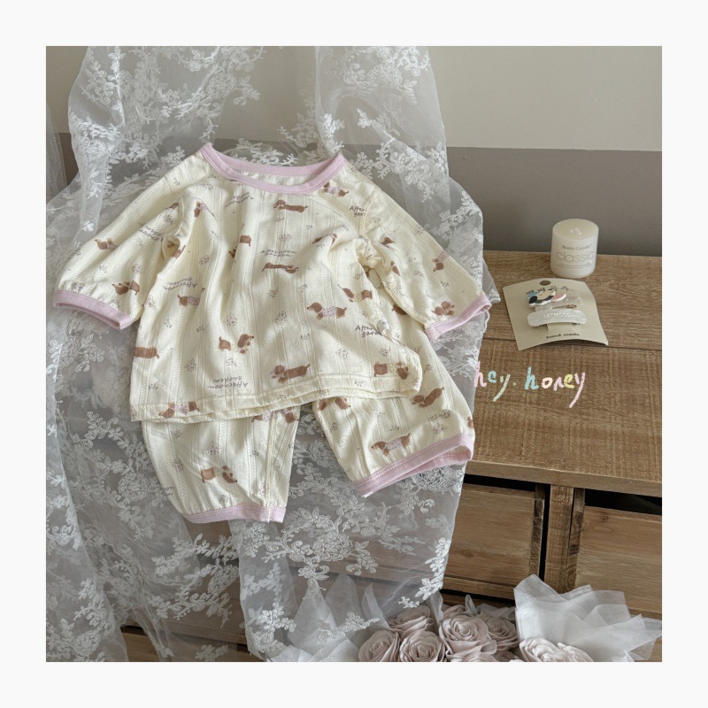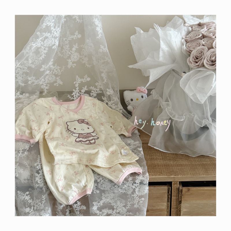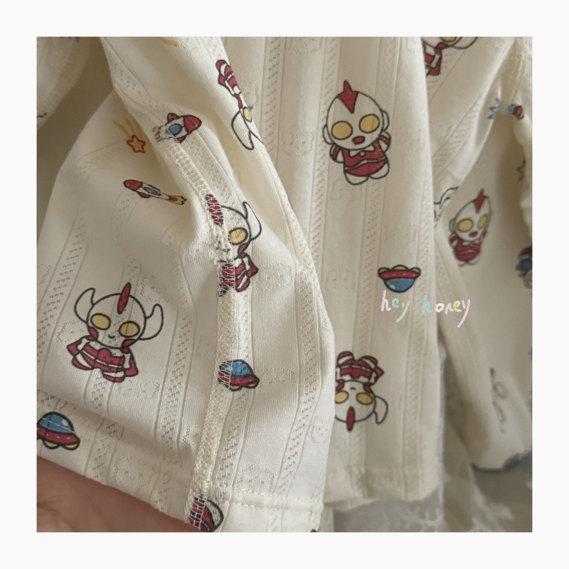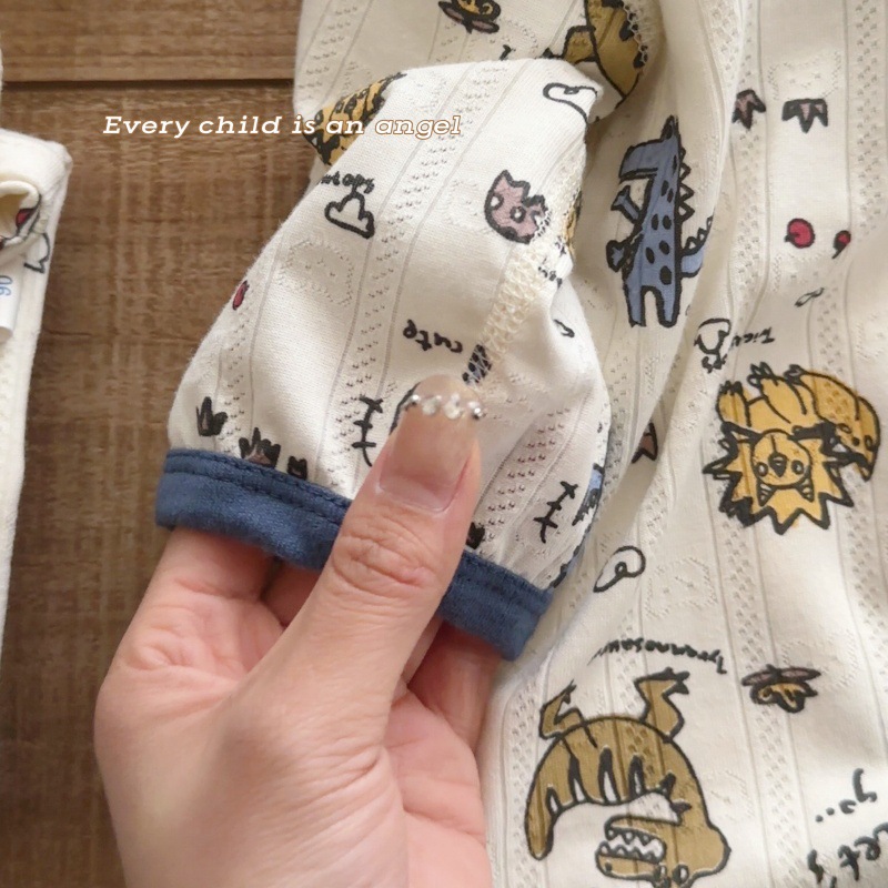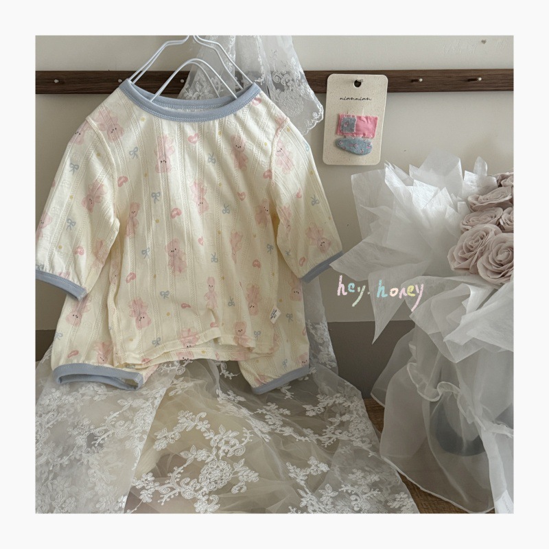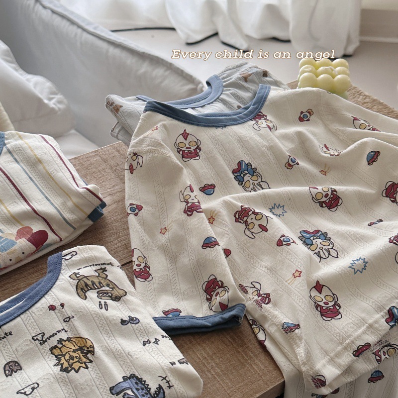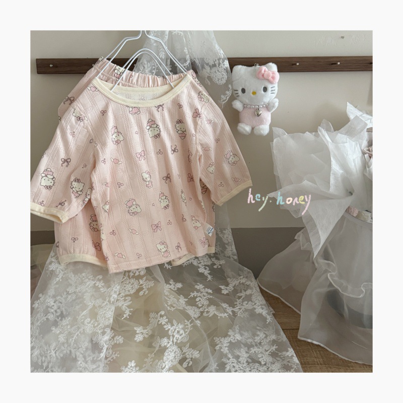 사이즈 롤 HeyHoney 어린이 25 여름 반소매 호흡 구멍 만화 자카드 투피스 세트 홈 의류 잠옷